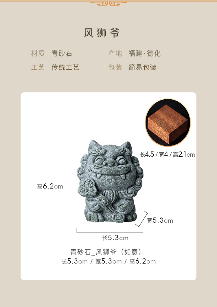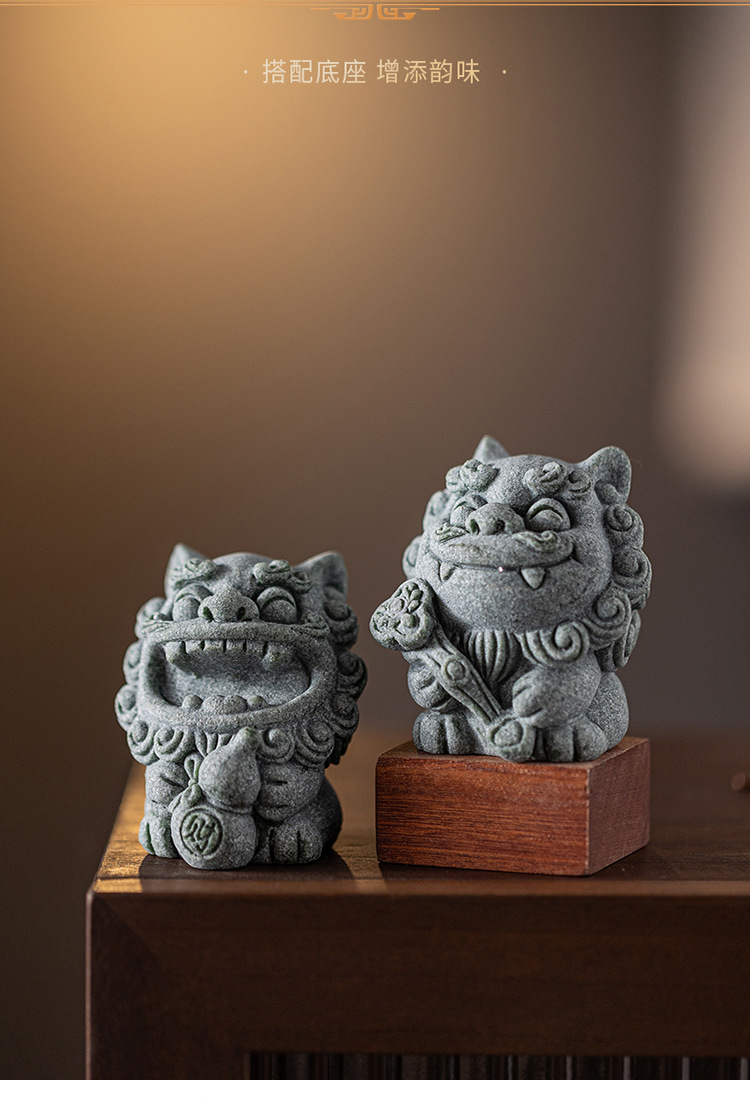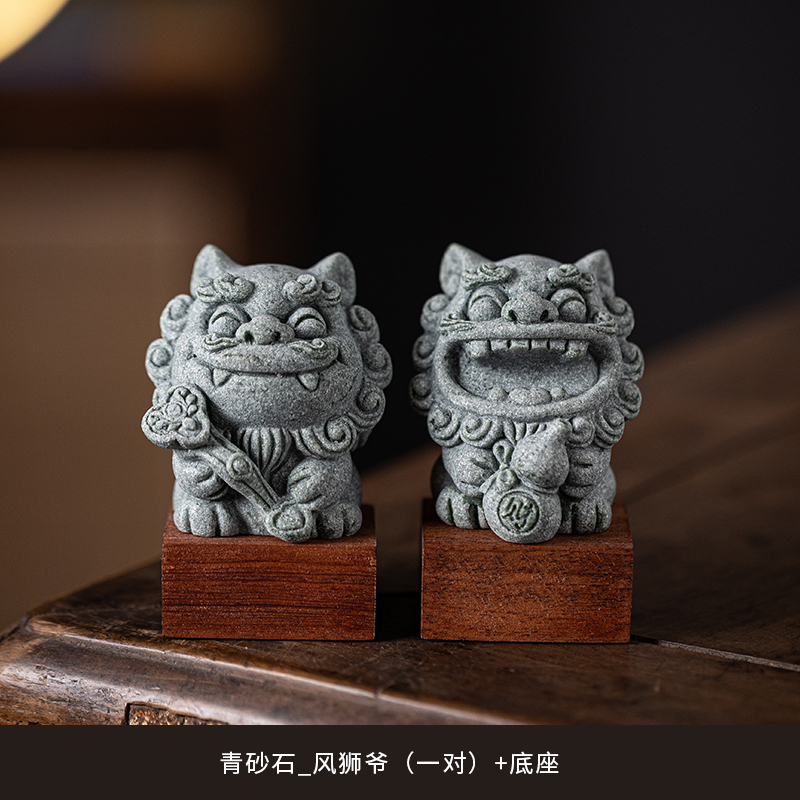 • 녹색 모래 스톤 _ 바람 사자 예 (푸 루 루이) 한 쌍의 기지