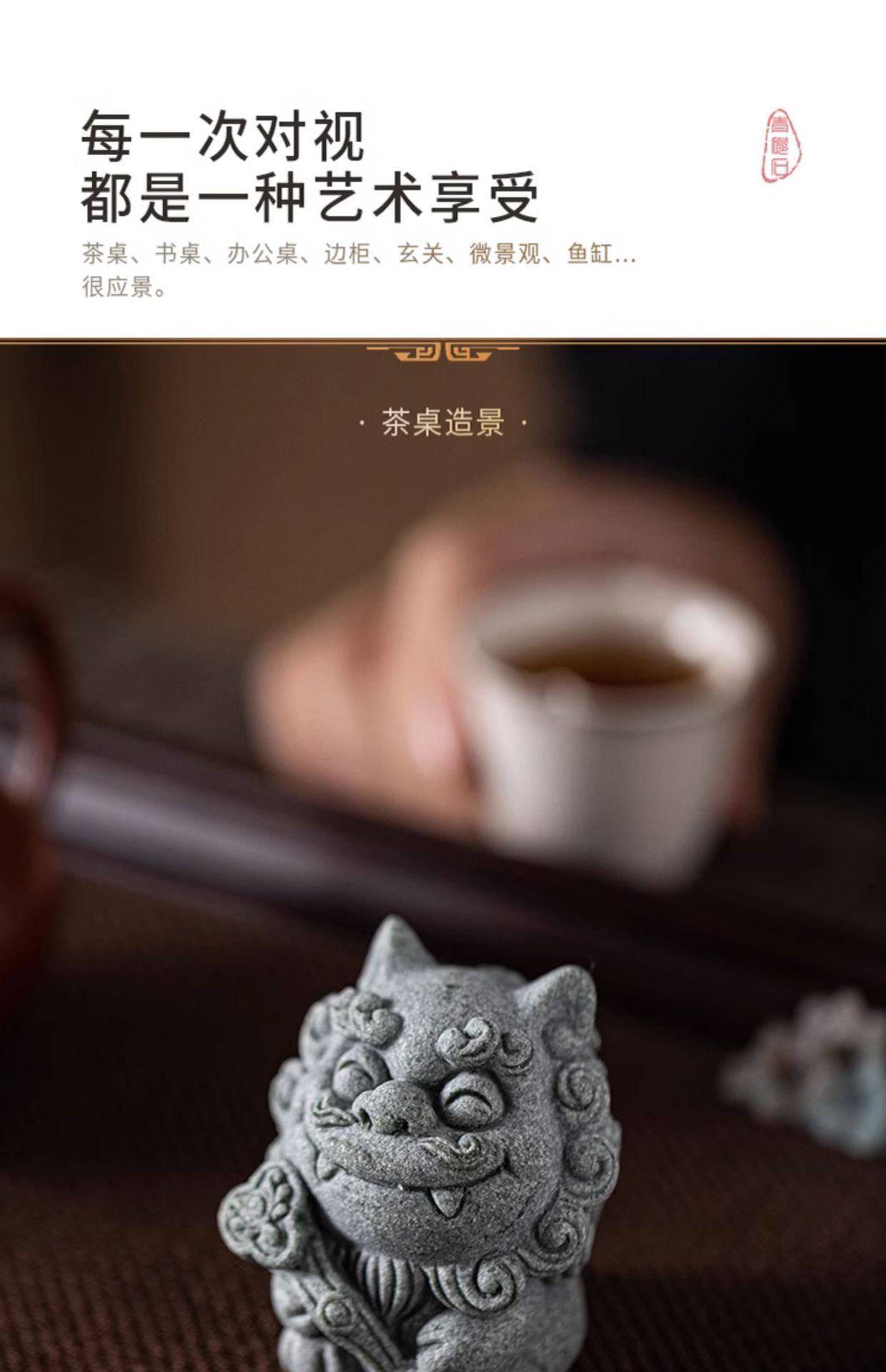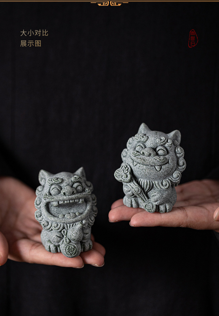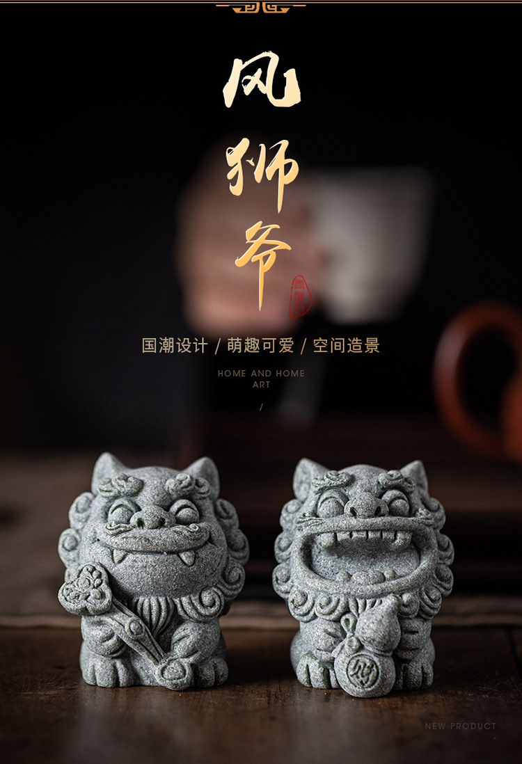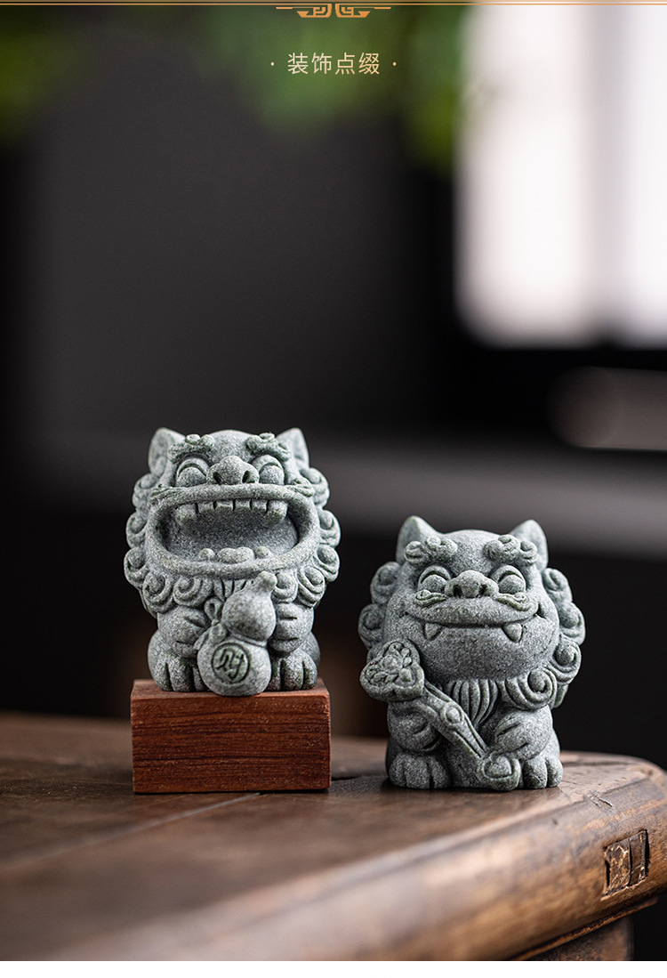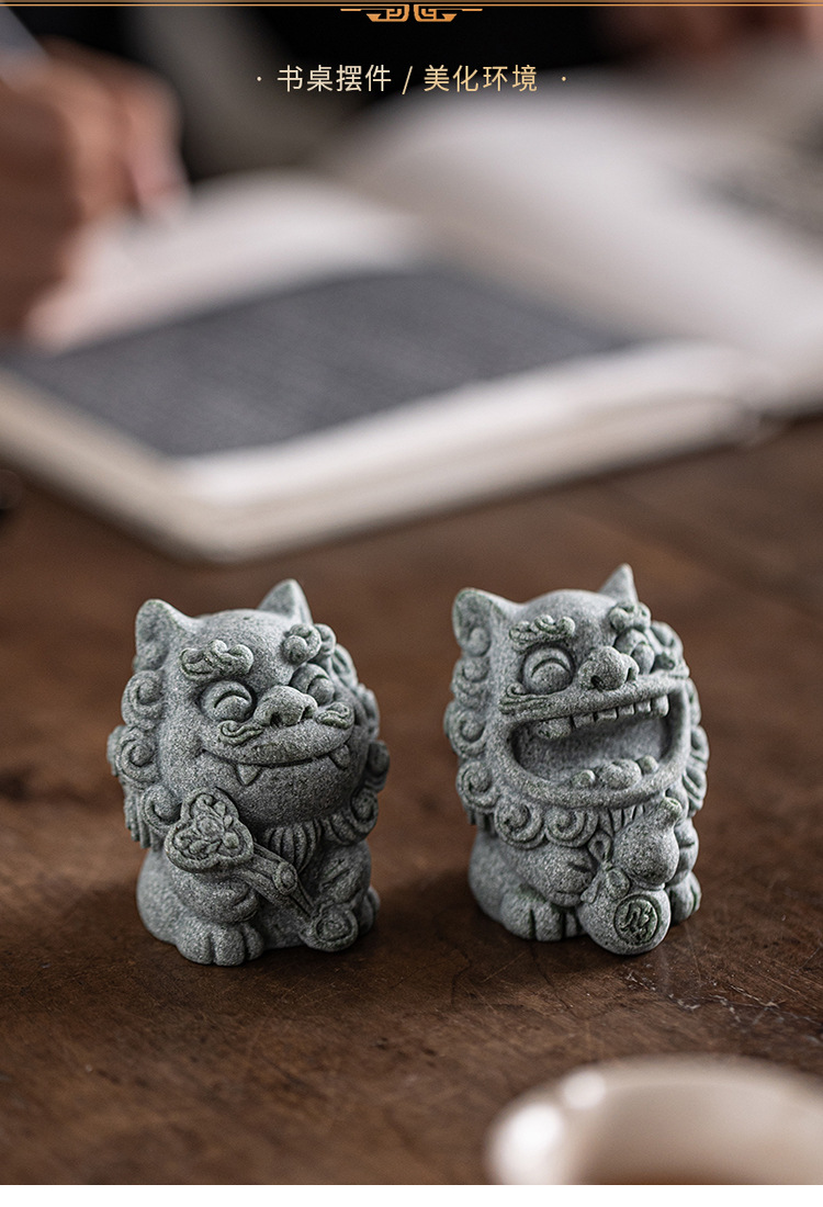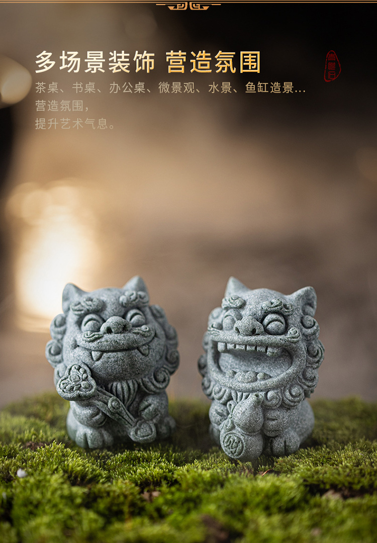 국가 조수 돌 사자 한 쌍의 데스크탑 장식 마스코트 창조적 인 바람 사자 마스터 분재 어항 풍경 차 애완 동물 장식품을 만들었습니다.스토어 가기