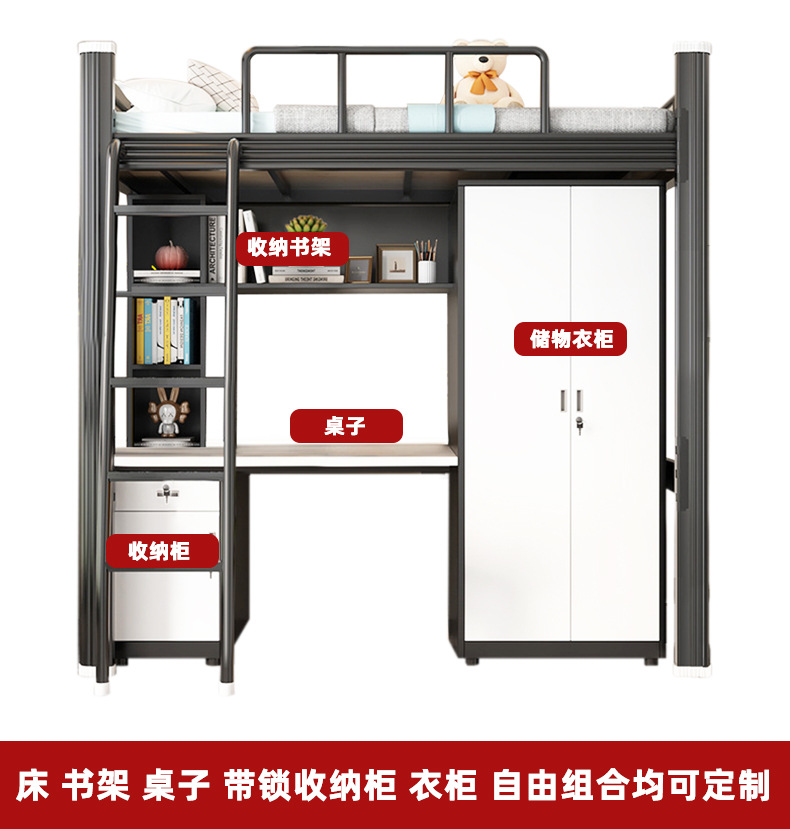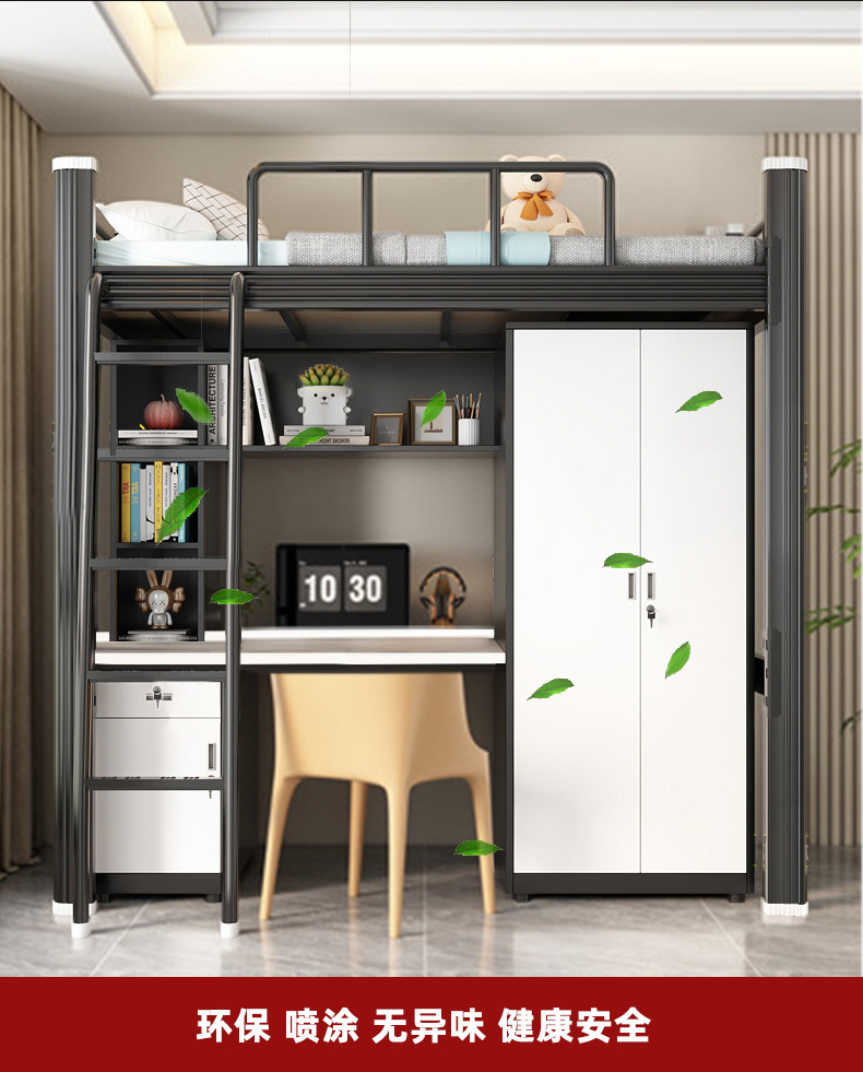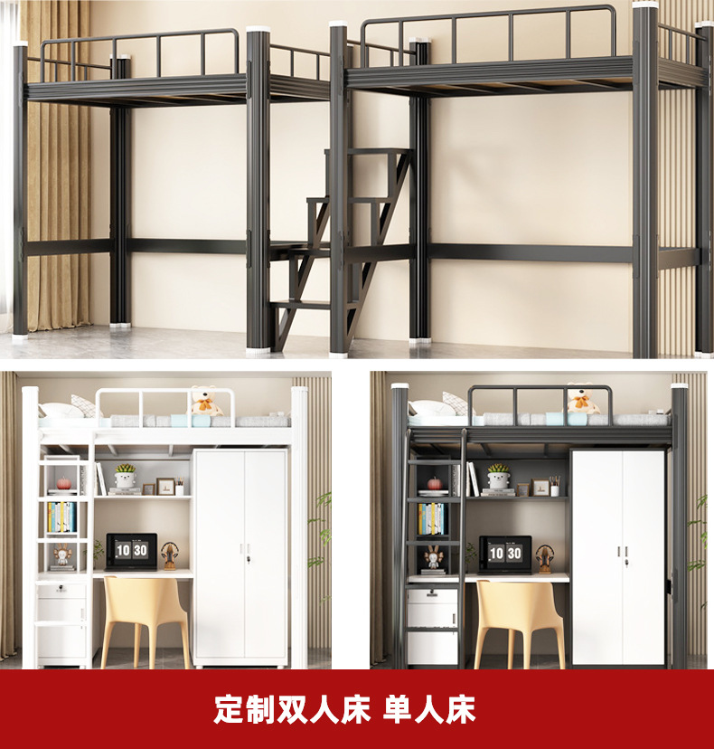 침대 위에 테이블 아래 다기능 아파트 침대 직원 기숙사 이층 침대 학생 싱글 및 더블 철제 침대 소스 제조업체스토어 가기