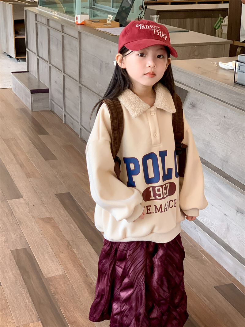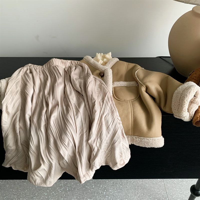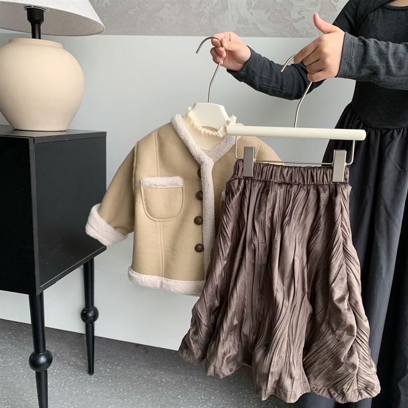 프랑스 어린이 빈티지 플리츠 스커트 소녀의 2023 가을과 겨울 새로운 스타일 긴 원피스 느슨한 허리 두꺼운 단색 스커트스토어 가기