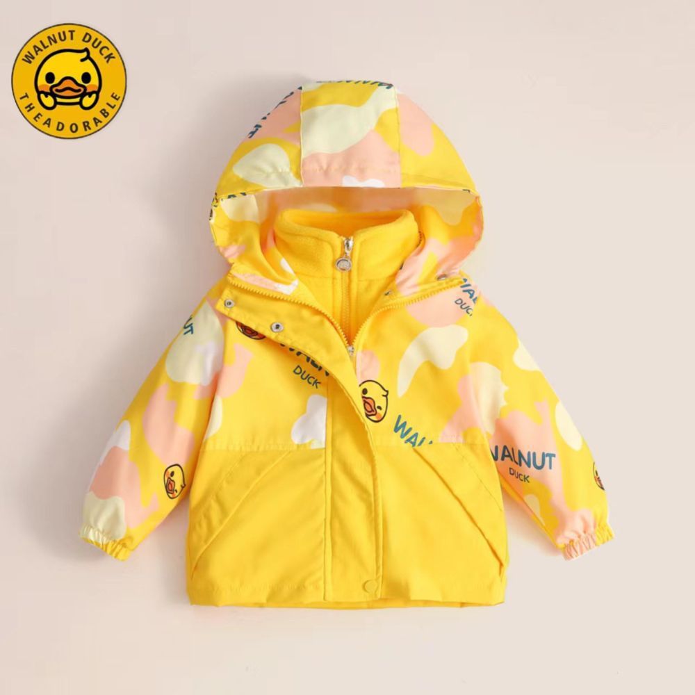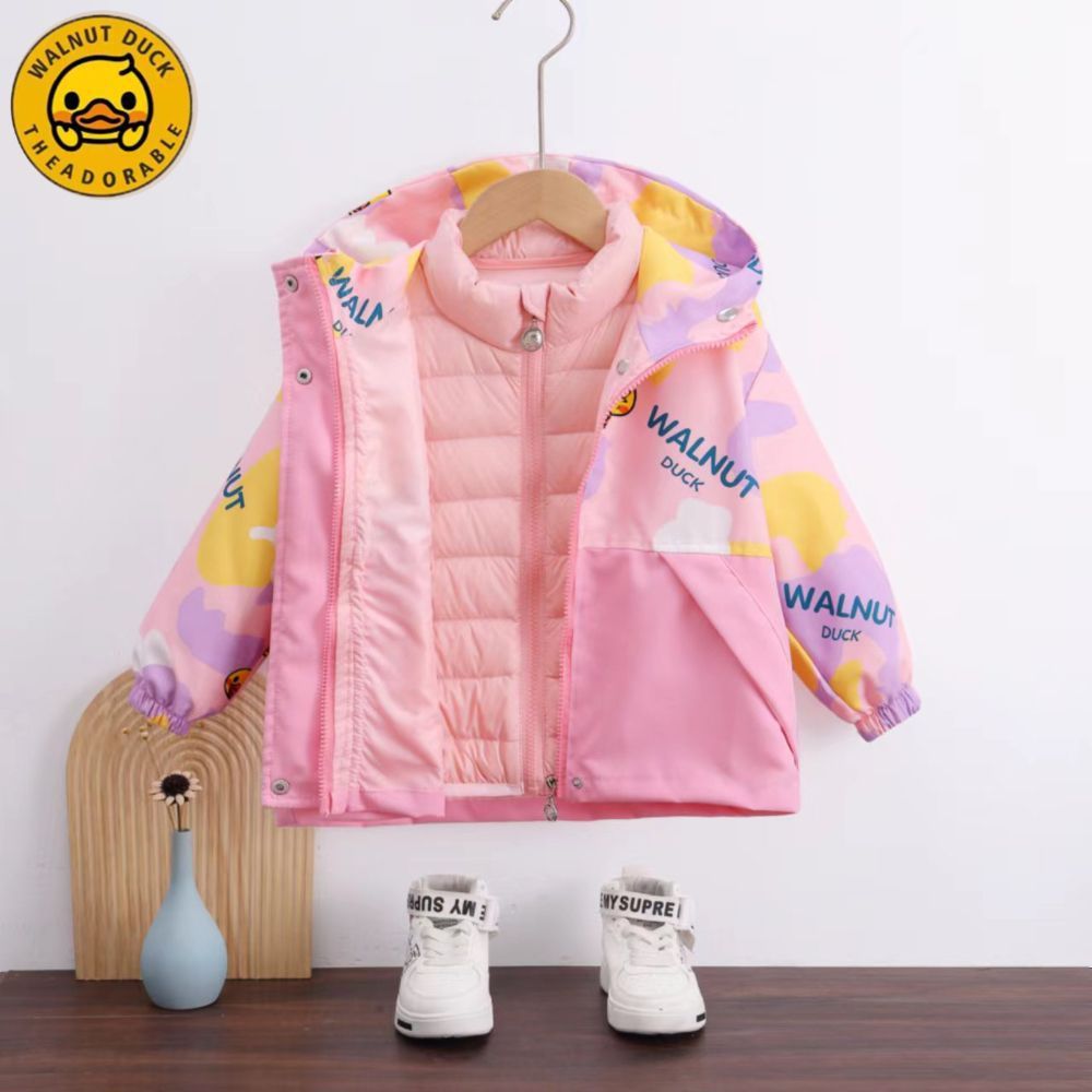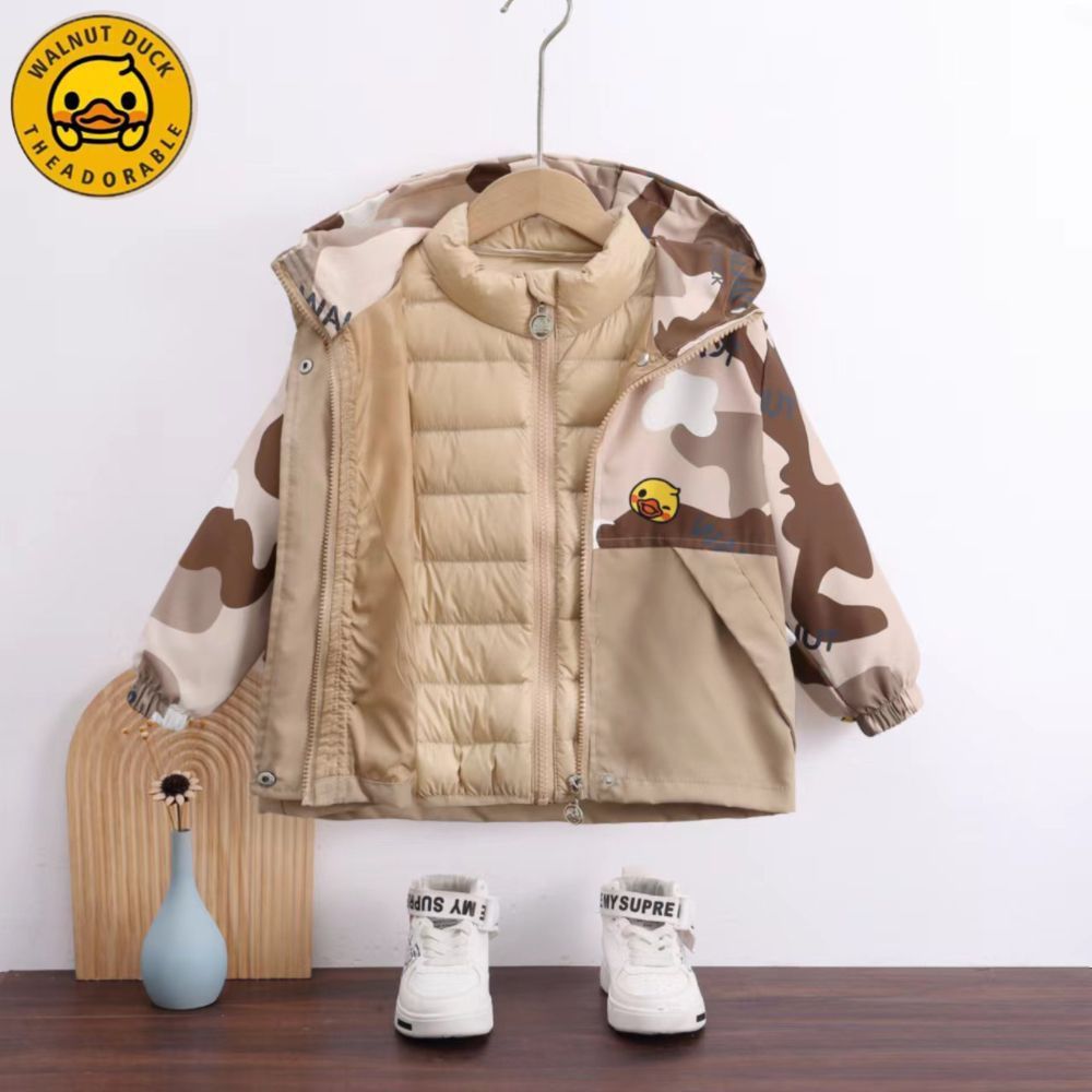 작은 노란 오리 어린이 쓰리-인-원 러쉬 옷 소년 소녀 가을과 겨울 코트 흰색 오리 다운 라이너 방한 코트를 입고스토어 가기