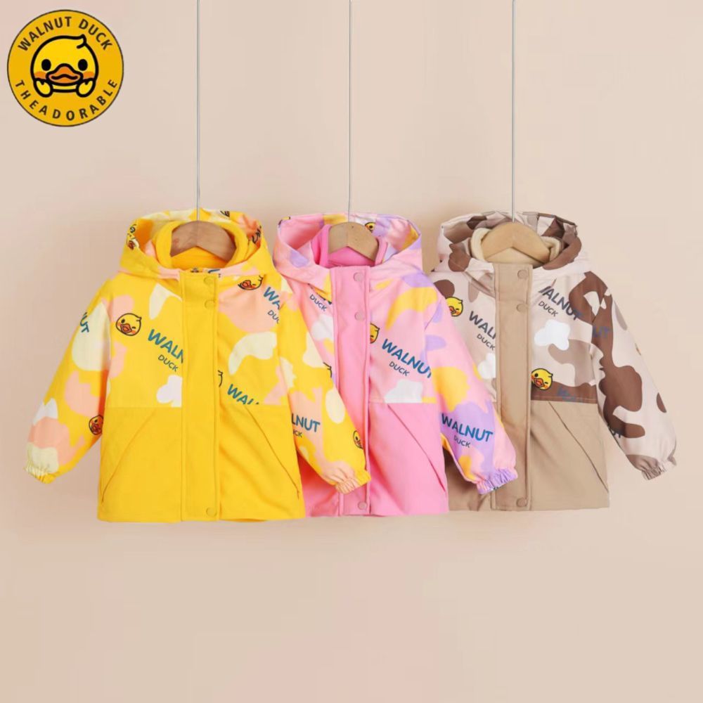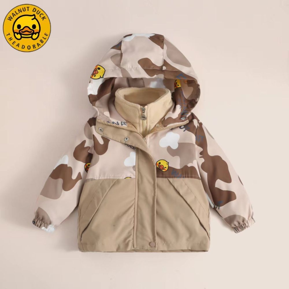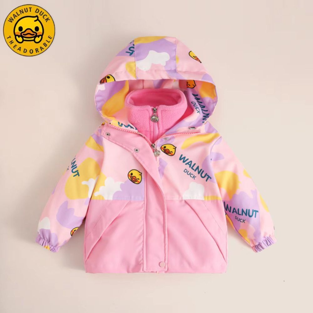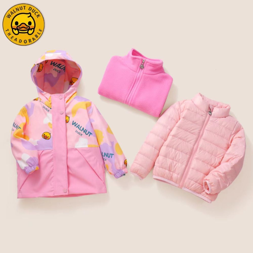 작은 노란 오리 어린이 쓰리-인-원 러쉬 옷 소년 소녀 가을과 겨울 코트 흰색 오리 다운 라이너 방한 코트를 입고스토어 가기