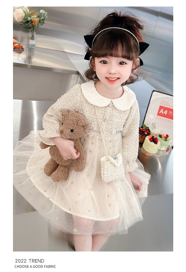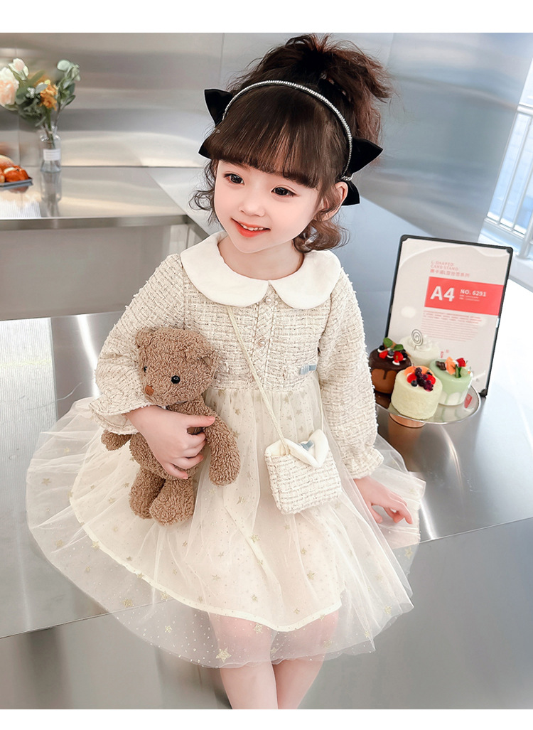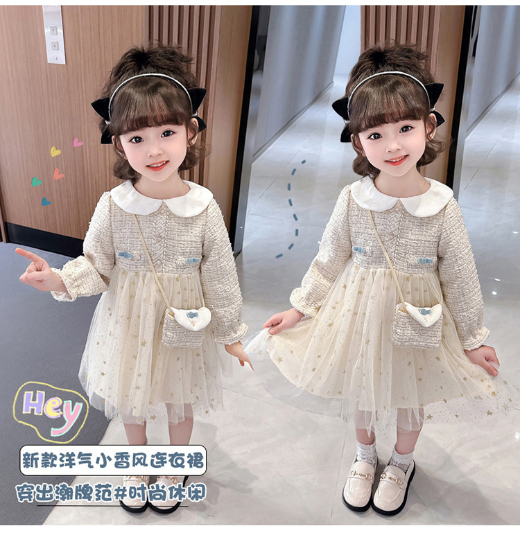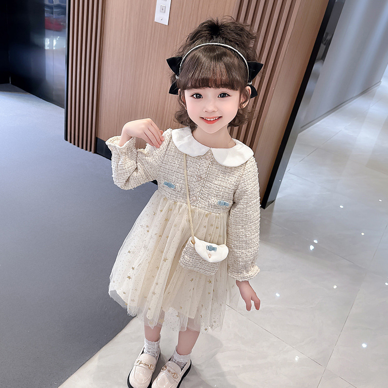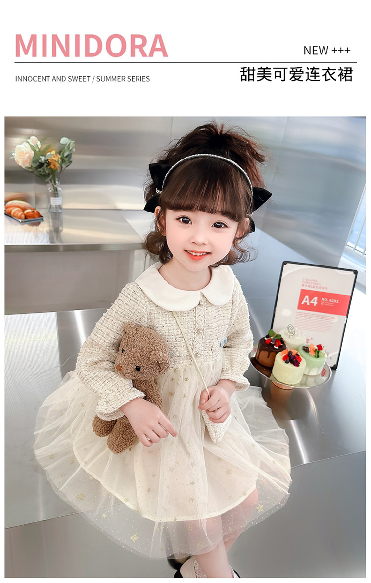 여자 인형 칼라 작은 향기로운 거즈 스커트 봄과 가을 스타일 2025 소녀를위한 새로운 유행 아동 의류 공주 스커트스토어 가기