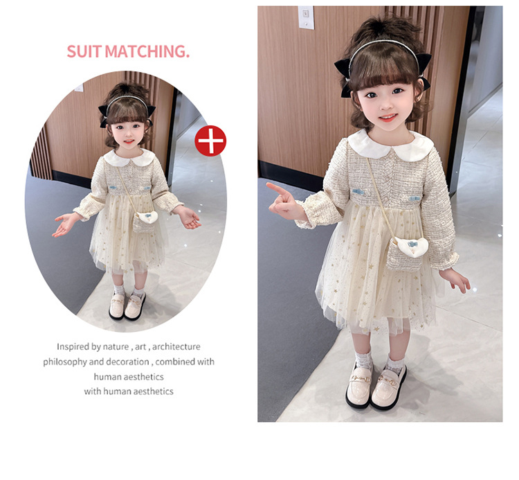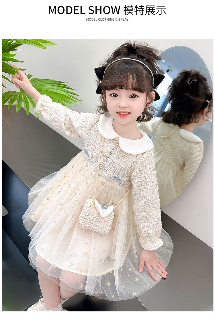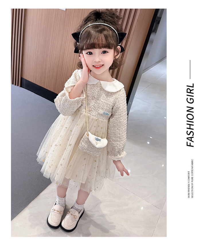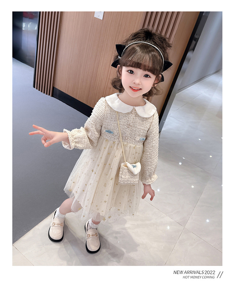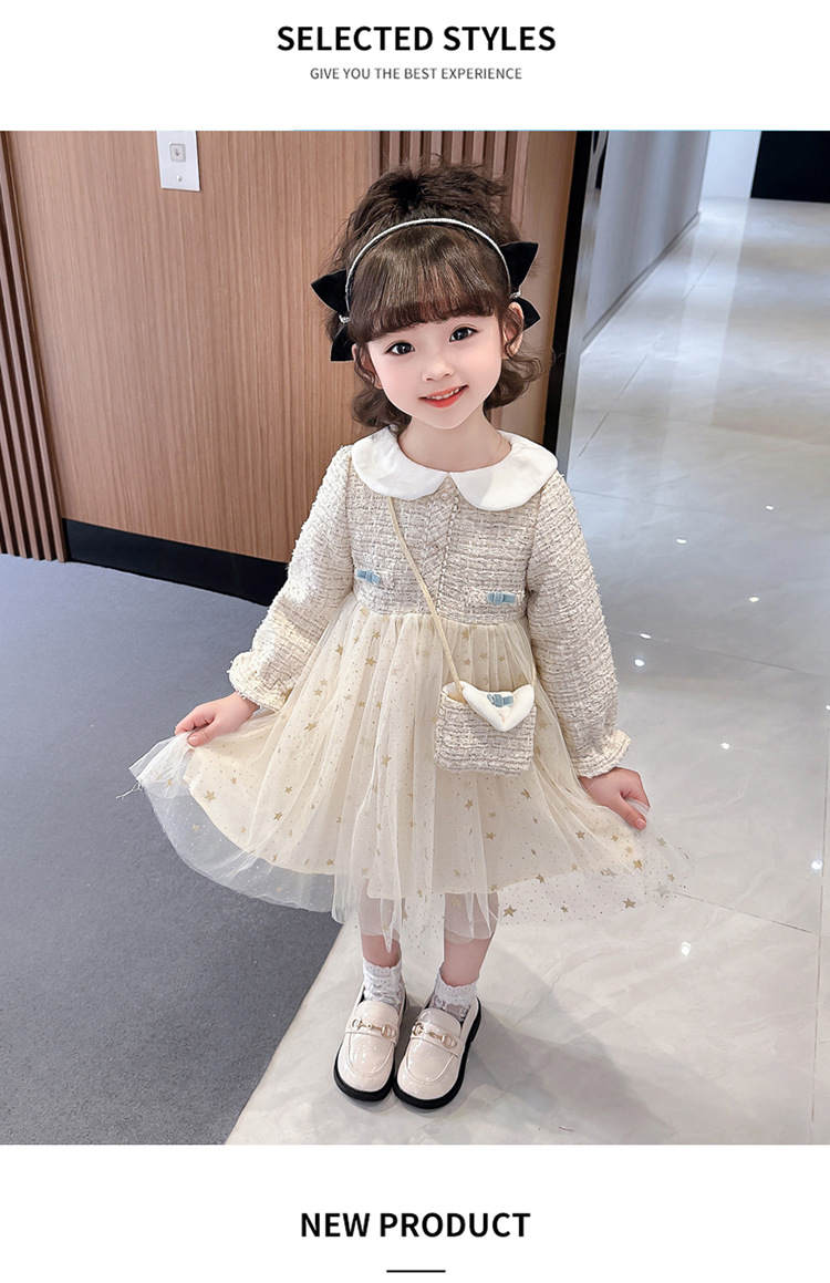 여자 인형 칼라 작은 향기로운 거즈 스커트 봄과 가을 스타일 2025 소녀를위한 새로운 유행 아동 의류 공주 스커트스토어 가기