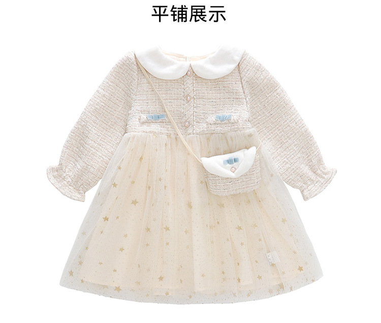 여자 인형 칼라 작은 향기로운 거즈 스커트 봄과 가을 스타일 2025 소녀를위한 새로운 유행 아동 의류 공주 스커트