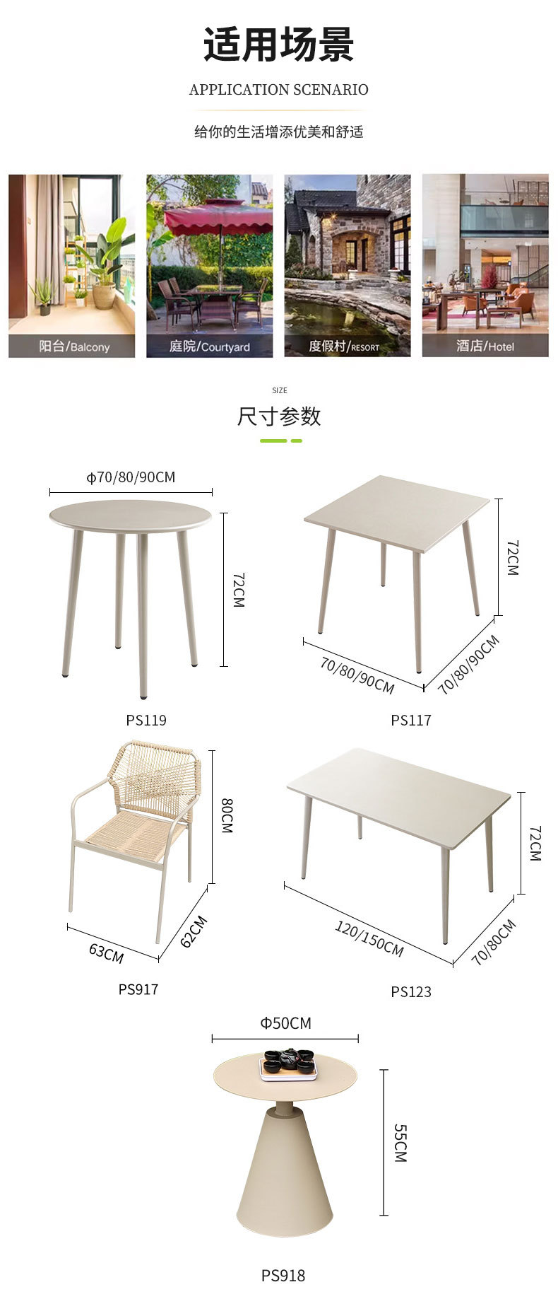 如需单张桌子或椅子,请联系客服咨询后再拍。