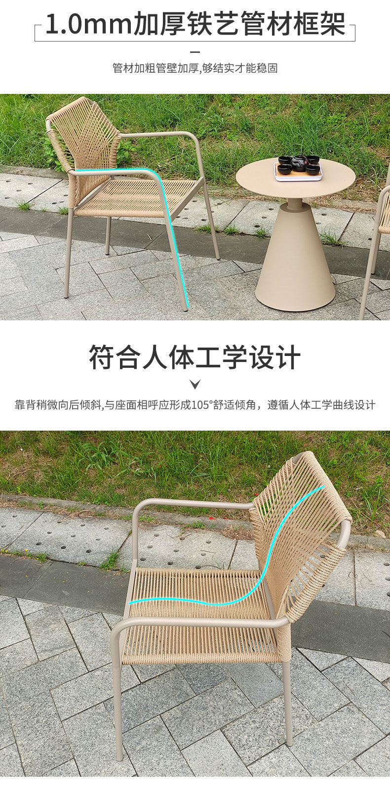 야외 발코니 등나무 정원 의자 야외 밀크티 카페 방수 및 자외선 차단 등나무 테이블과 의자 커피 테이블