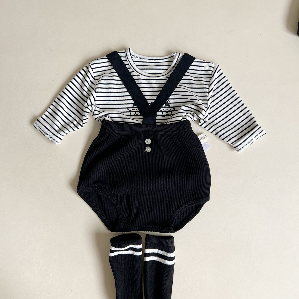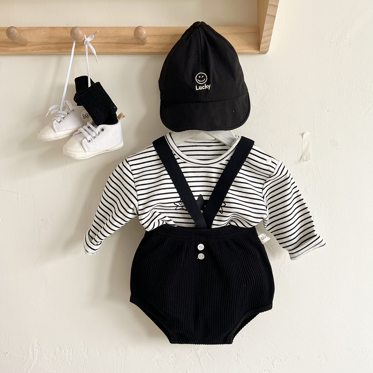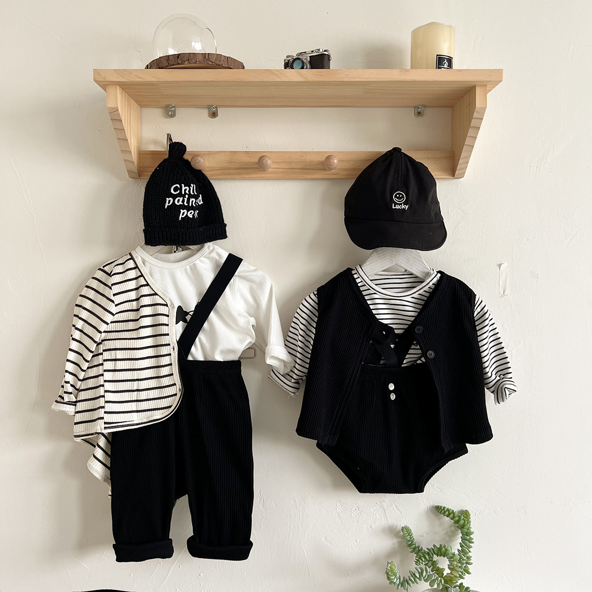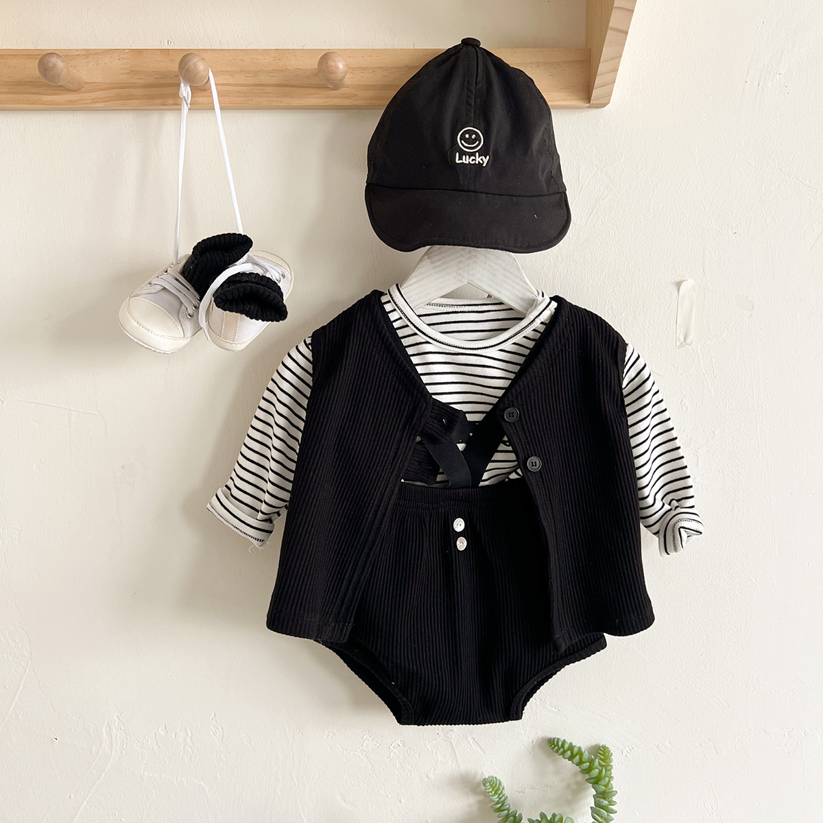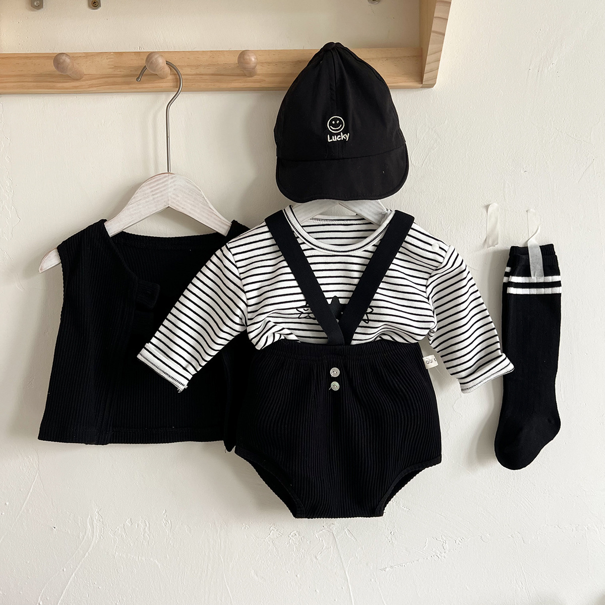 In 한국 스타일 아기 캐주얼 바지 V 스트랩 큰 pp 반바지 일치하는 긴 소매 조끼 재킷 세트
