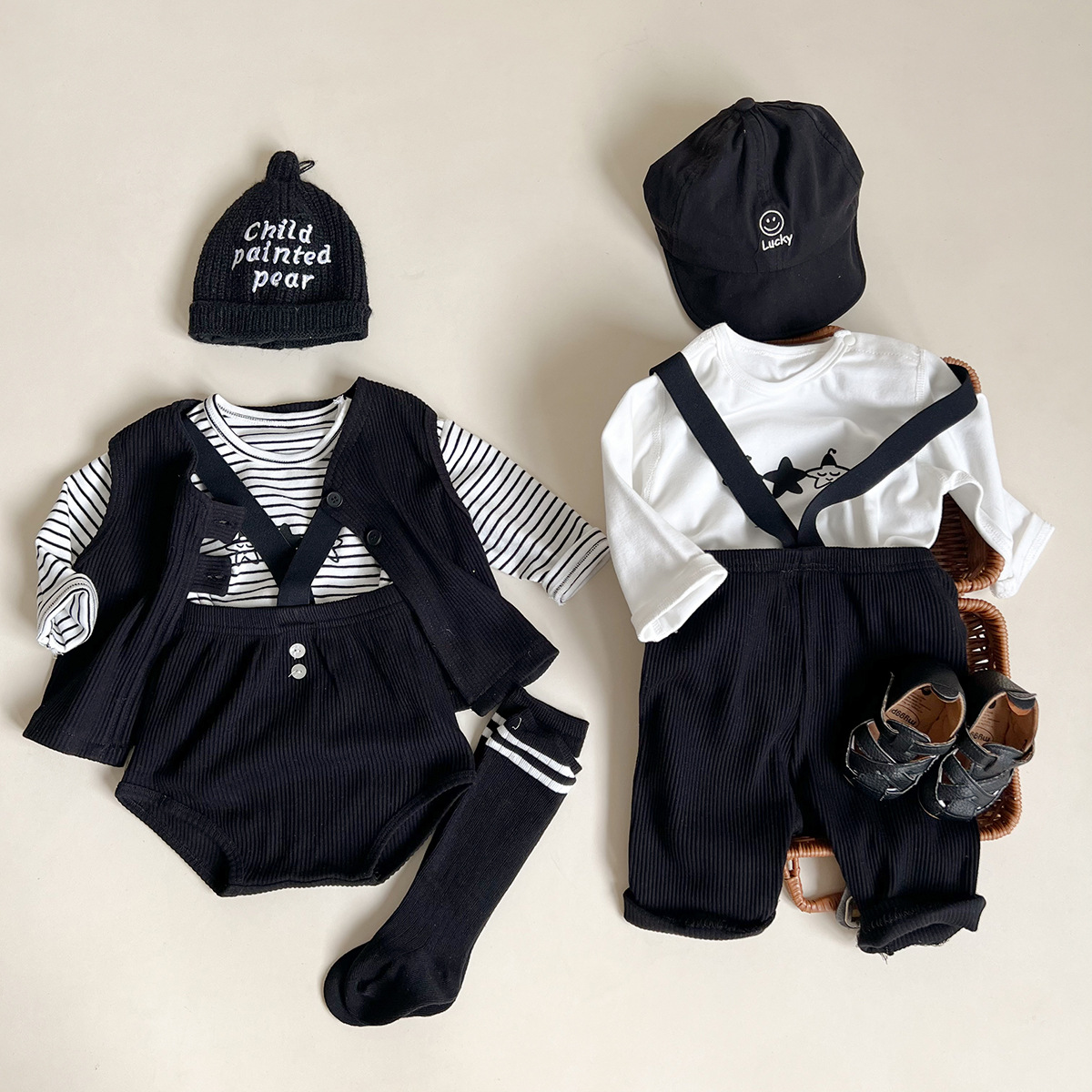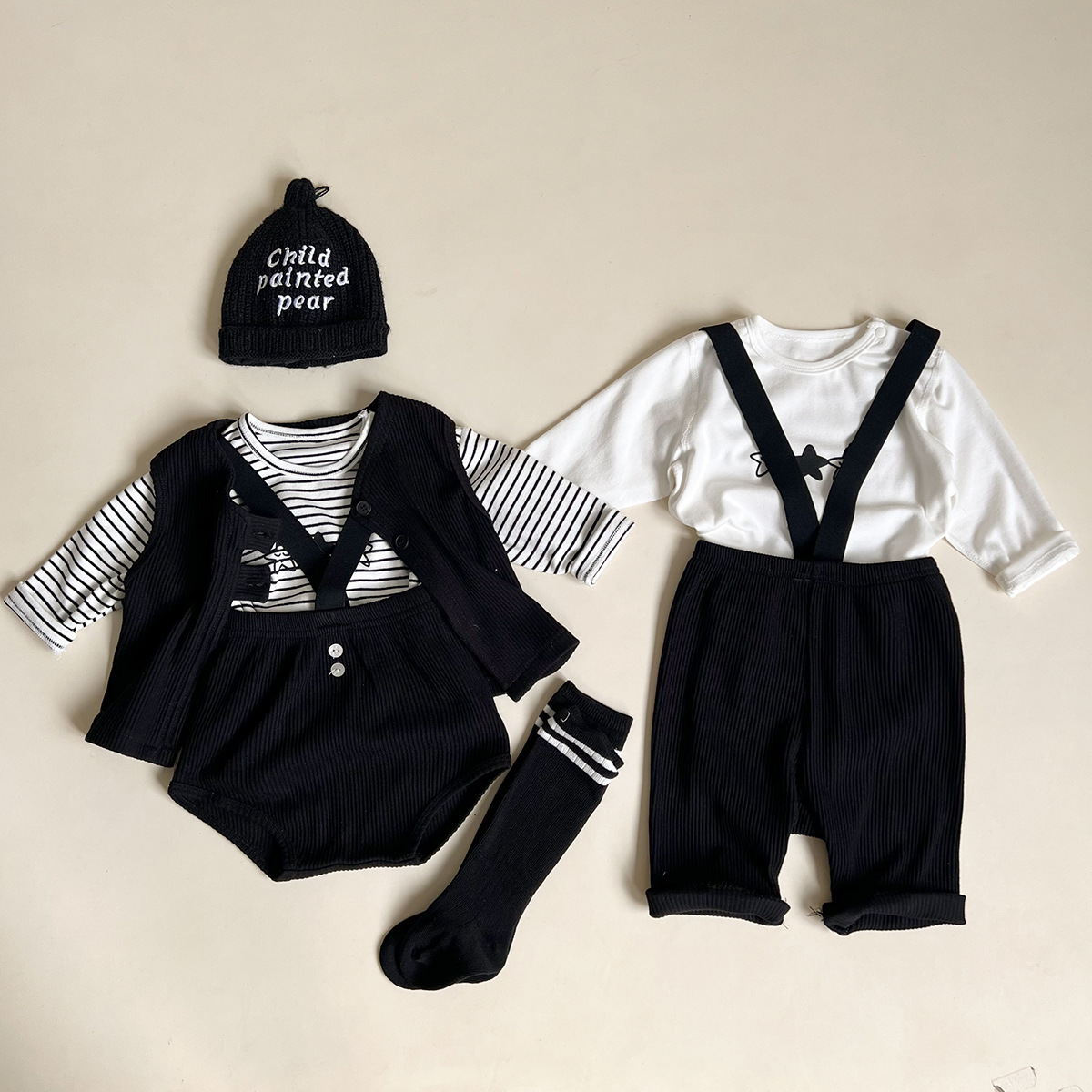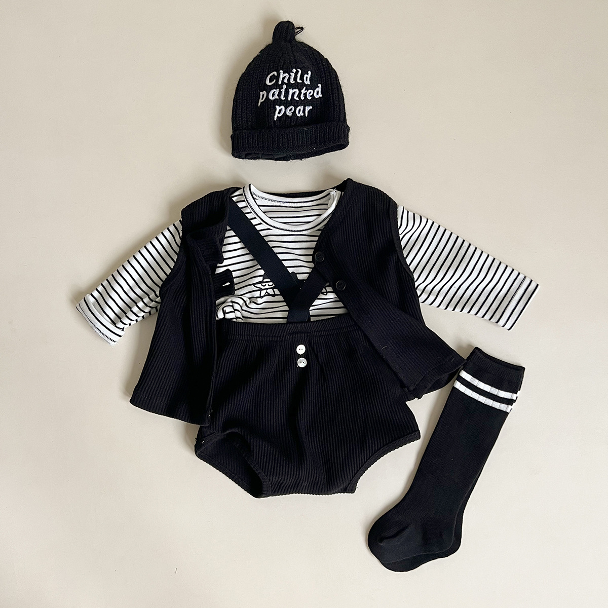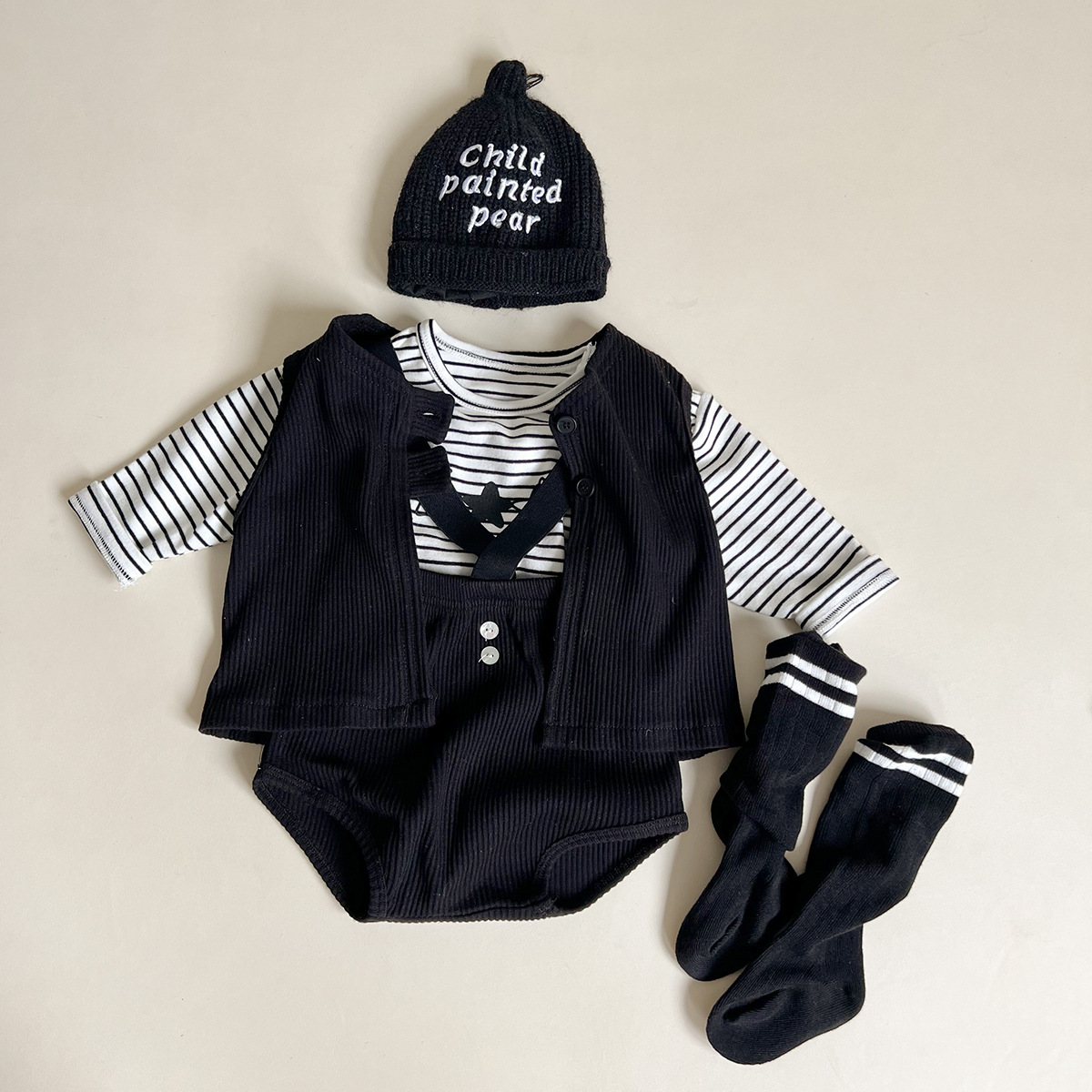 In 한국 스타일 아기 캐주얼 바지 V 스트랩 큰 pp 반바지 일치하는 긴 소매 조끼 재킷 세트