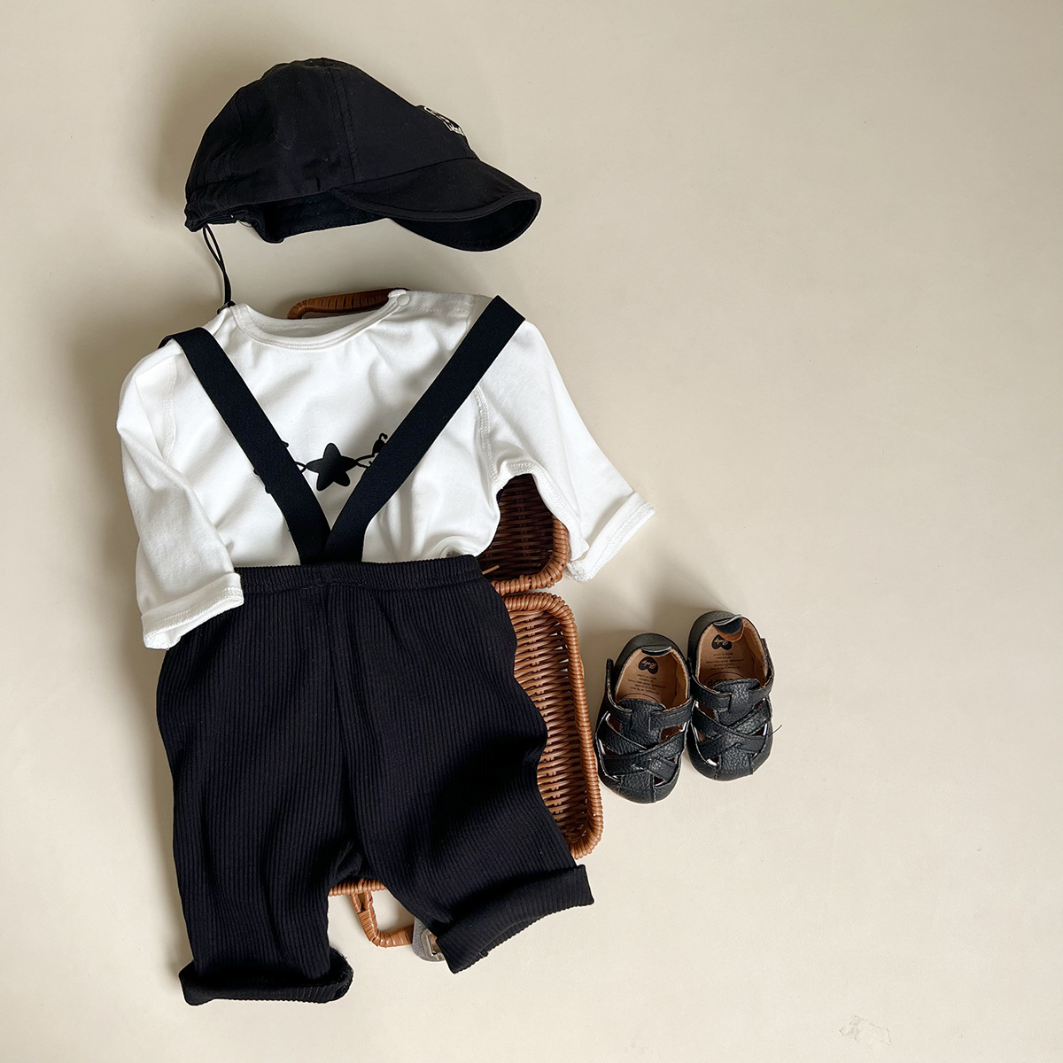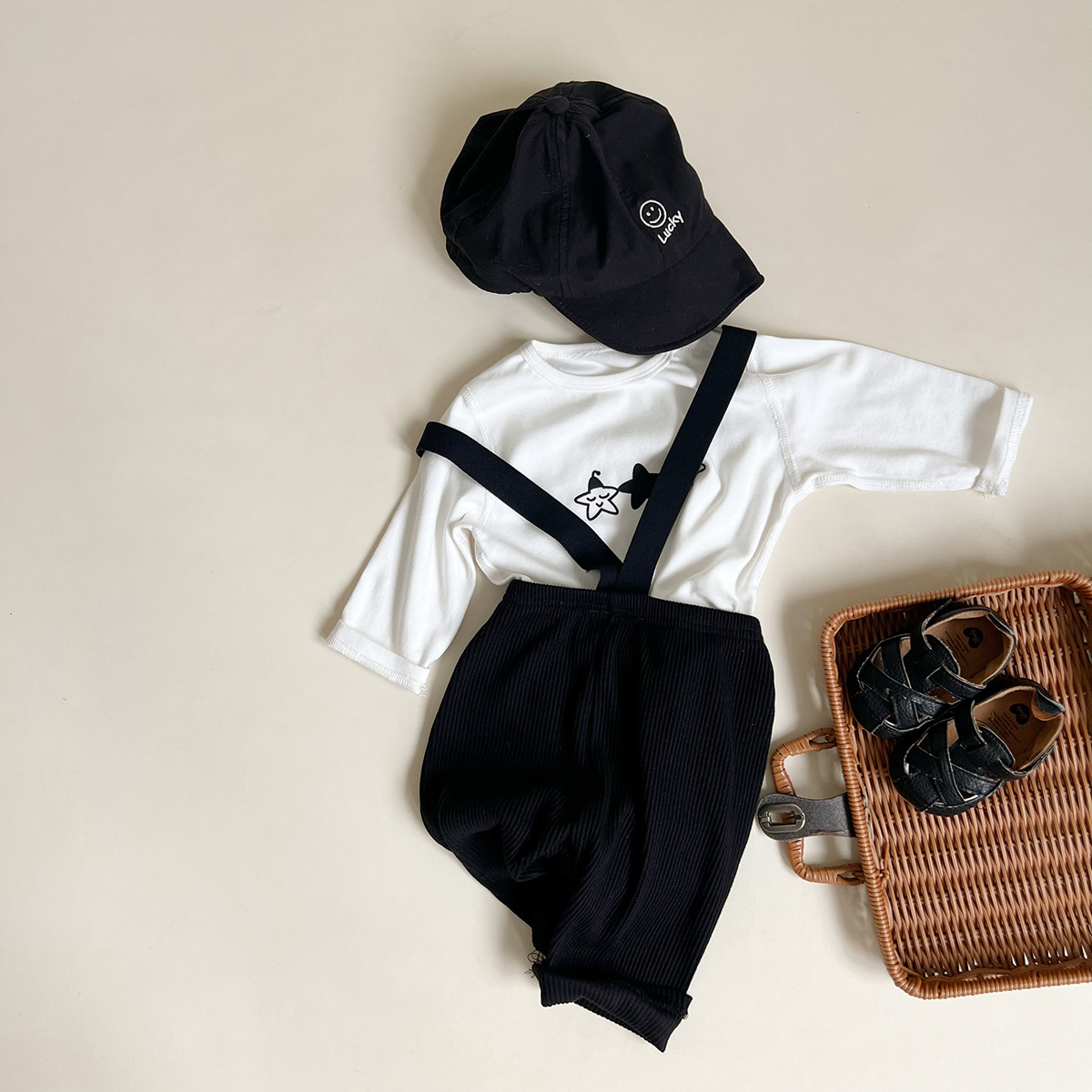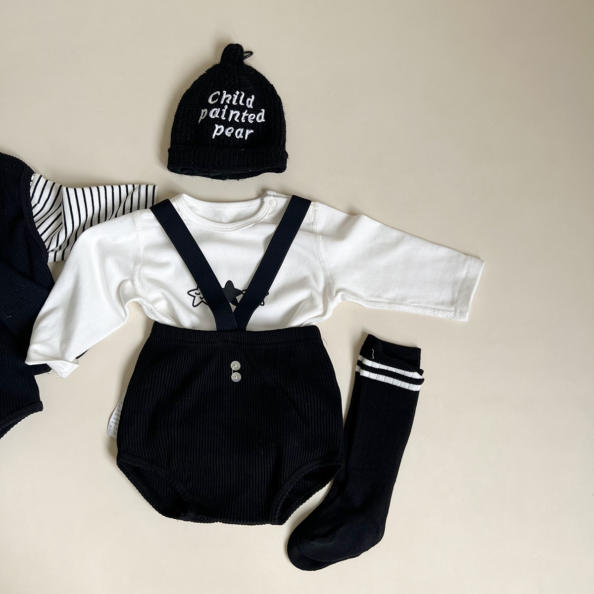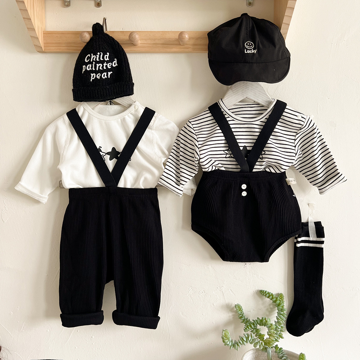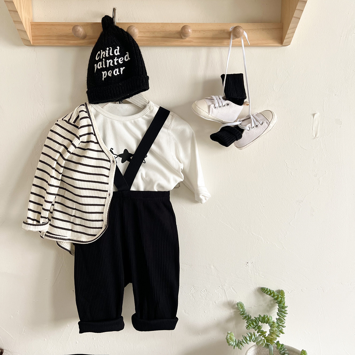 In 한국 스타일 아기 캐주얼 바지 V 스트랩 큰 pp 반바지 일치하는 긴 소매 조끼 재킷 세트