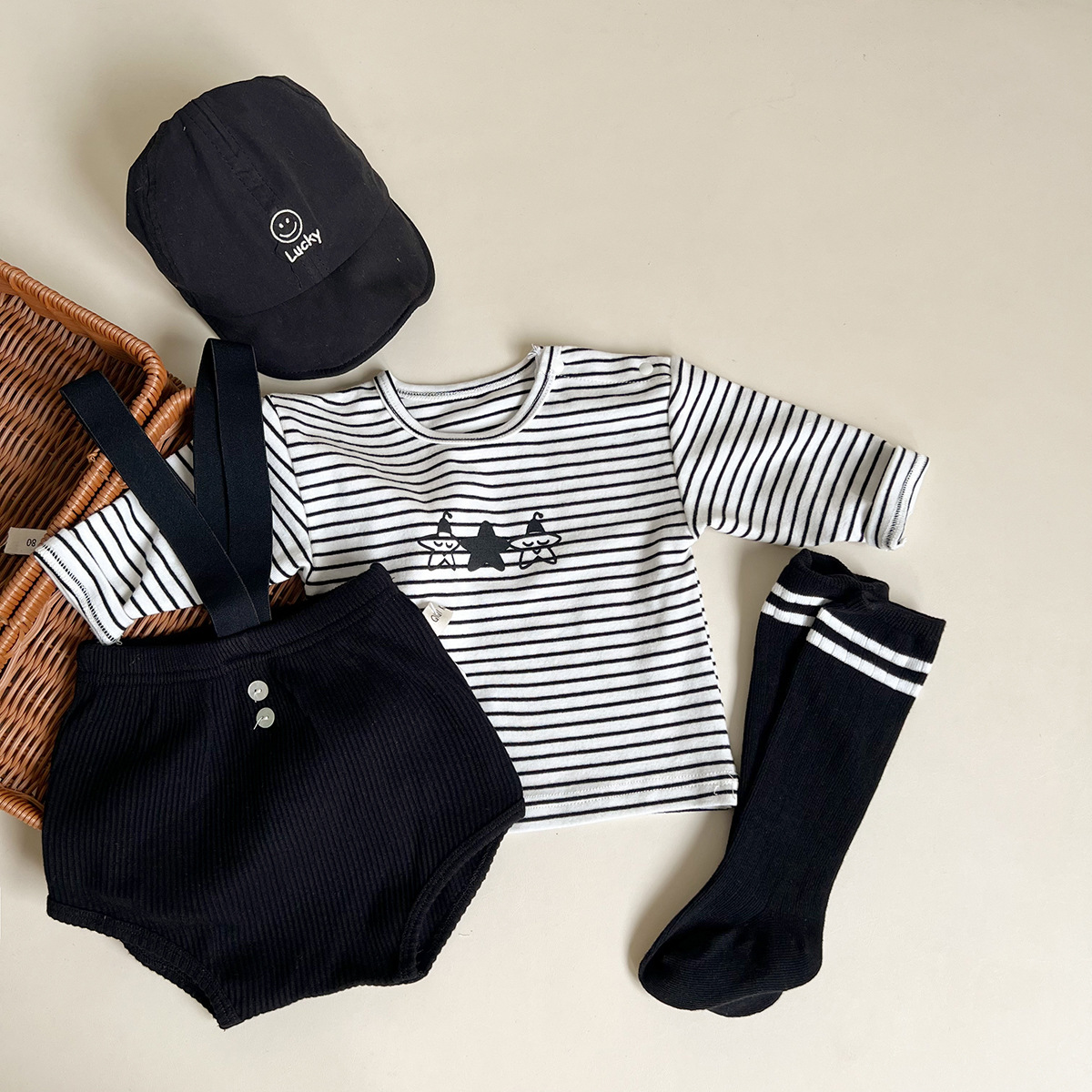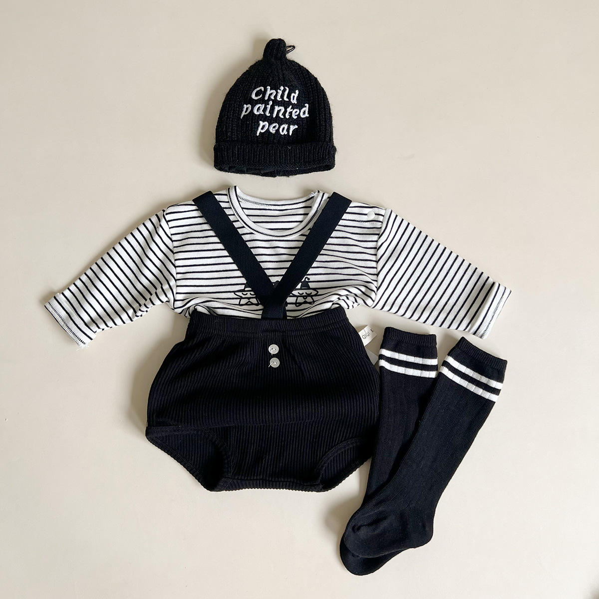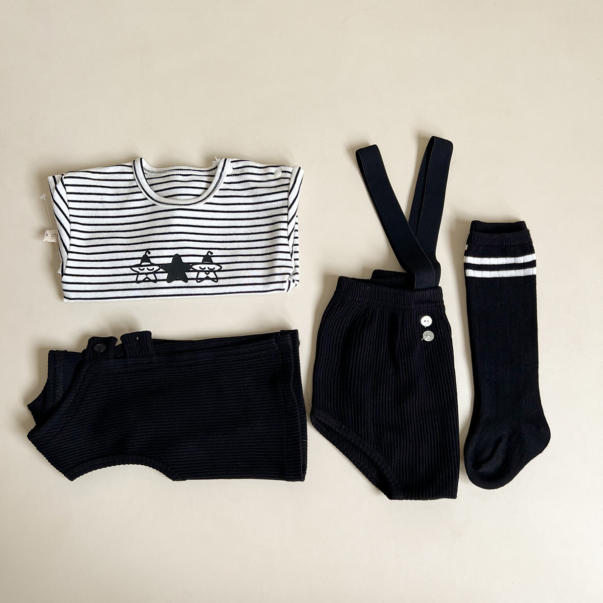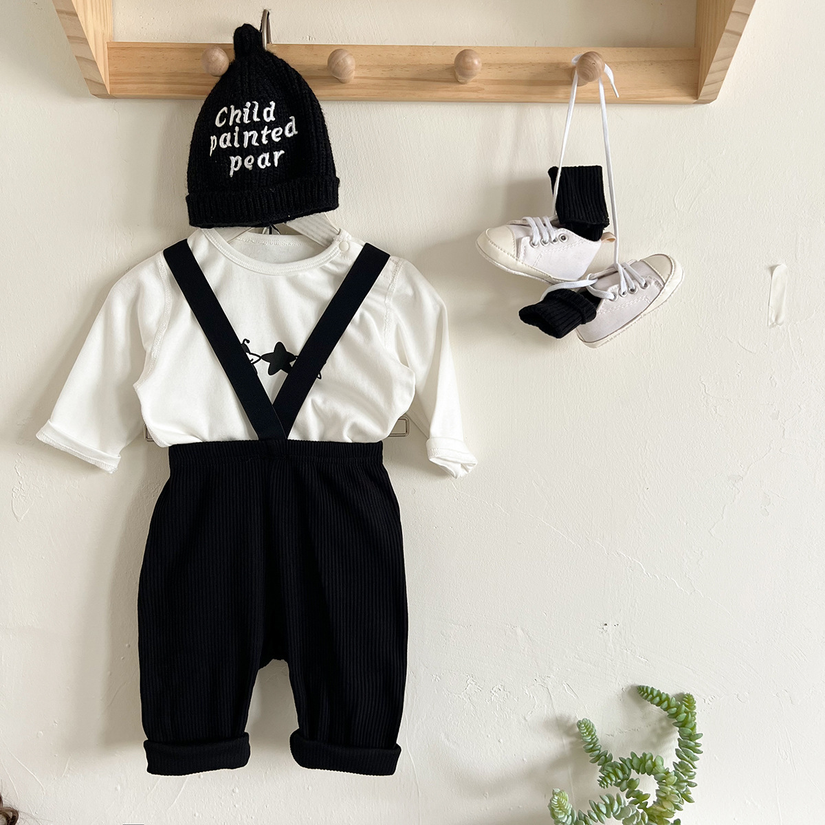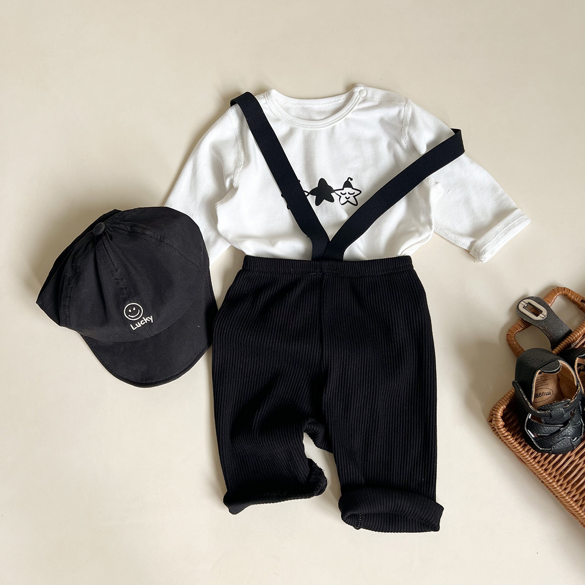In 한국 스타일 아기 캐주얼 바지 V 스트랩 큰 pp 반바지 일치하는 긴 소매 조끼 재킷 세트