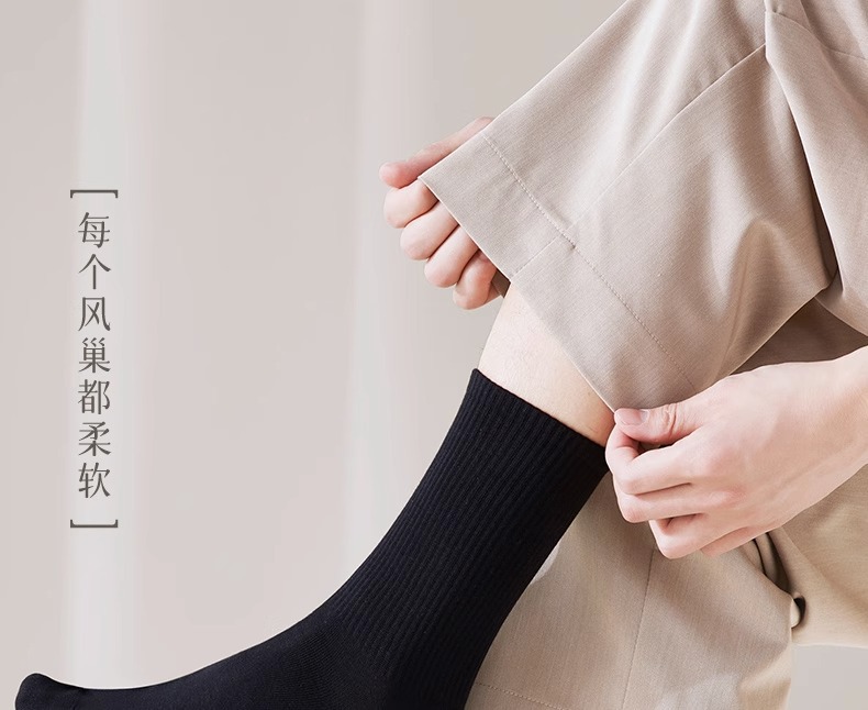 袜子男中筒袜夏季薄款纯棉防臭吸汗透气全棉商务袜黑色男士长袜