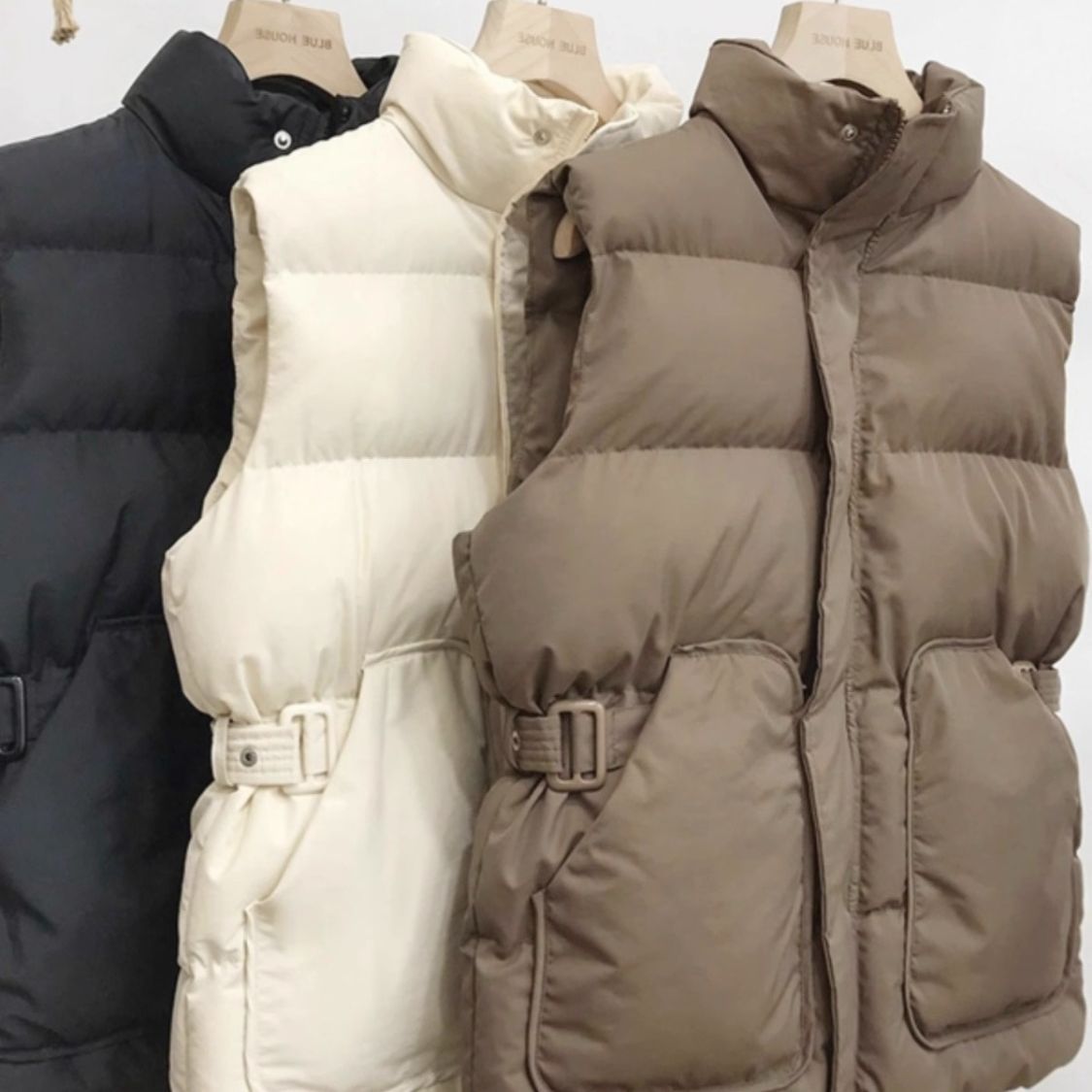 다운 코튼 패딩 재킷 조끼 여성의 2024 가을 및 겨울 새 한국어 버전의 느슨한면 양복 조끼 스탠드 칼라 단색 허리 조끼 코트스토어 가기