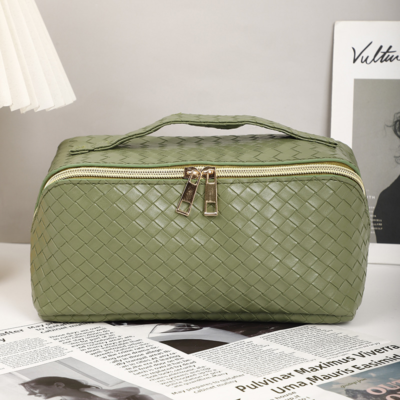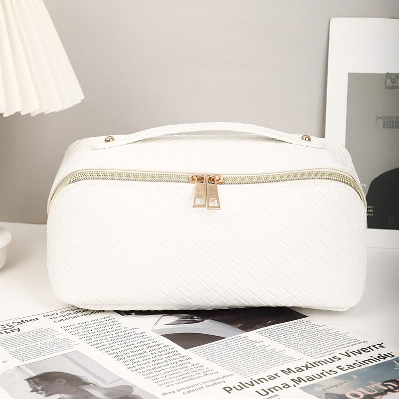 Pu 짠 가죽 격자 무늬 양각 대용량 다기능 화장품 가방 공장 도매 아마존