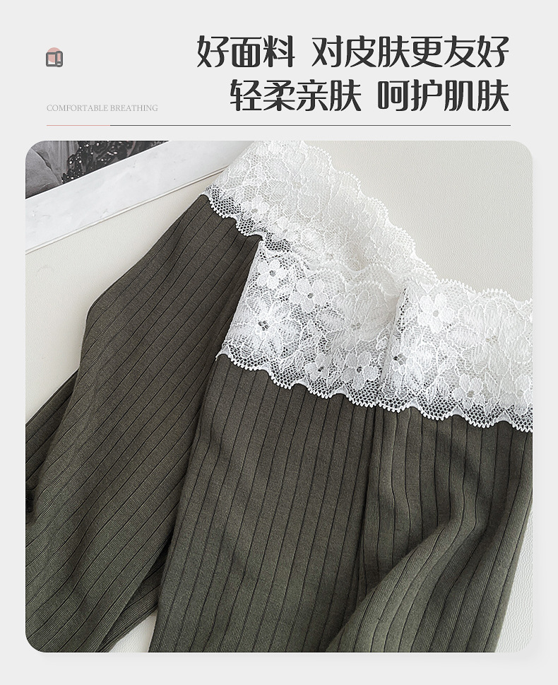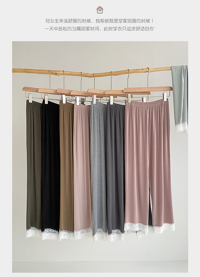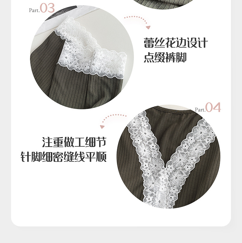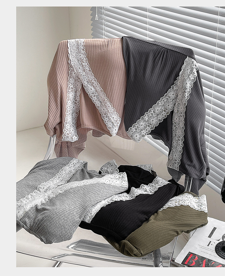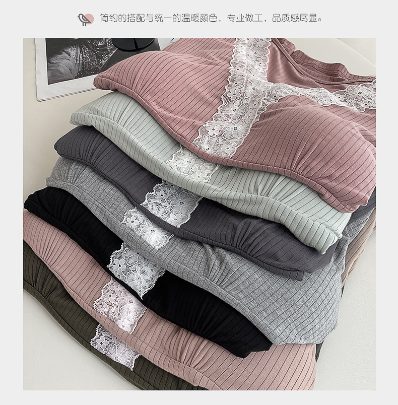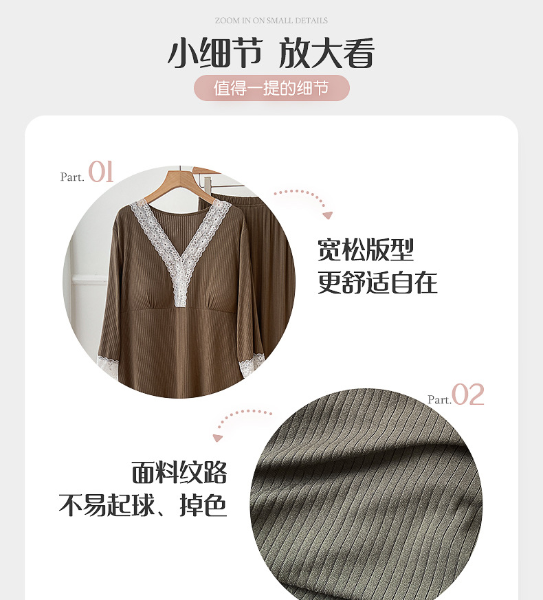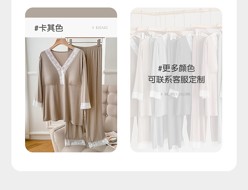 가을과 겨울 모달 드랩 V-넥 세븐 슬리브 홈 의류 세트 여성용 루즈 레이스 사이드 가슴 패드 잠옷