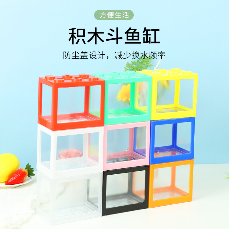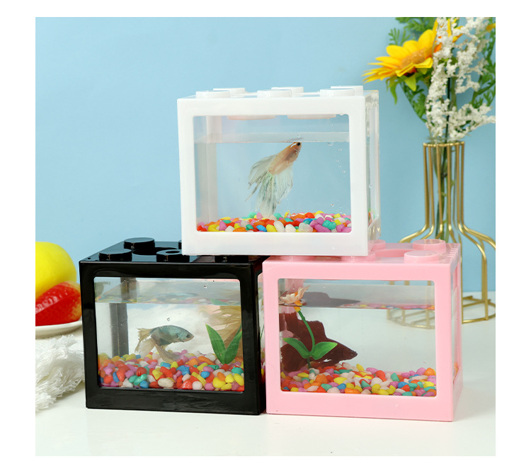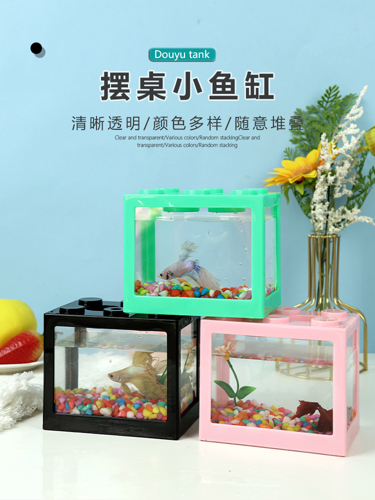 태국 인터넷 연예인 빌딩 블록 양동이 물고기 탱크 해파리 탱크 미니 소형 사무실 데스크탑 풍경 금붕어 탱크 스톨스토어 가기