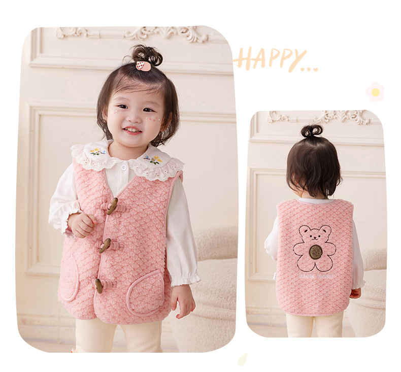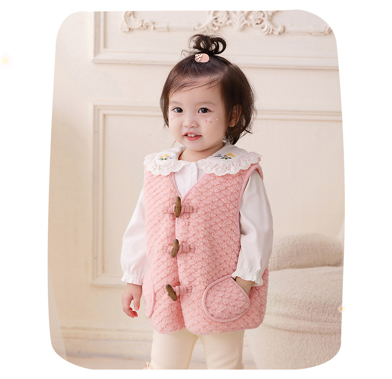 아이디어 소녀 양고기 벨벳 패딩 조끼 2023 가을과 겨울 기모 조끼 아기 코트 3299스토어 가기