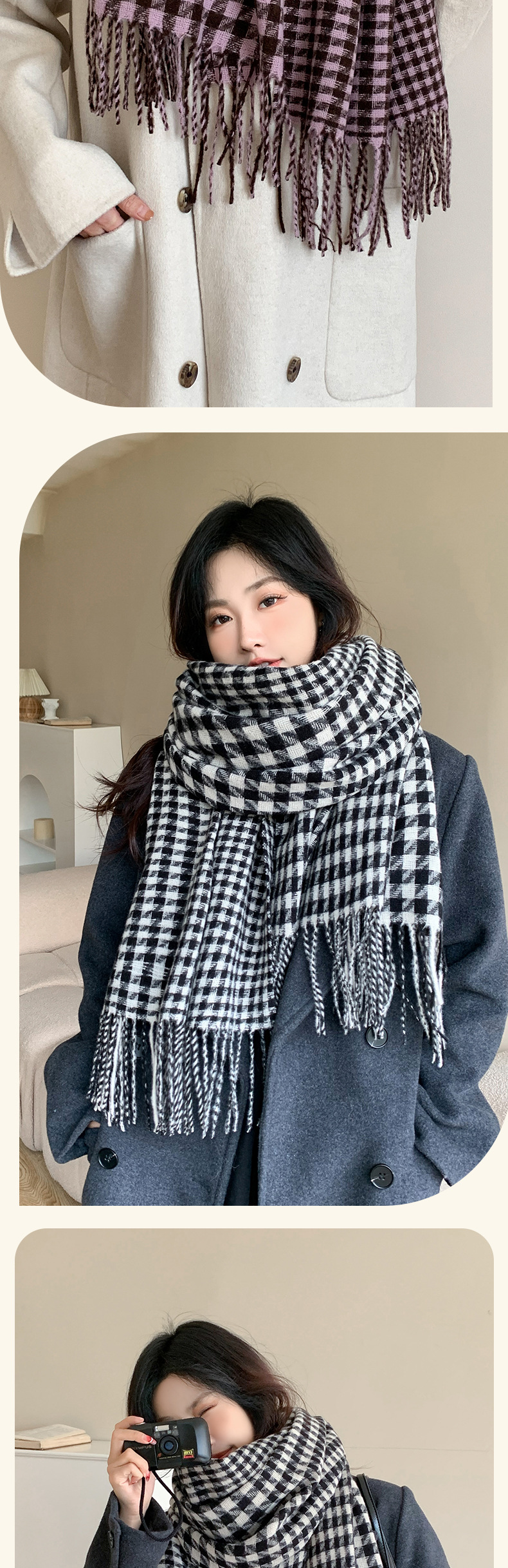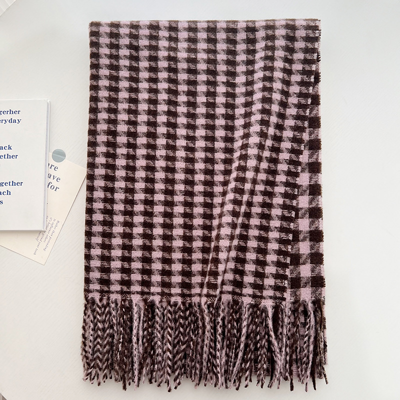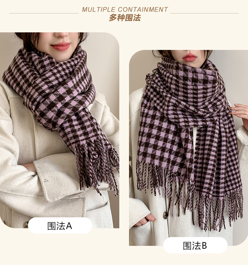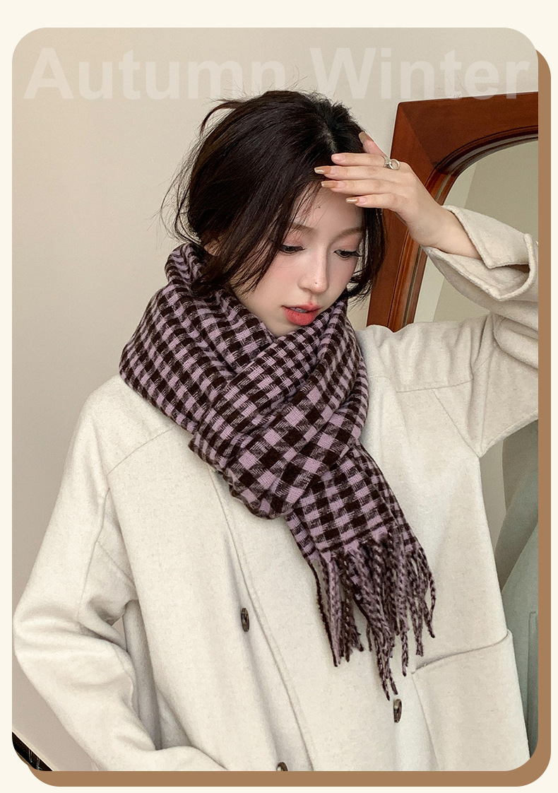 일본과 한국의 컬러 매칭 격자 무늬 스카프 여학생 따뜻한 목도리 복고풍 목 보호 술 스카프 도매 판매 국경 간 공장스토어 가기