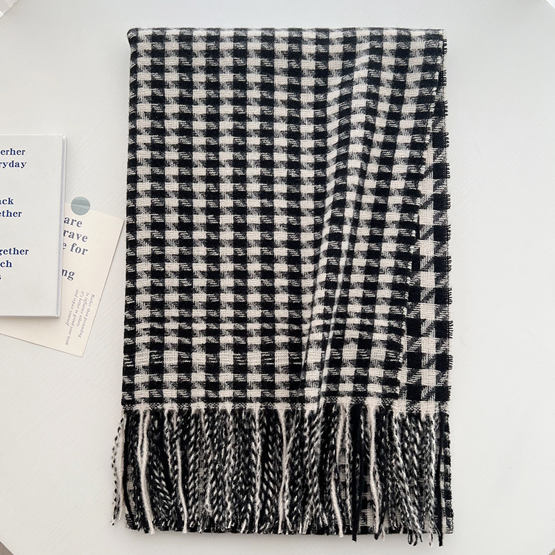일본과 한국의 컬러 매칭 격자 무늬 스카프 여학생 따뜻한 목도리 복고풍 목 보호 술 스카프 도매 판매 국경 간 공장