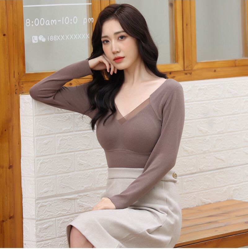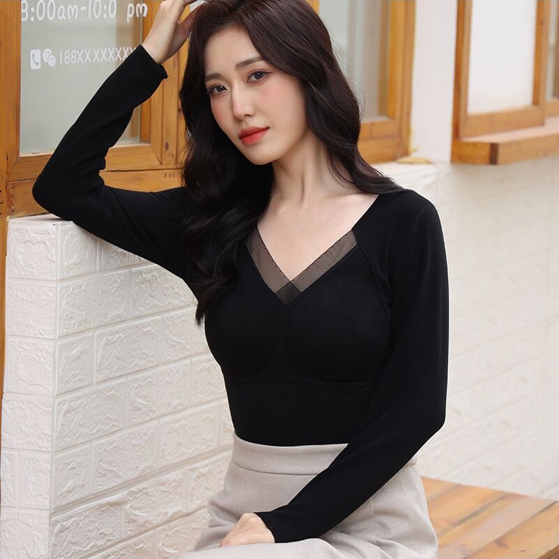 8805 그래핀 긴팔 보온 속옷 여성용 긴팔 바닥 셔츠 올인원 브라 프리 속건 보온 탑