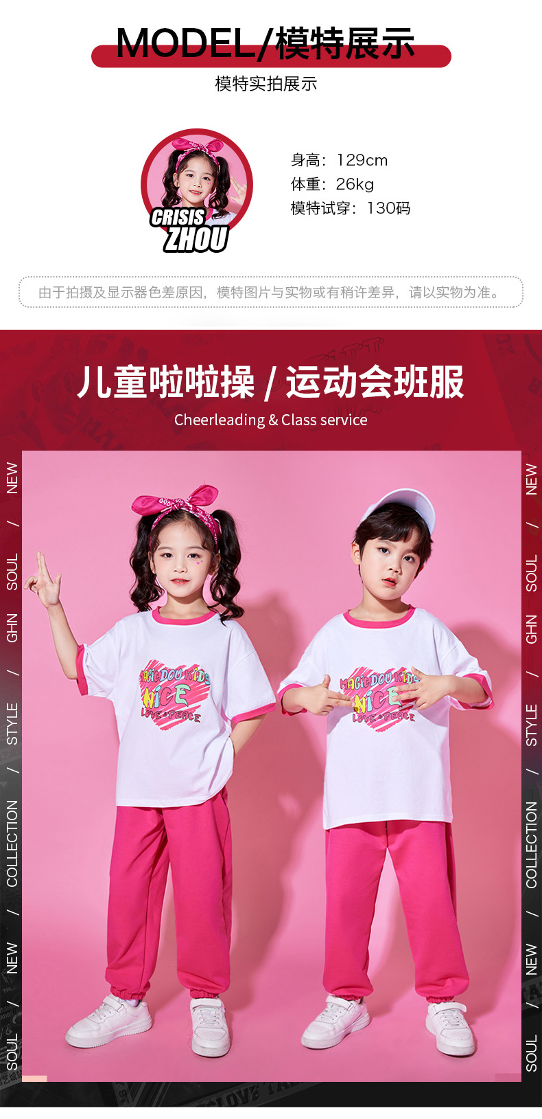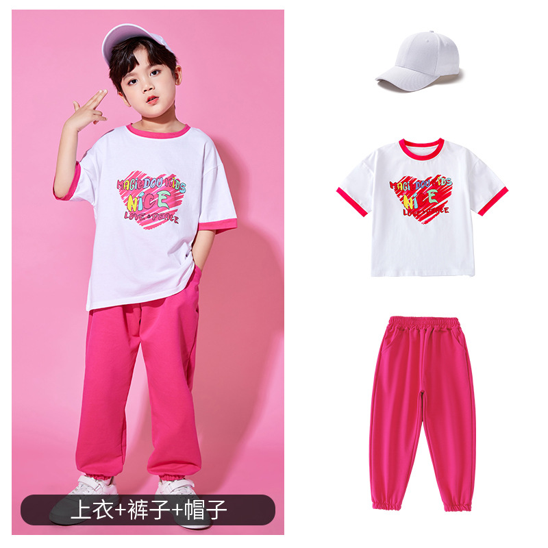 초등학생을위한 어린이 치어리딩 의상 스포츠 회의 개회식 의상 유치원 순면 반팔 수업 세트