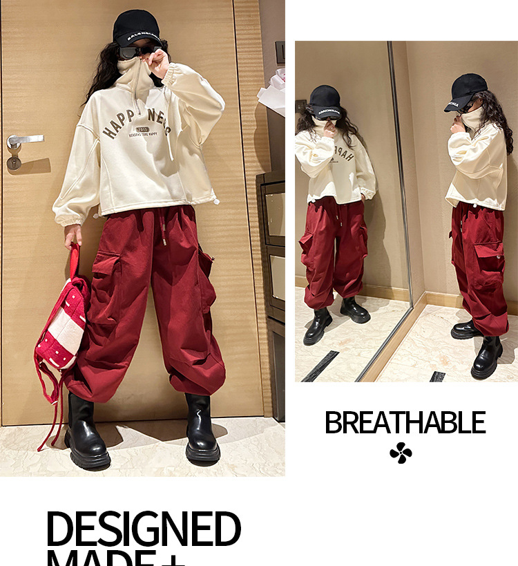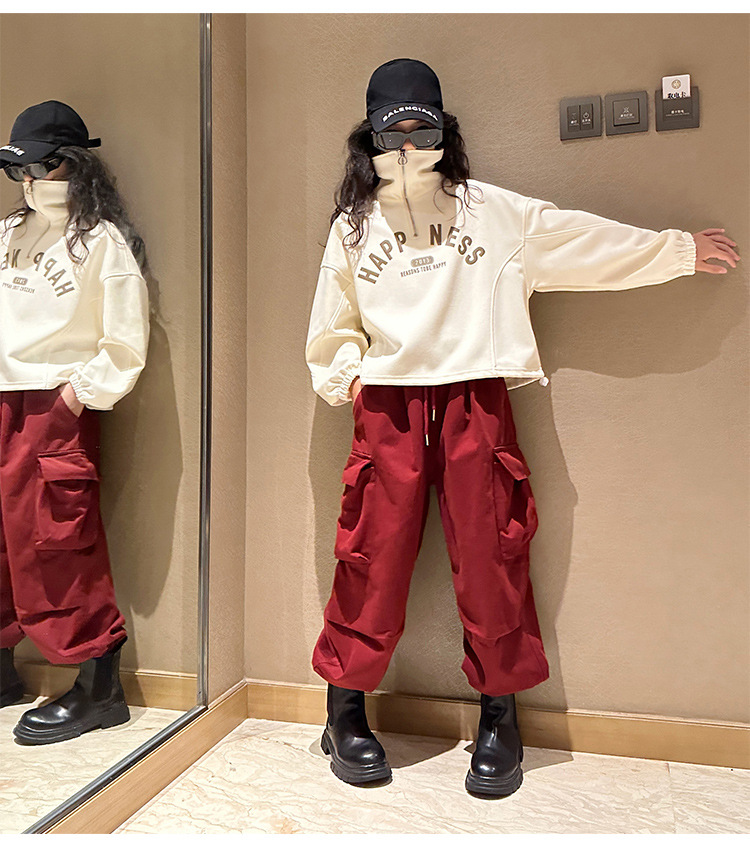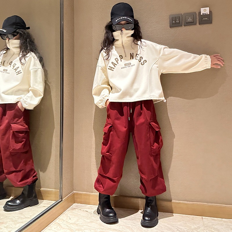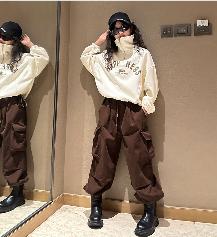 봄과 가을 2023 세트 여아 카고 바지 Wei Yi 새로운 서양 스타일 유행 어린이 가을 원피스 소녀 중간 및 큰 어린이 패션