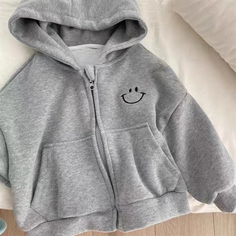 한국 스타일 캔디 컬러 단색 후드 재킷 곰 가디건 아기 소년과 소녀를위한 긴 소매 자수 지퍼 봄과 가을
