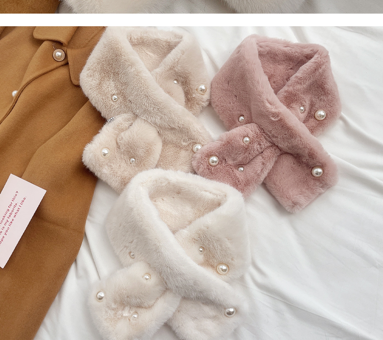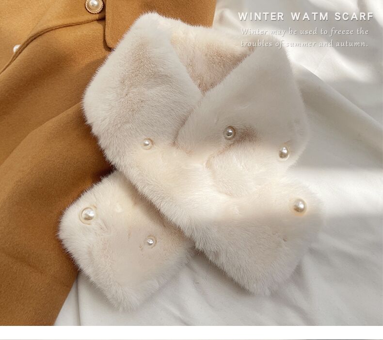 동대문 패션 진주 봉제 작은 스카프 여성용 겨울 모조 토끼 모피 칼라 두꺼운 목 보호 모든 매치 스카프스토어 가기