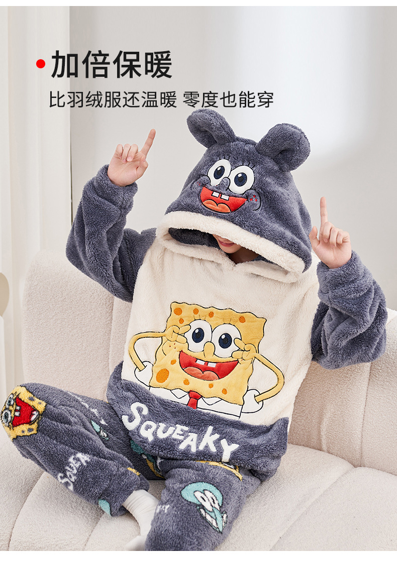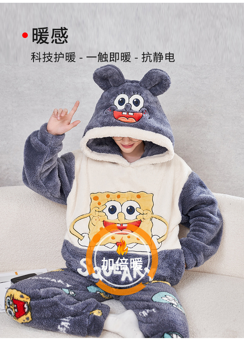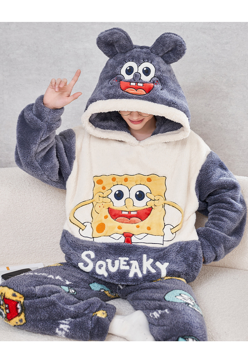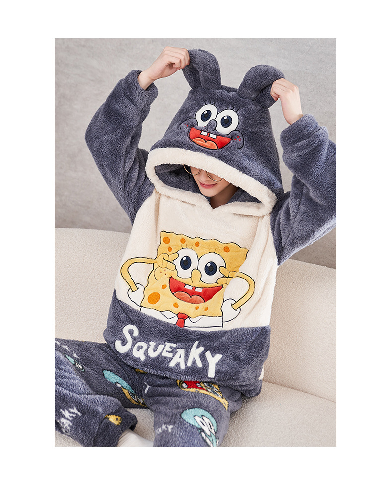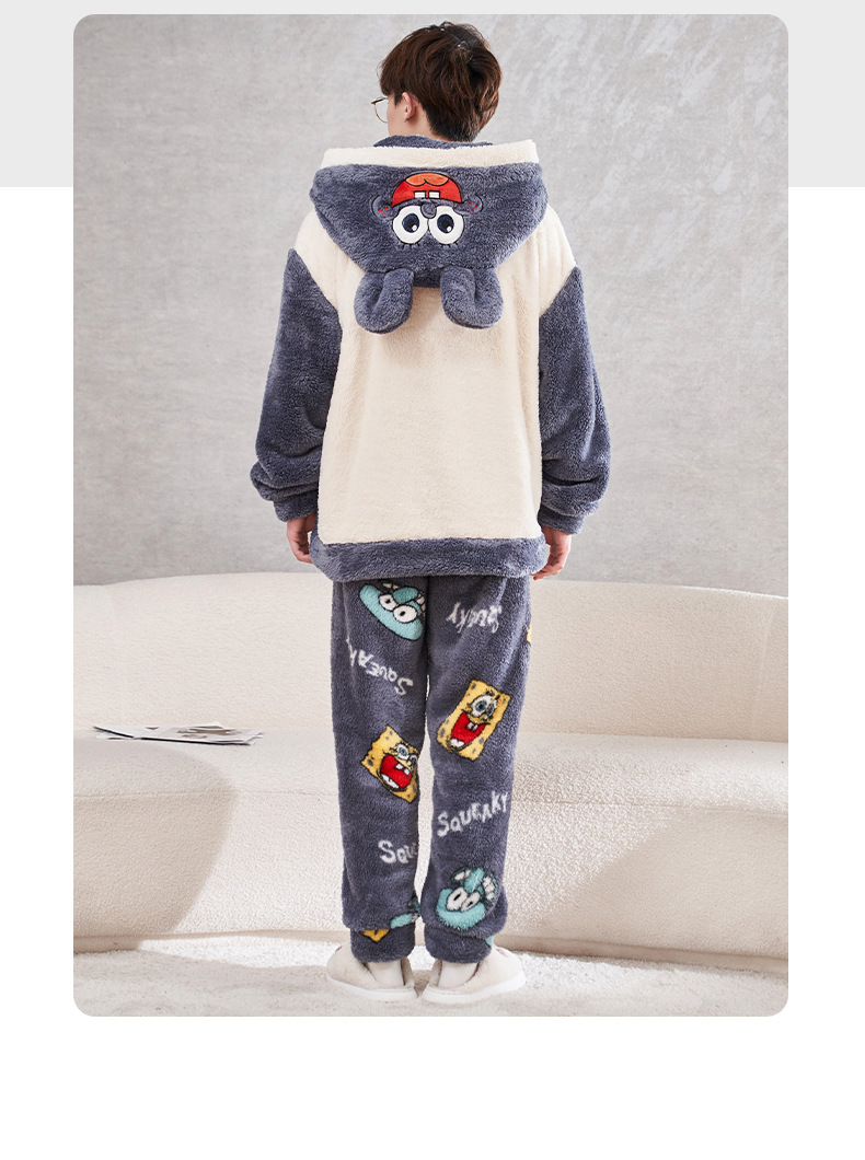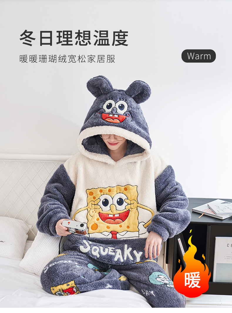 겨울철 여성용 커플 스타일 잠옷, 벨벳과 두꺼운 산호 벨벳, 만화 스티치, 남성용 따뜻한 가정복 투피스 세트