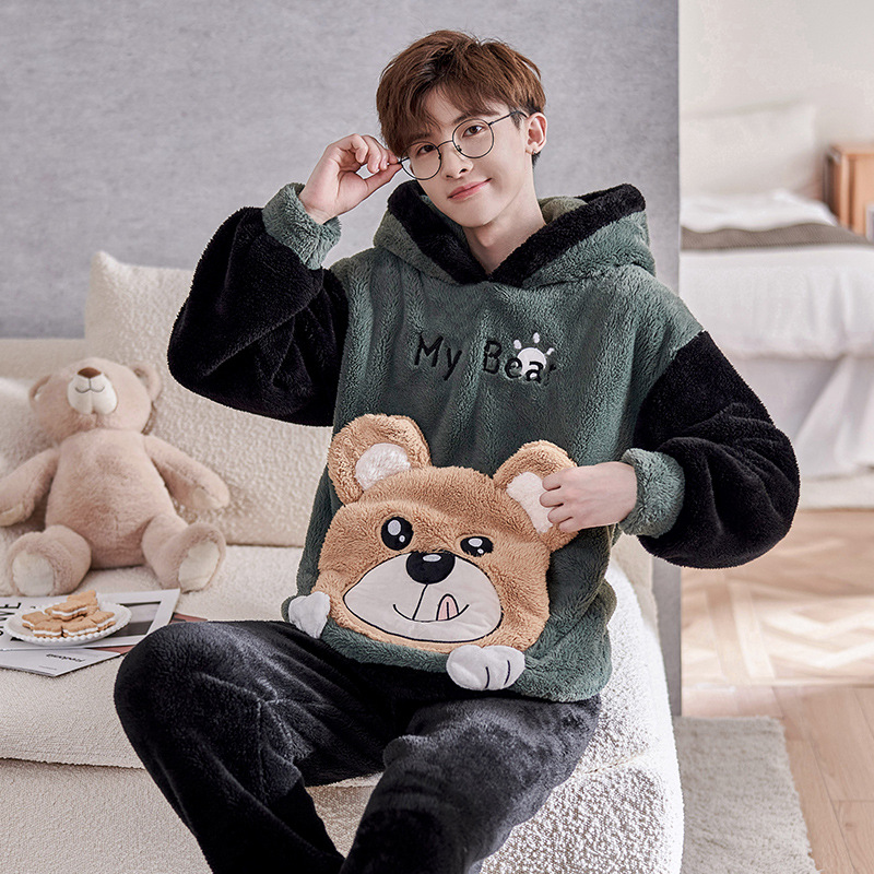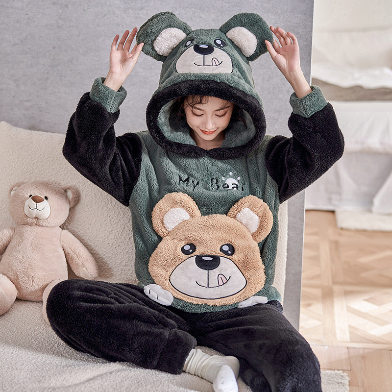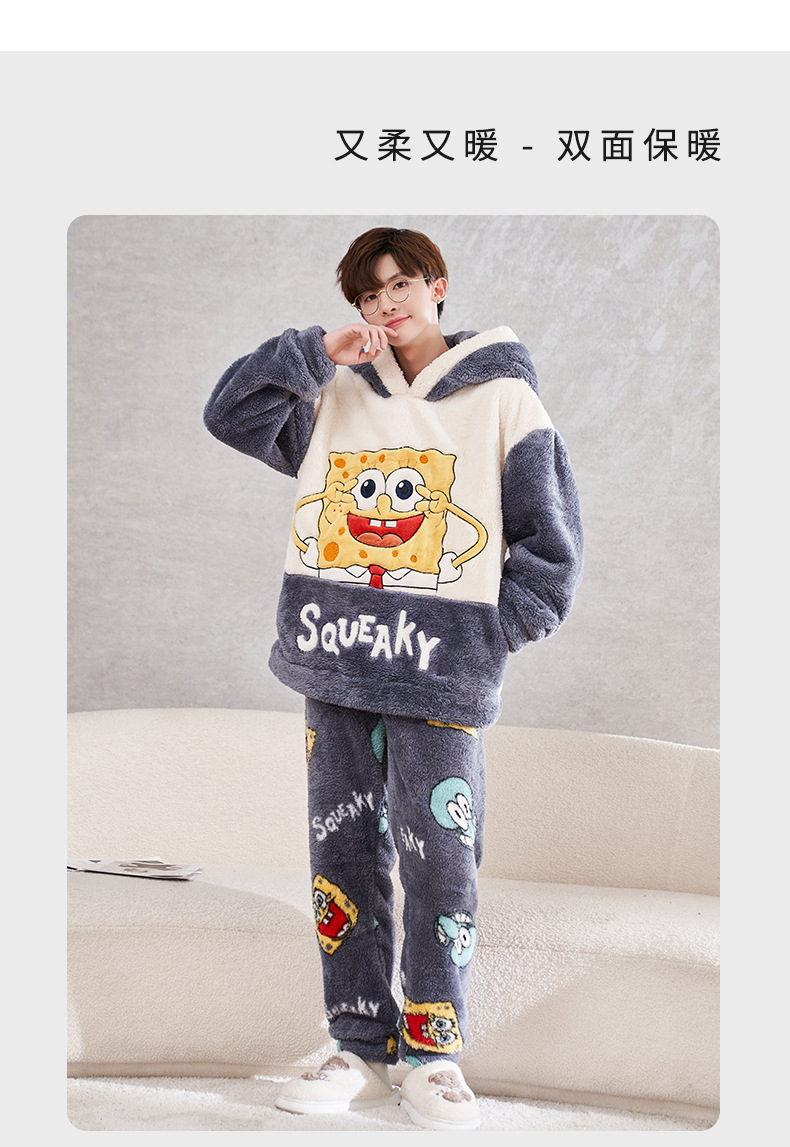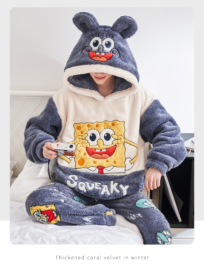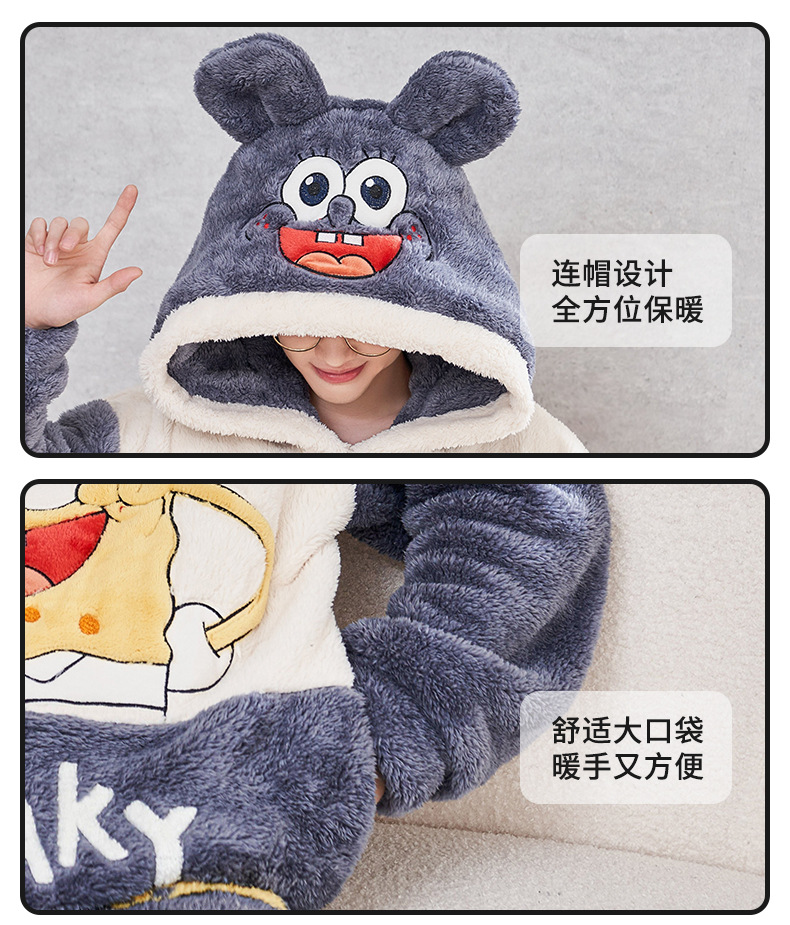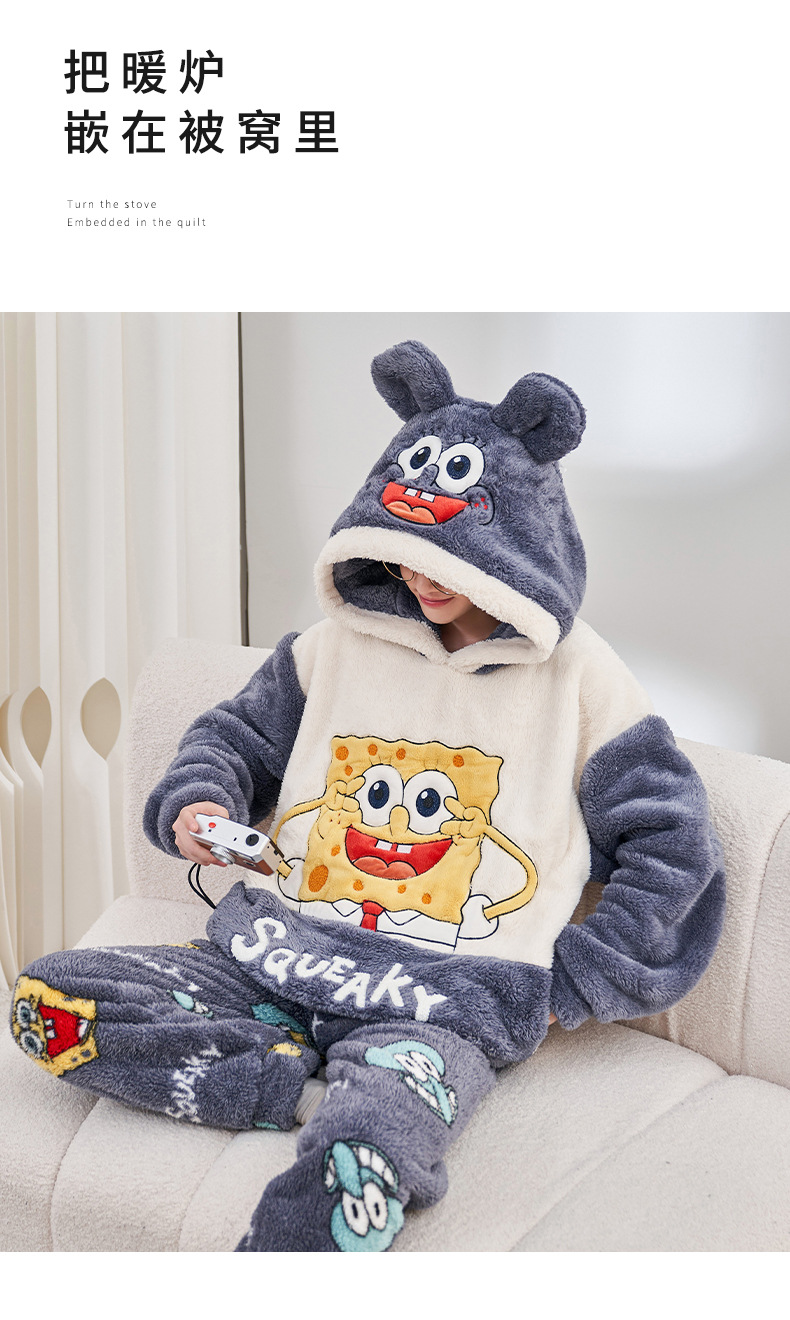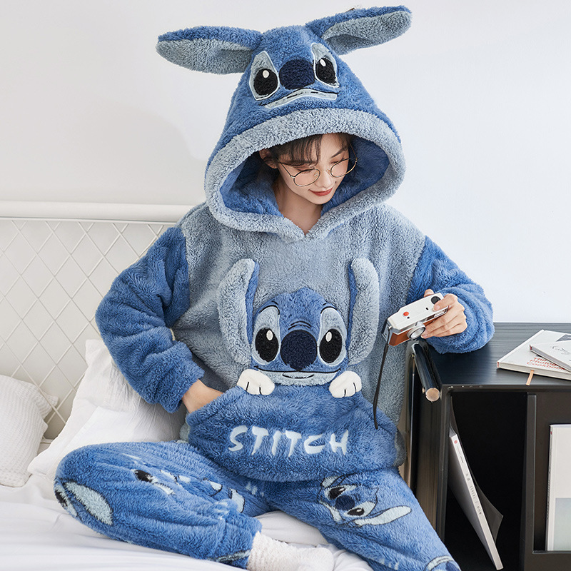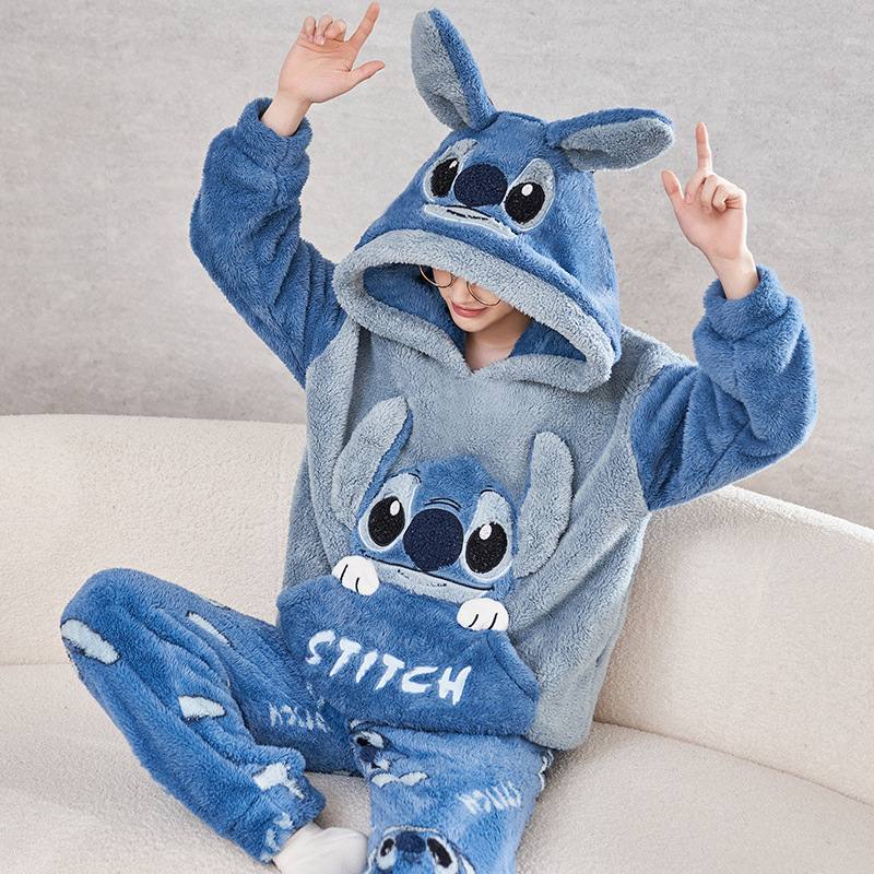 겨울철 여성용 커플 스타일 잠옷, 벨벳과 두꺼운 산호 벨벳, 만화 스티치, 남성용 따뜻한 가정복 투피스 세트스토어 가기