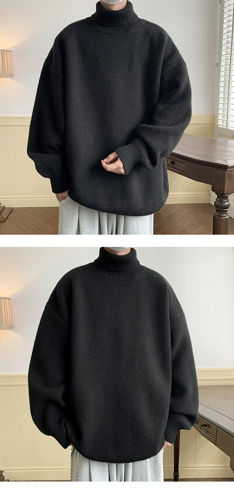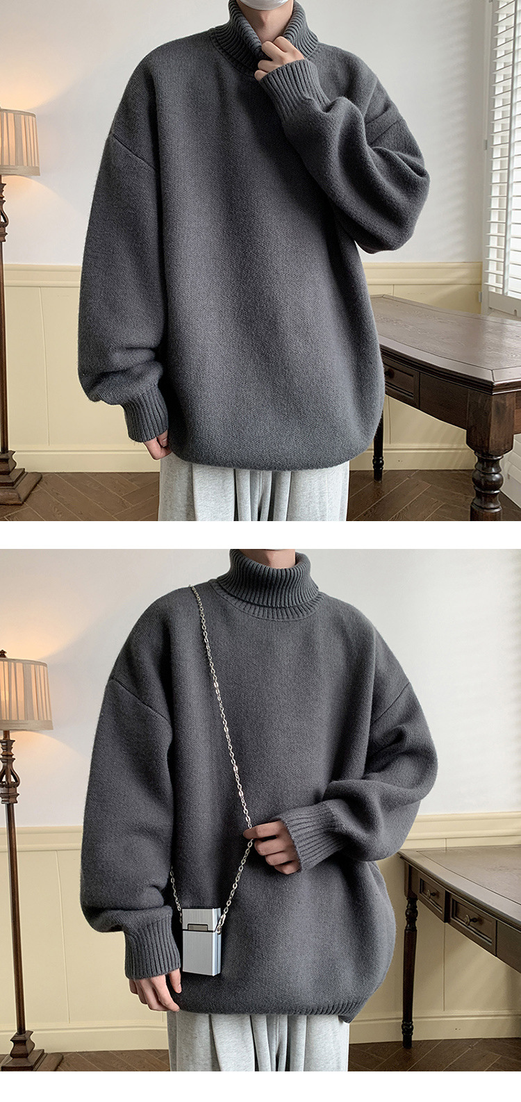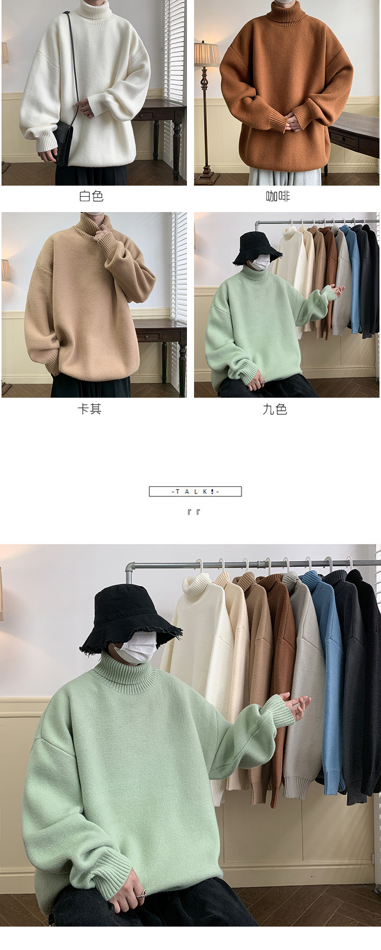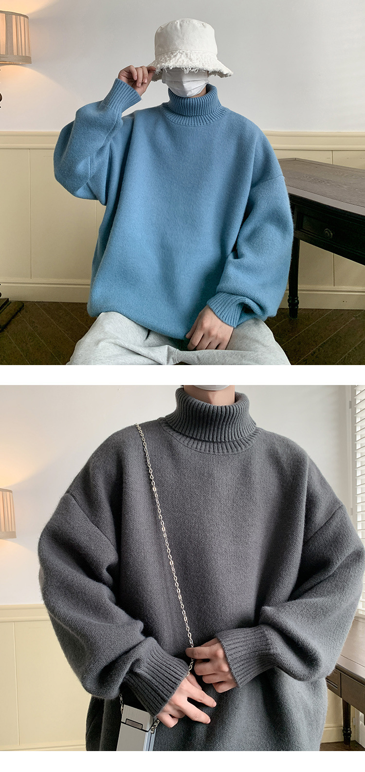 2025 홍콩 스타일 가을 겨울 신상 청소년 패션 트렌드 하이넥 스웨터 남성 루즈핏 스웨터 이너웨어
