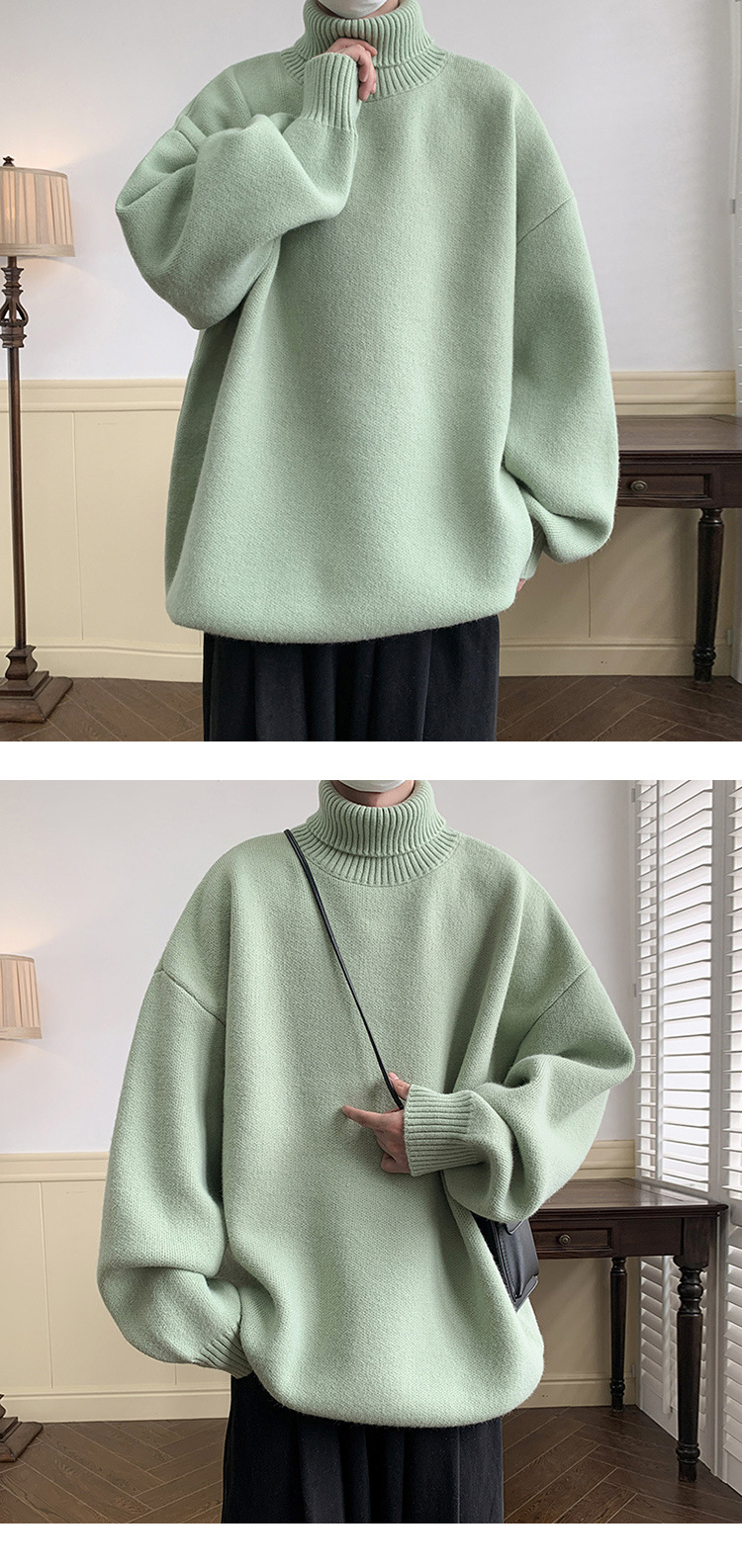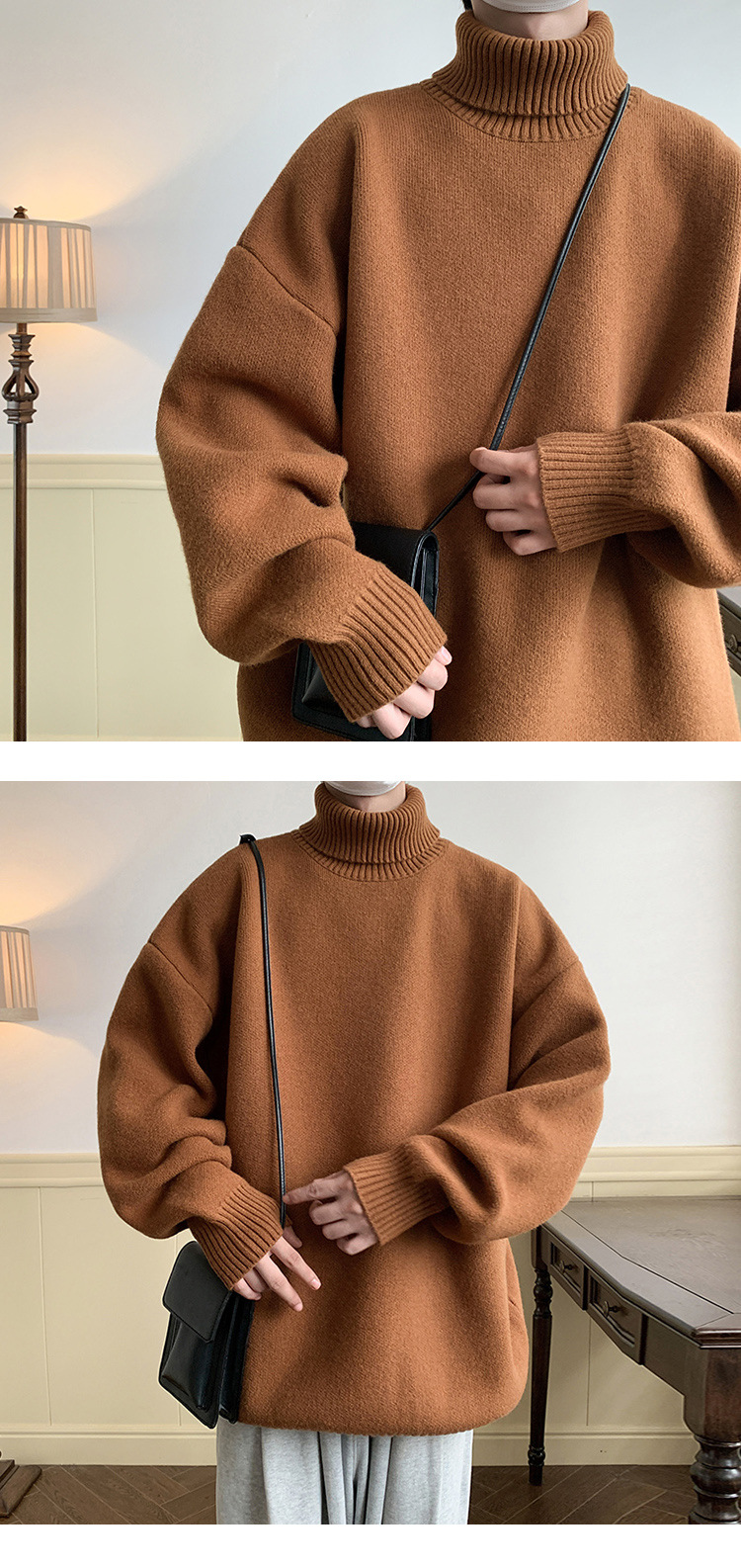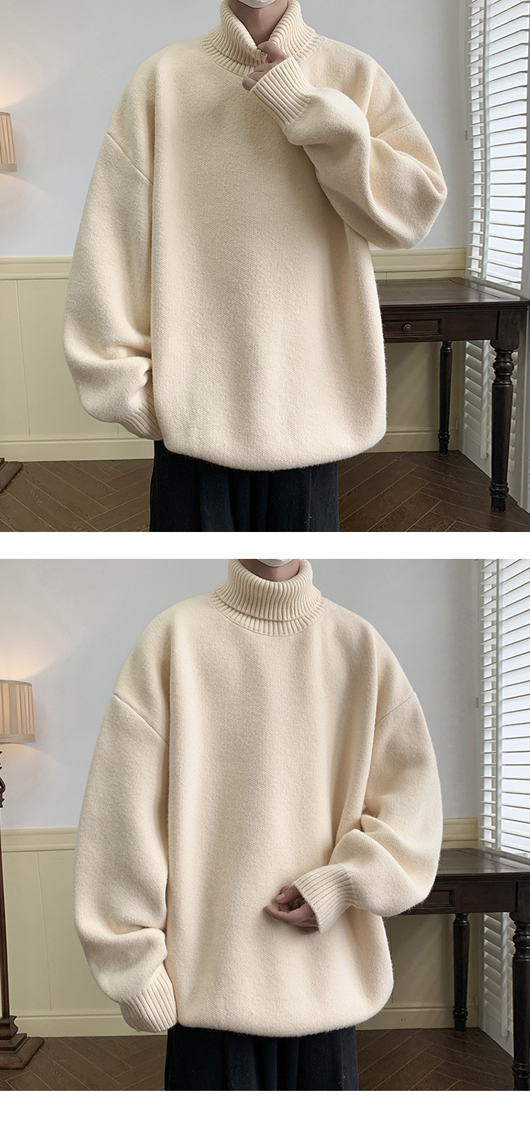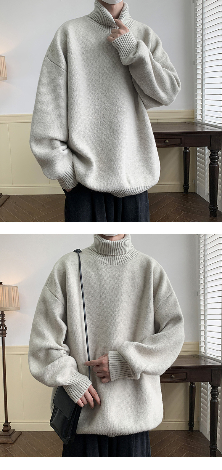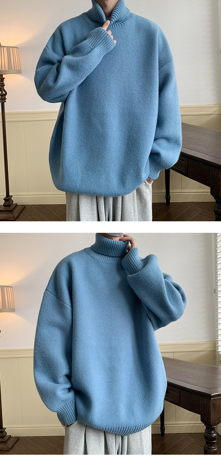 2025 홍콩 스타일 가을 겨울 신상 청소년 패션 트렌드 하이넥 스웨터 남성 루즈핏 스웨터 이너웨어