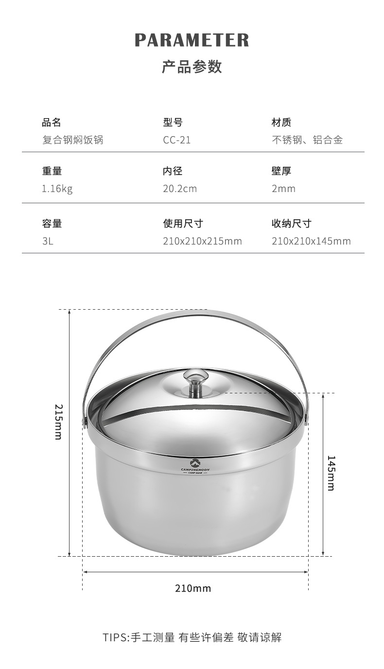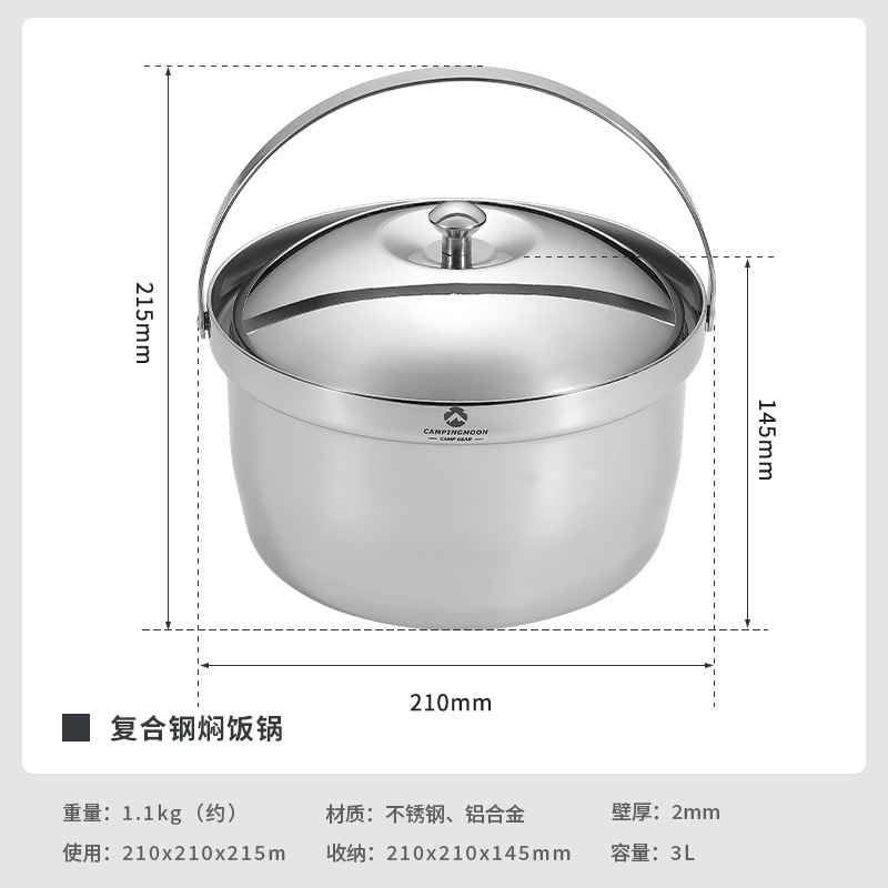 Coleman CC-21 스튜 냄비 두꺼운 스테인레스 스틸 야외 조리기구 캠핑 자율 운전 냄비 휴대용 캠핑 수프 냄비스토어 가기