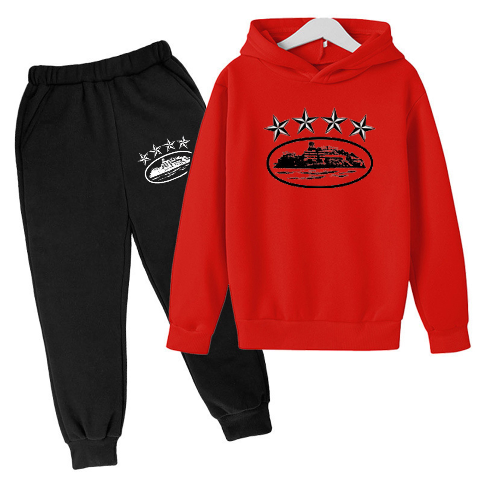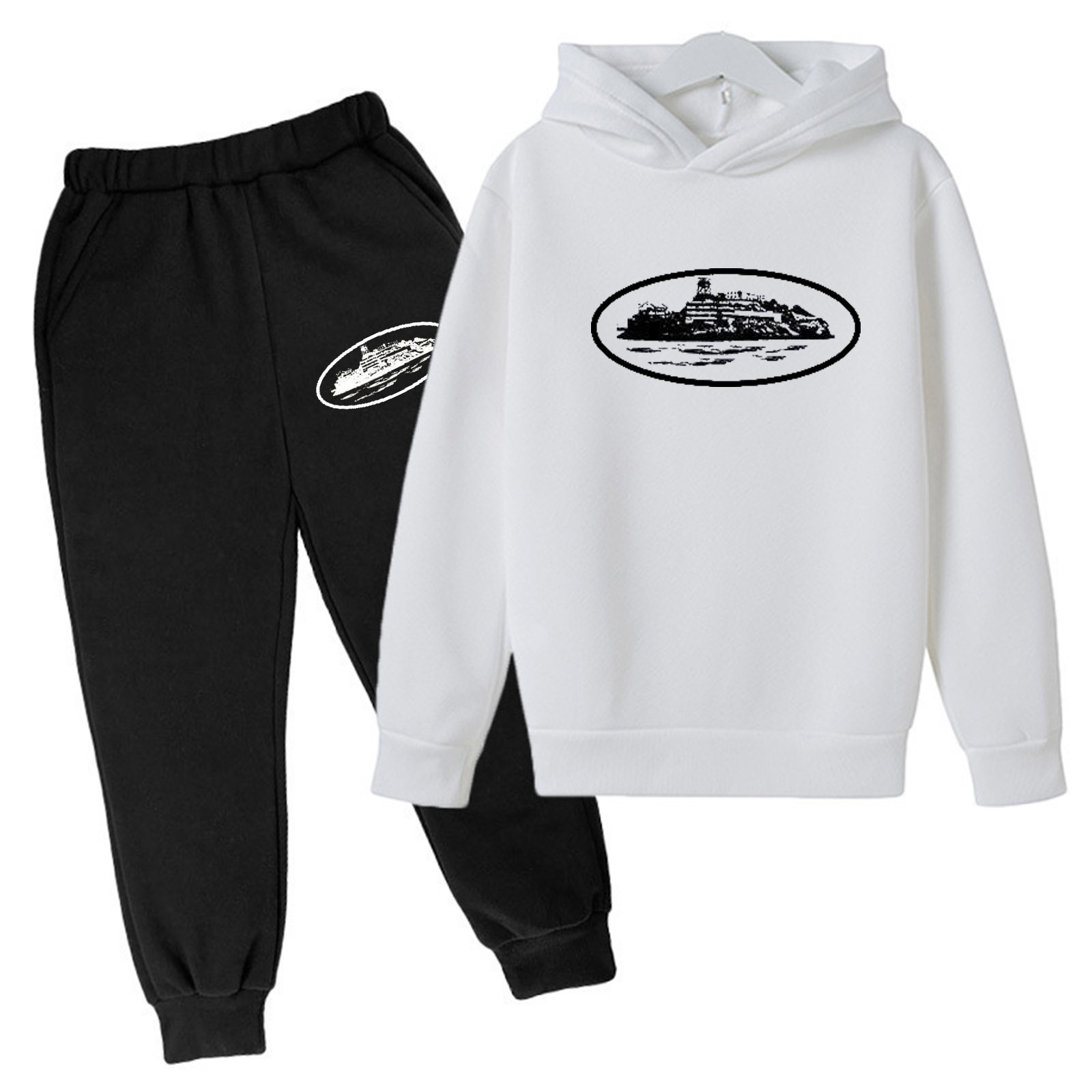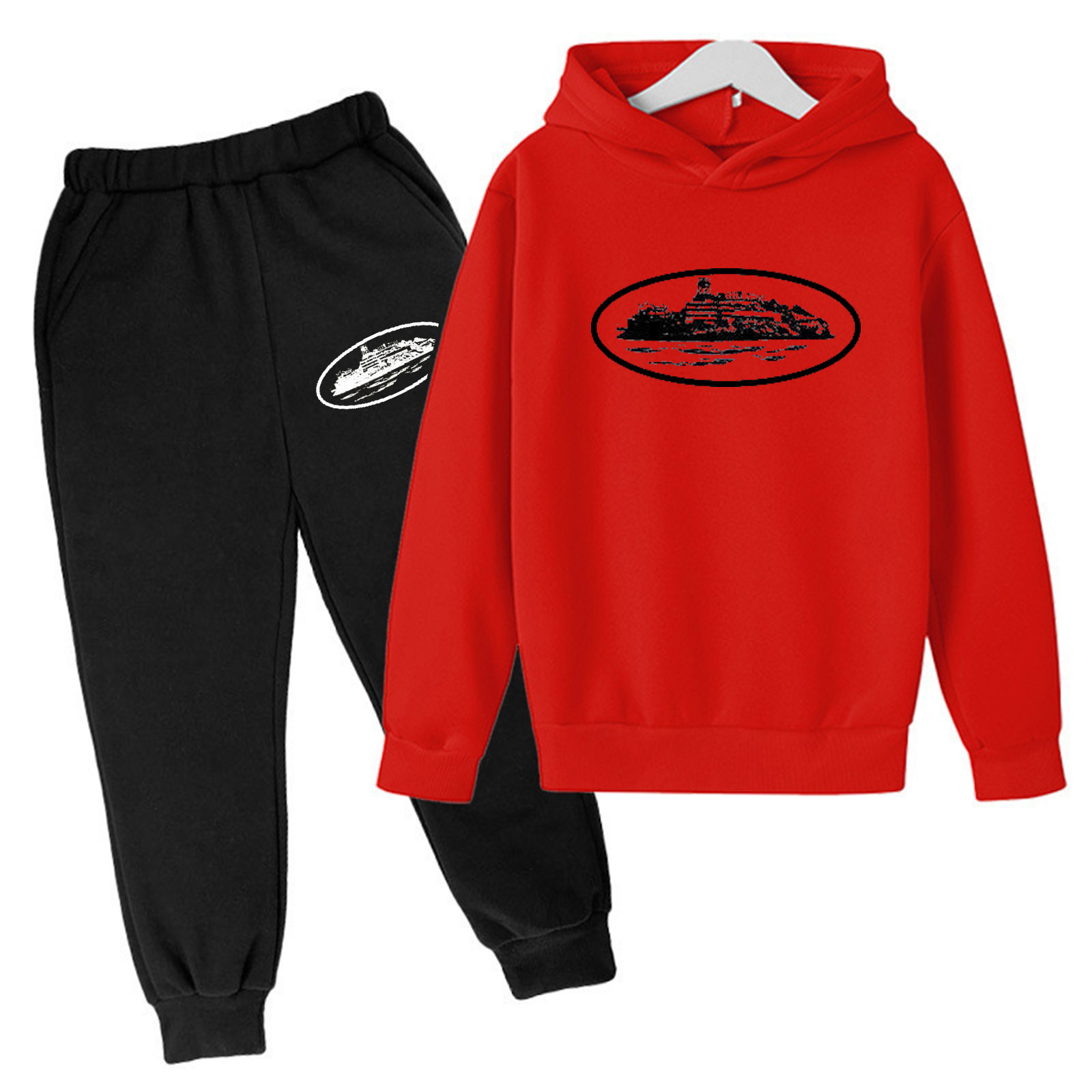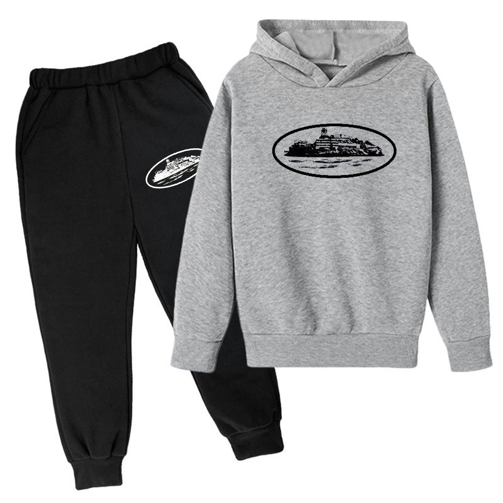 크로스 보더 가을과 겨울 어린이 느슨한 스웨터 후드 스포츠 레저 양털 어린이 스웨터 투피스 세트