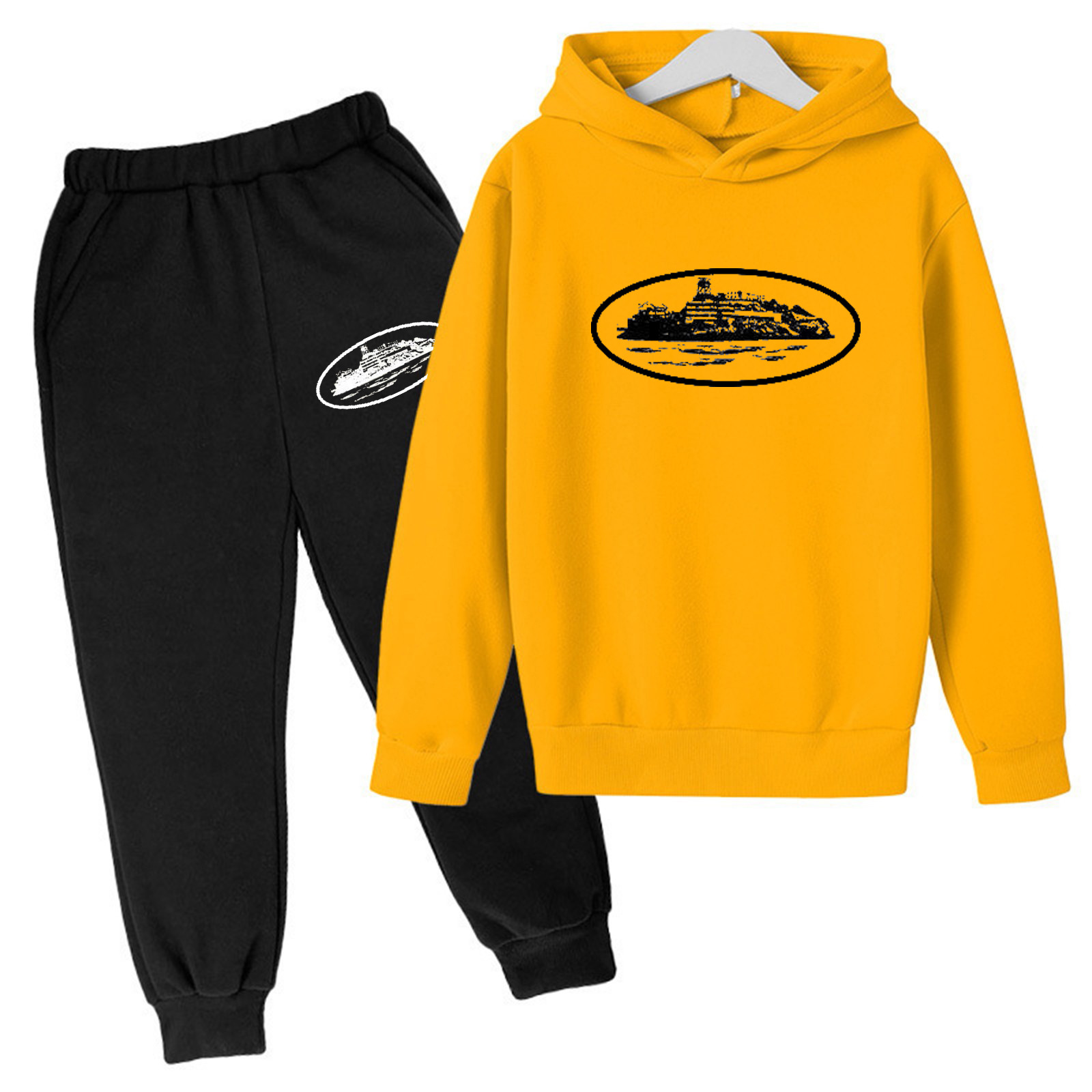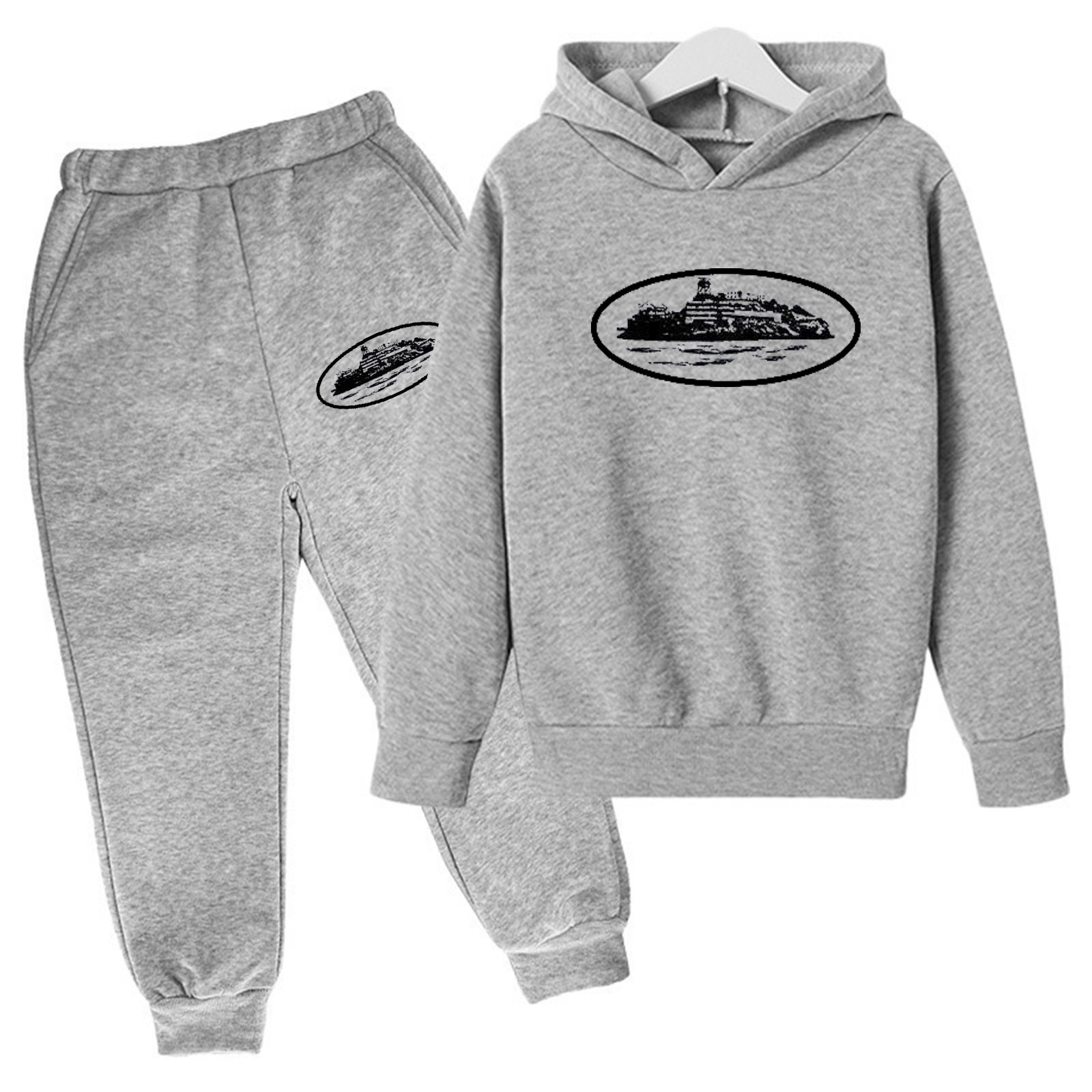 크로스 보더 가을과 겨울 어린이 느슨한 스웨터 후드 스포츠 레저 양털 어린이 스웨터 투피스 세트스토어 가기