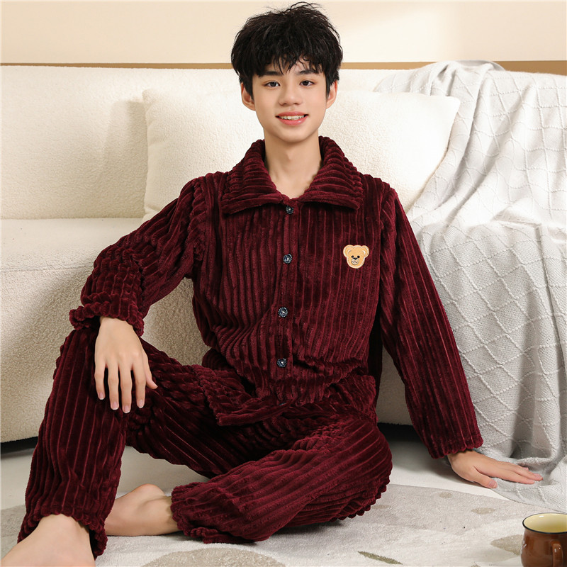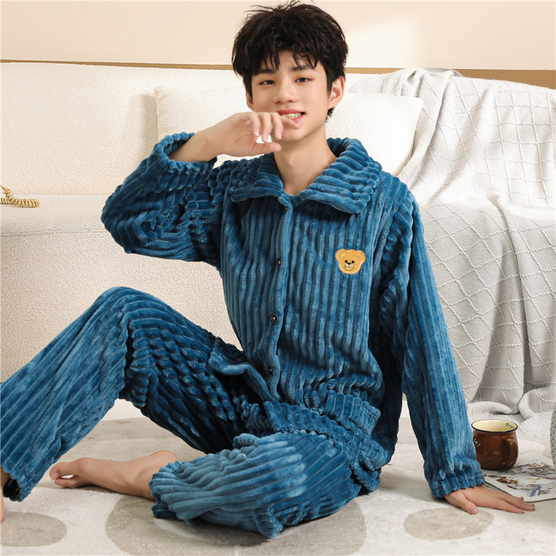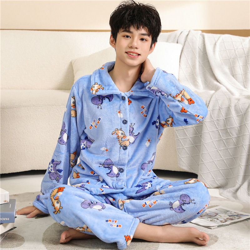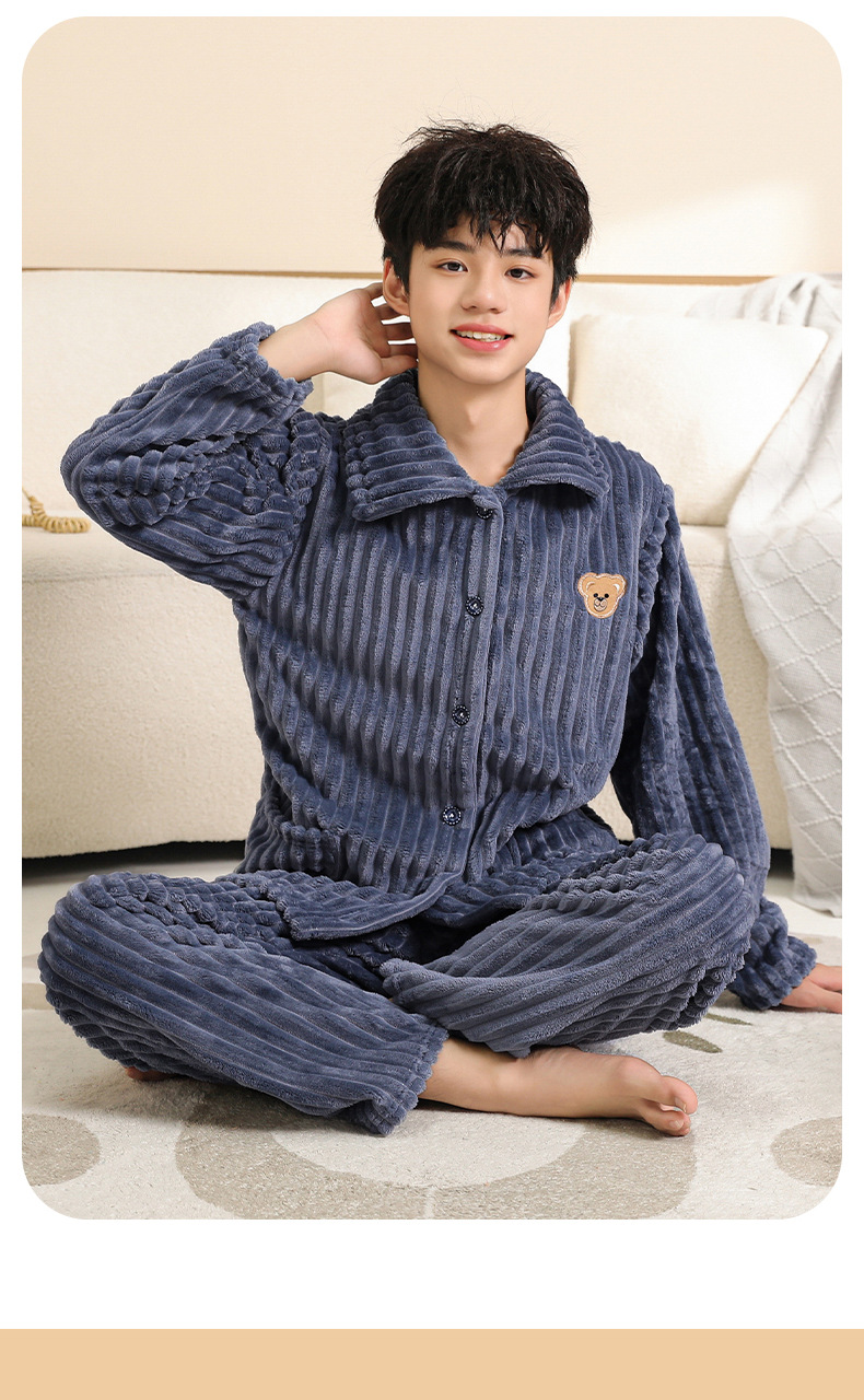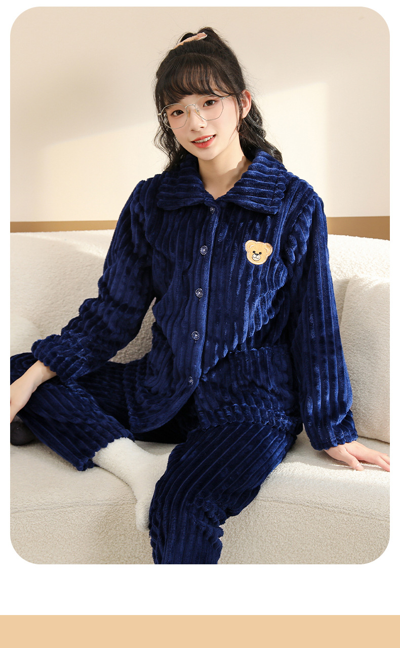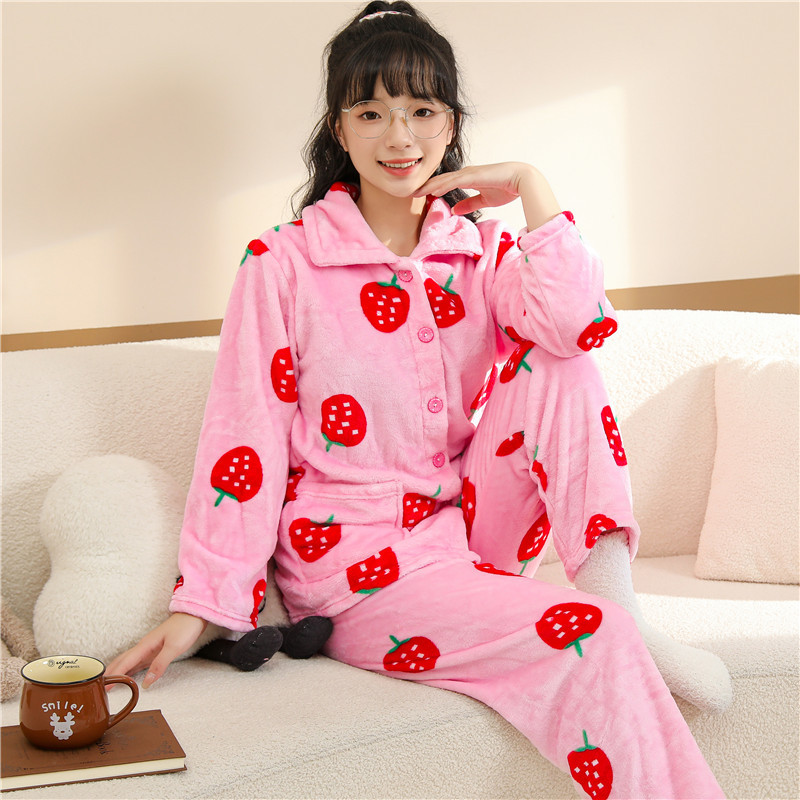 2023 새로운 잠옷 소녀 가을과 겨울 산호 양털 기모 귀여운 달콤한 단색 따뜻한 가정 의류 세트스토어 가기