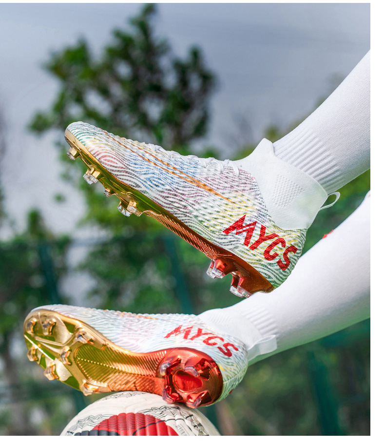 골드 도금 바닥 AG 스파이크 TF 남학생 및 청소년 인공 지상 야외 훈련 및 경기 신발을 갖춘 크로스보더 하이탑 축구화스토어 가기
