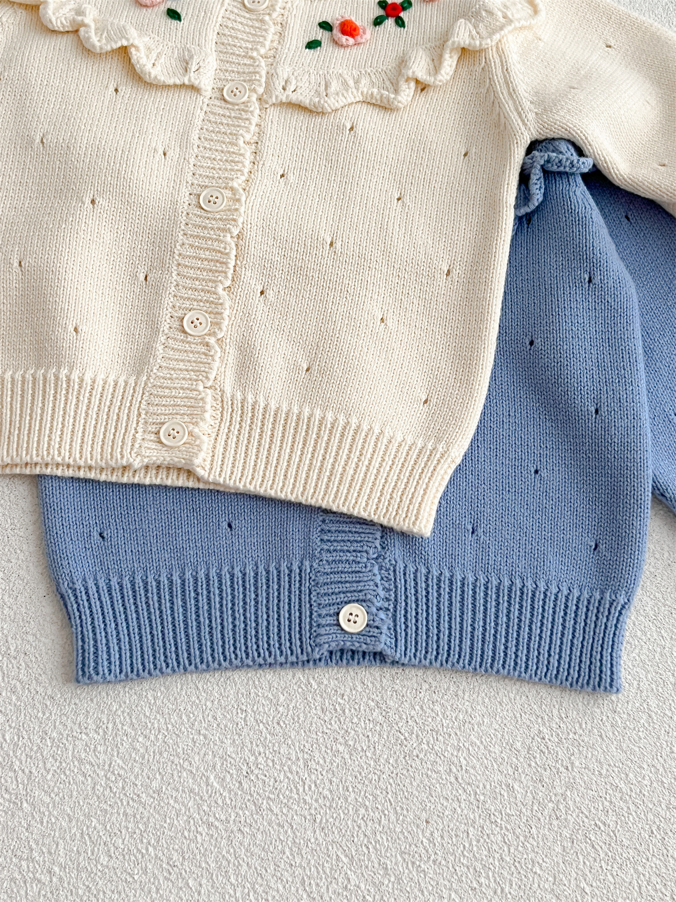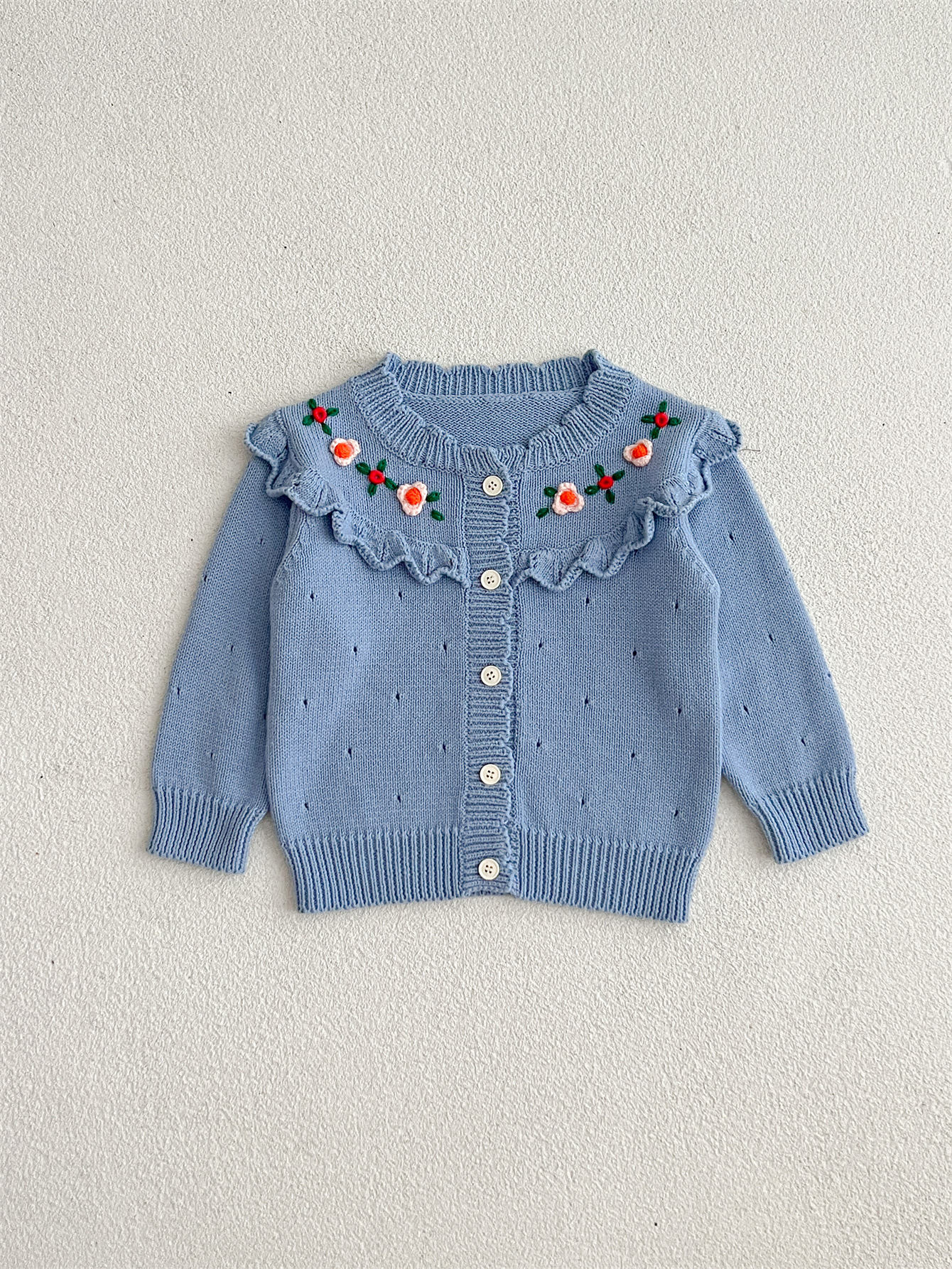 2023 가을과 겨울 새로운 아기 니트 카디건 손 자수 아기 소녀 귀여운 스웨터 코트 울 탑