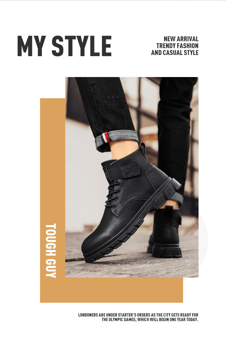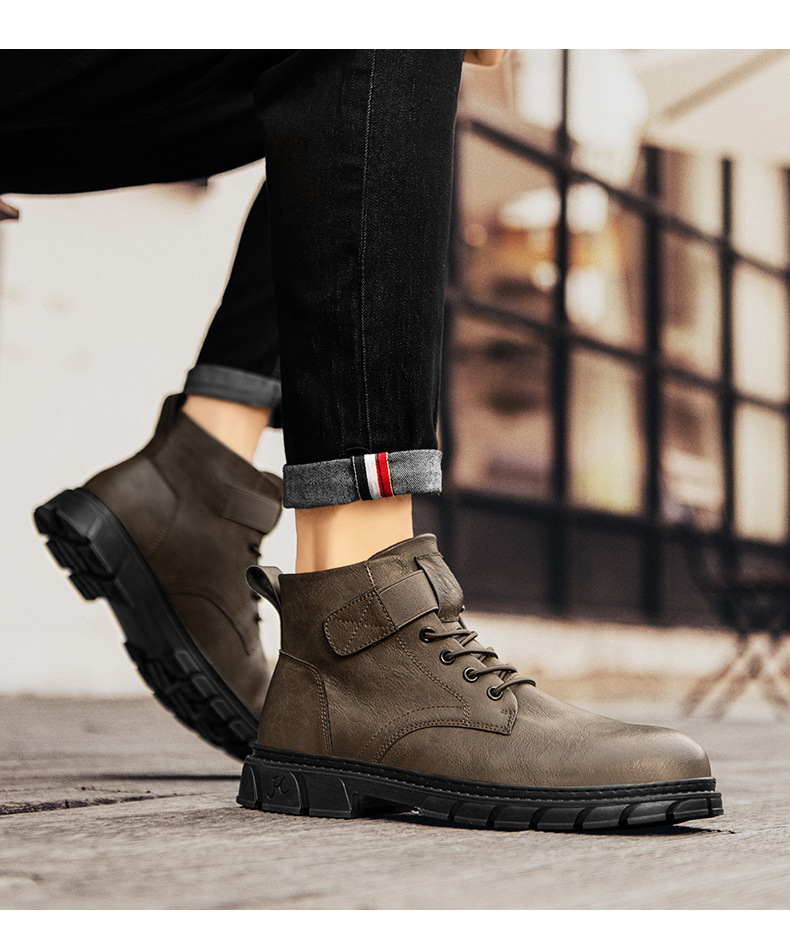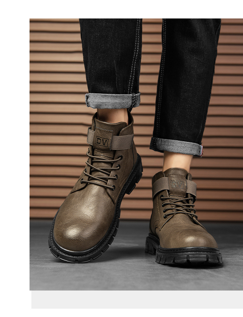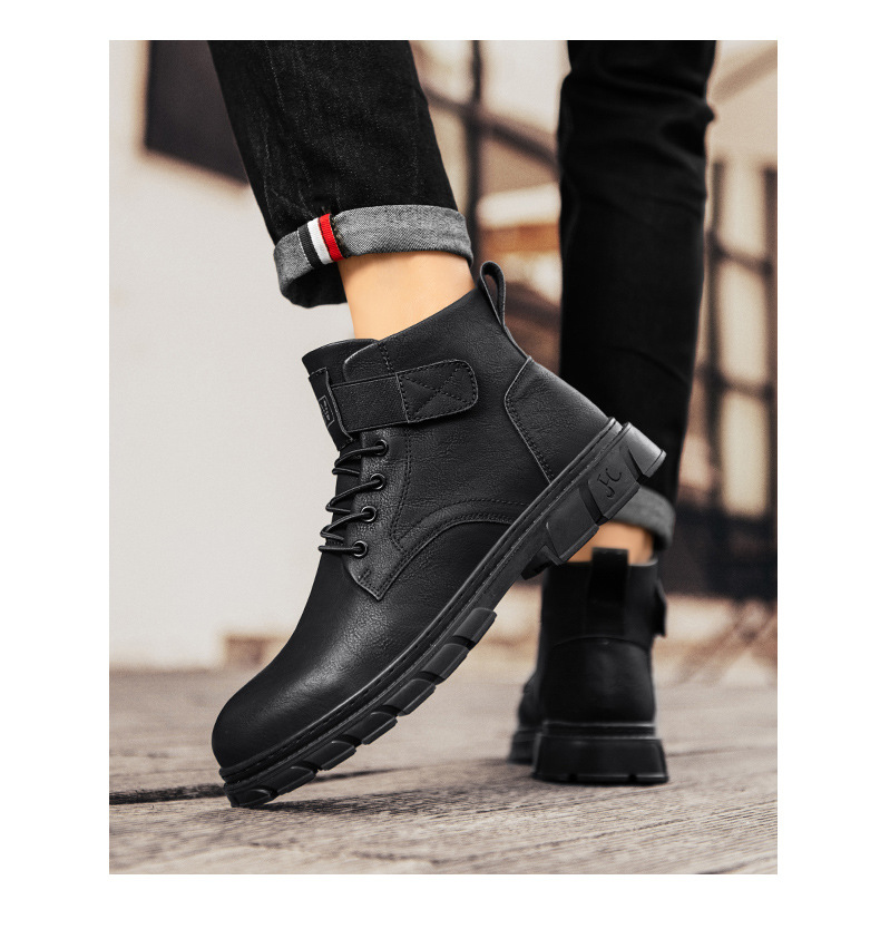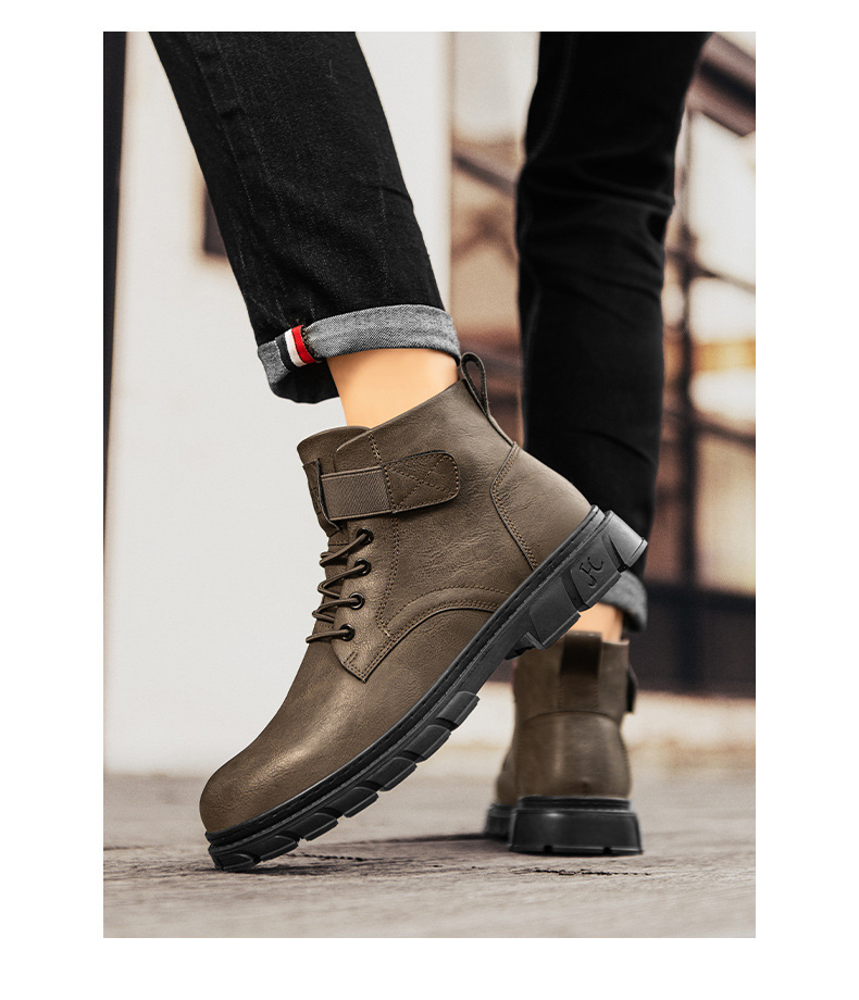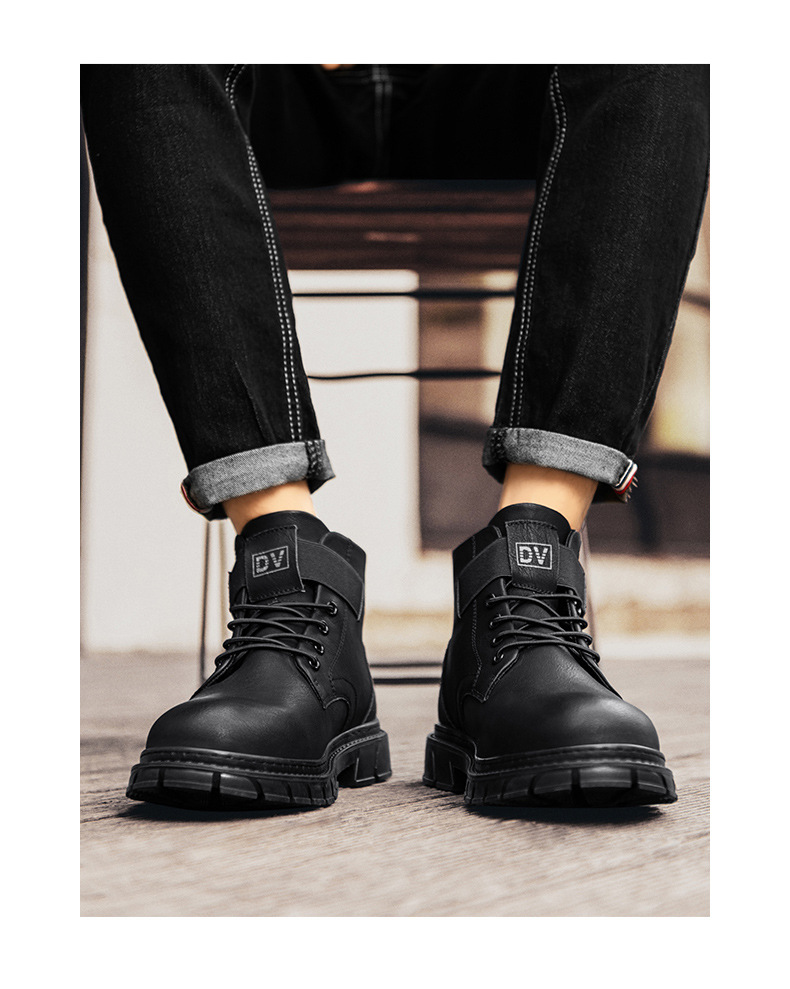가을과 겨울 새로운 마틴 부츠 남성용 레트로 하이 엔드 센스 영국 하이 탑 가죽 신발 캐주얼 작업복 신발 증가 플랫폼 부츠스토어 가기