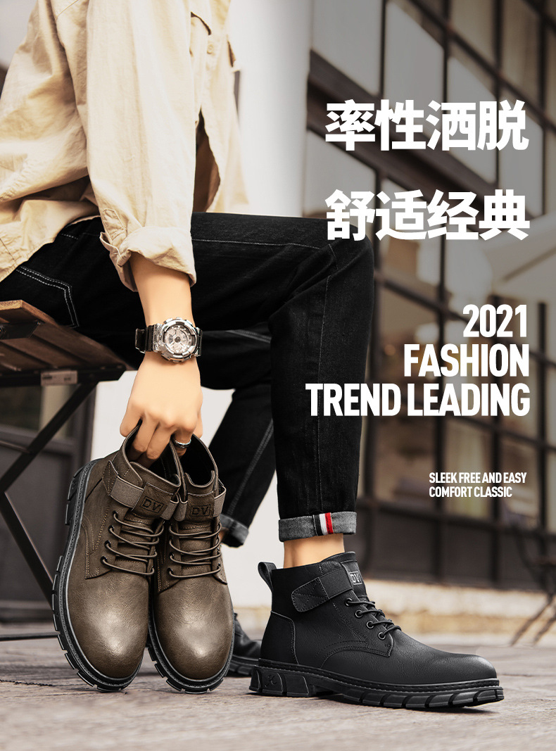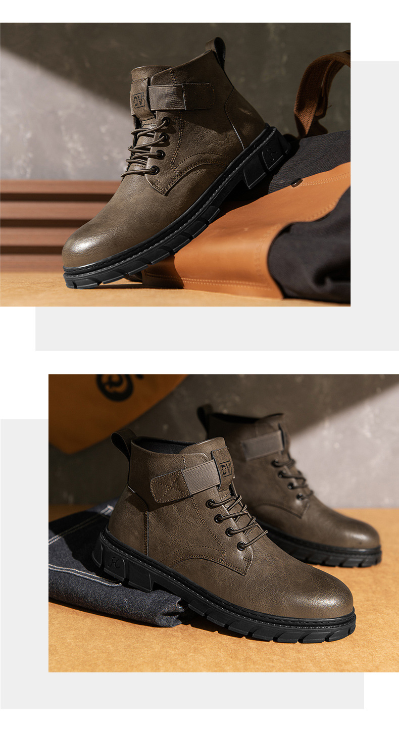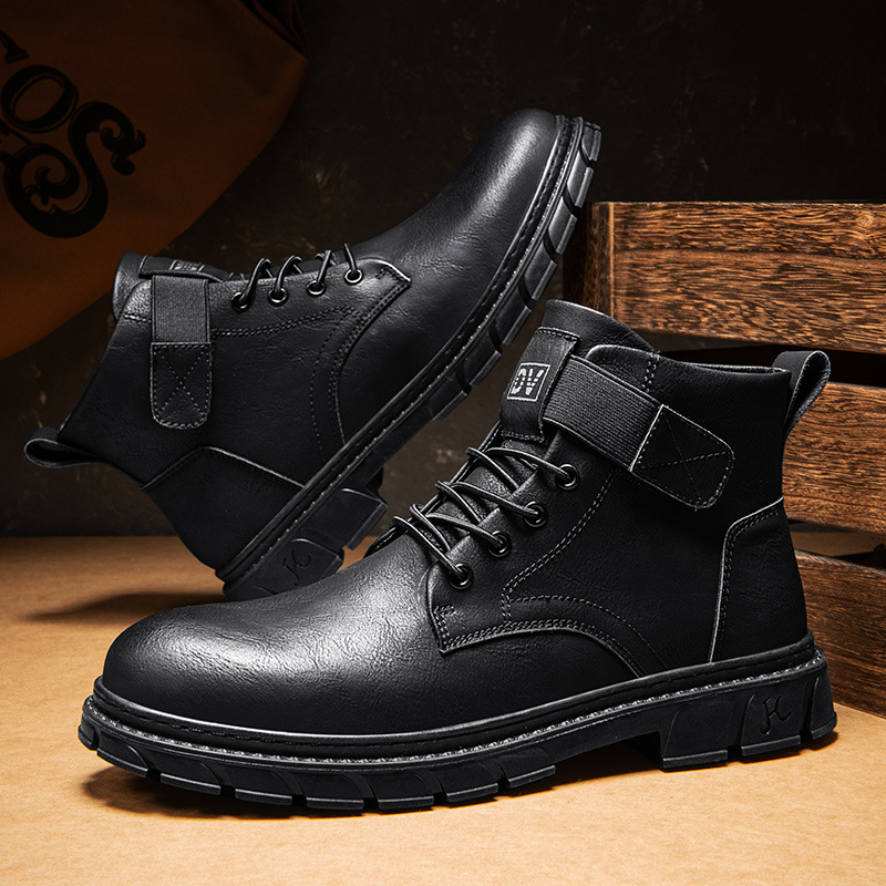 가을과 겨울 새로운 마틴 부츠 남성용 레트로 하이 엔드 센스 영국 하이 탑 가죽 신발 캐주얼 작업복 신발 증가 플랫폼 부츠
