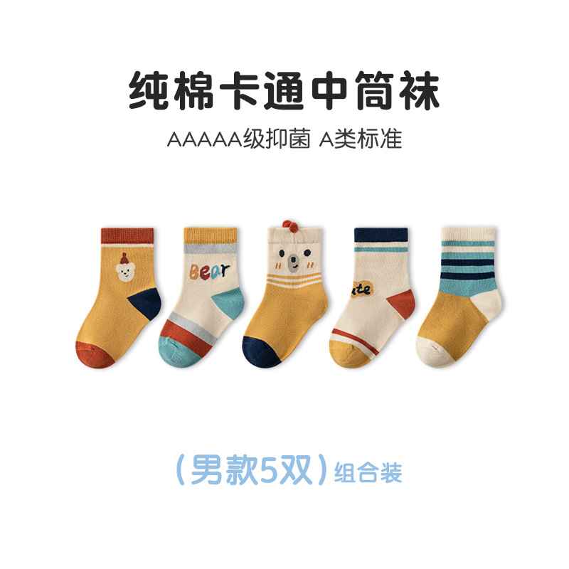 Tangram 어린이 양말 가을과 겨울 새로운 두꺼운면 튜브 양말 큰 어린이 단색 학생 양말 소년과 소녀 양말 도매