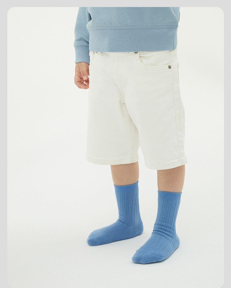 Tangram 어린이 양말 가을과 겨울 새로운 두꺼운면 튜브 양말 큰 어린이 단색 학생 양말 소년과 소녀 양말 도매스토어 가기