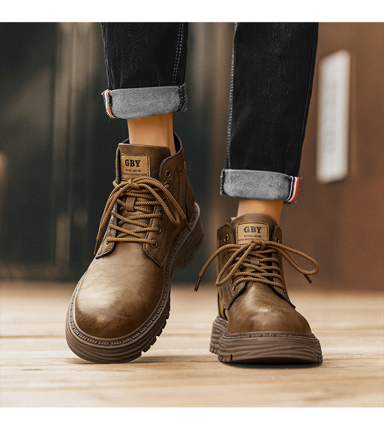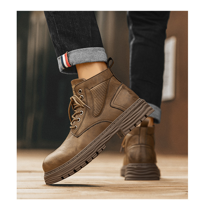 마틴 부츠 남성 신발 가을과 겨울 새로운 하이탑 영국 스타일 레저 오토바이 가죽 부츠 차가운 끈적 끈적한 가죽 스포츠 남성 부츠