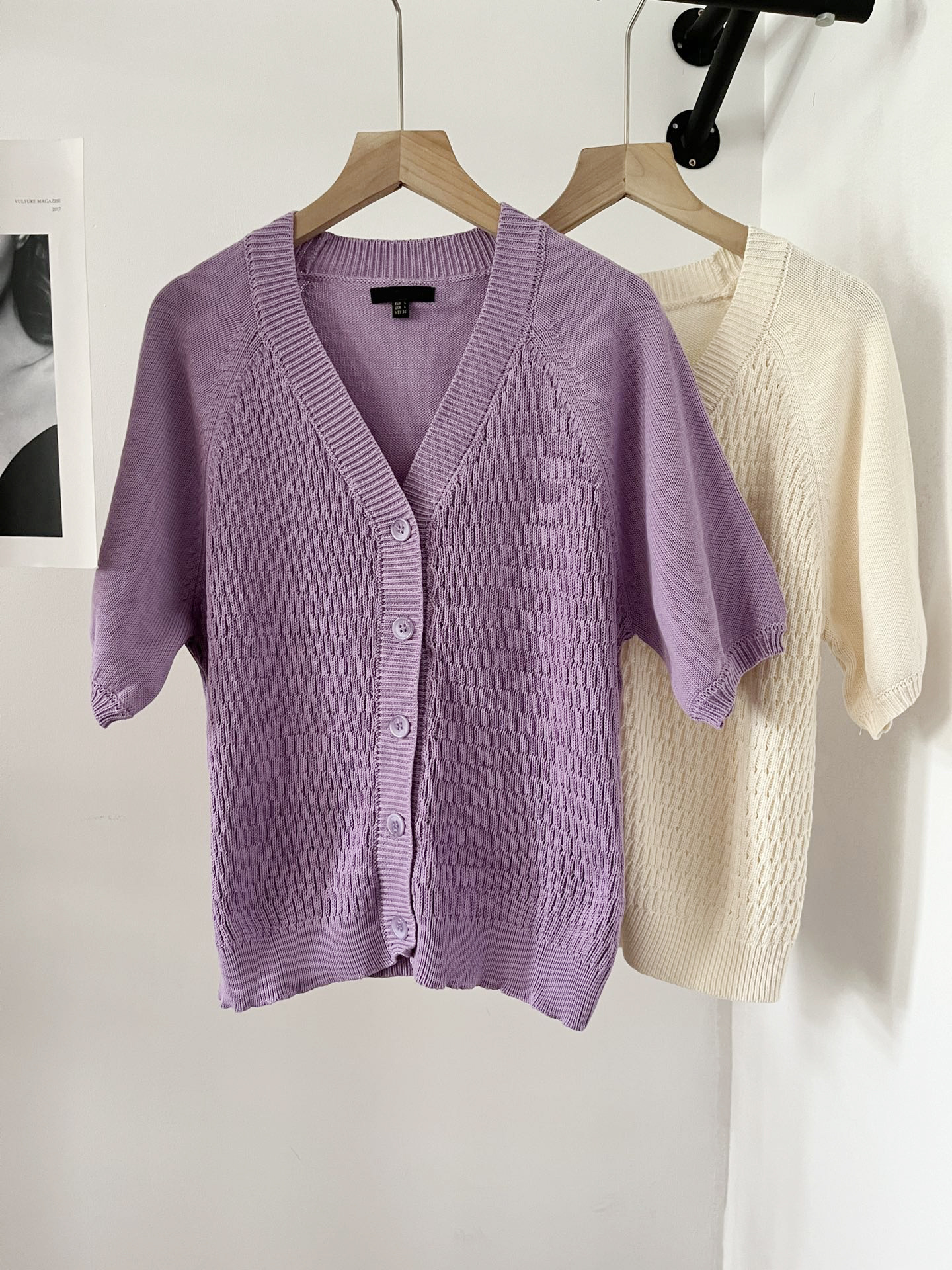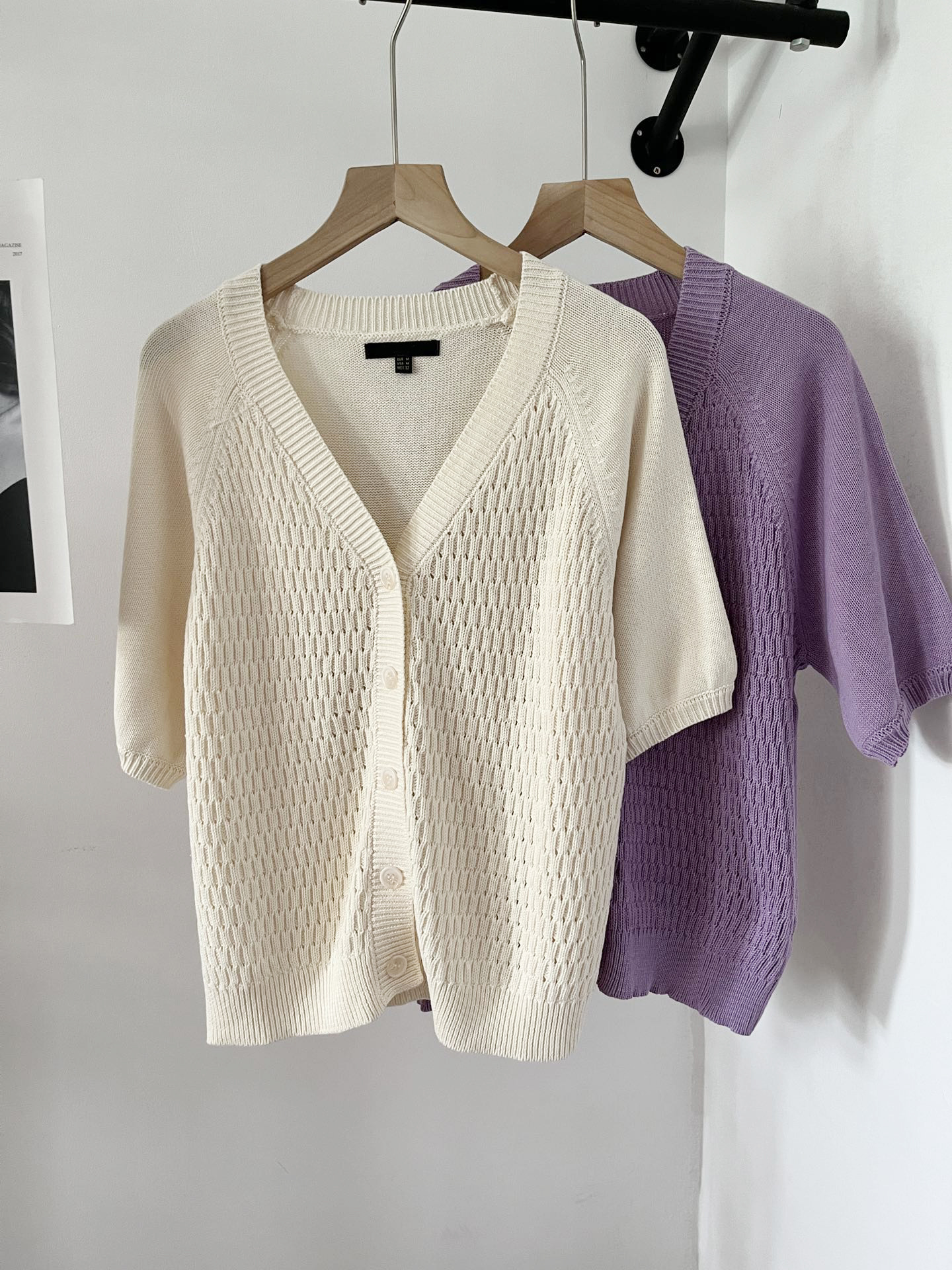 MD 스타일 여성 의류 2023 가을 미니멀리스트 게으른 반팔 크로 셰 뜨개질 V 넥 니트 카디건 05676601612스토어 가기