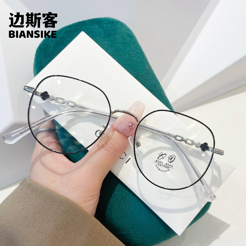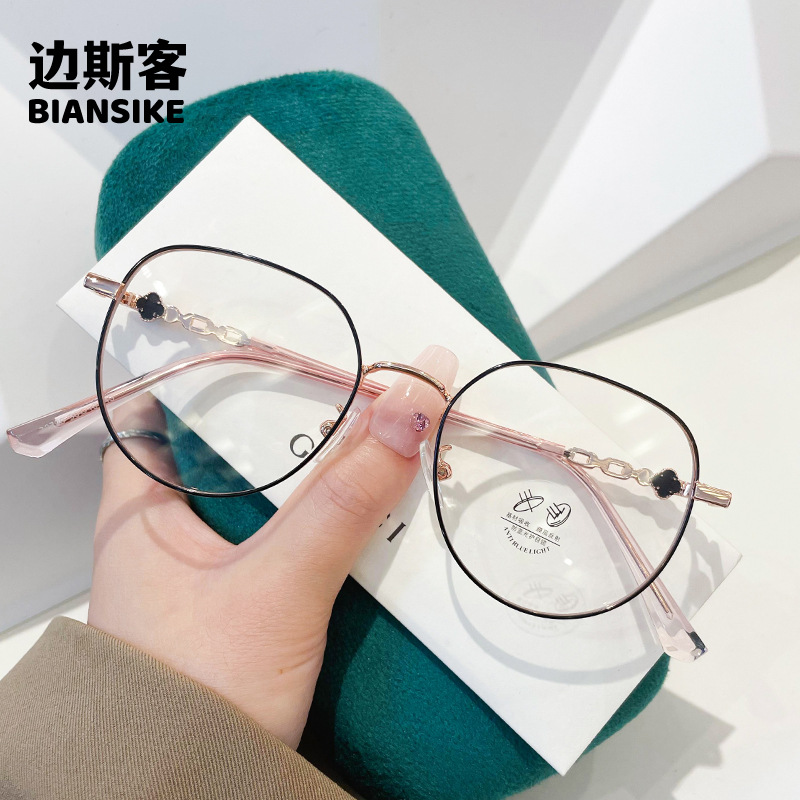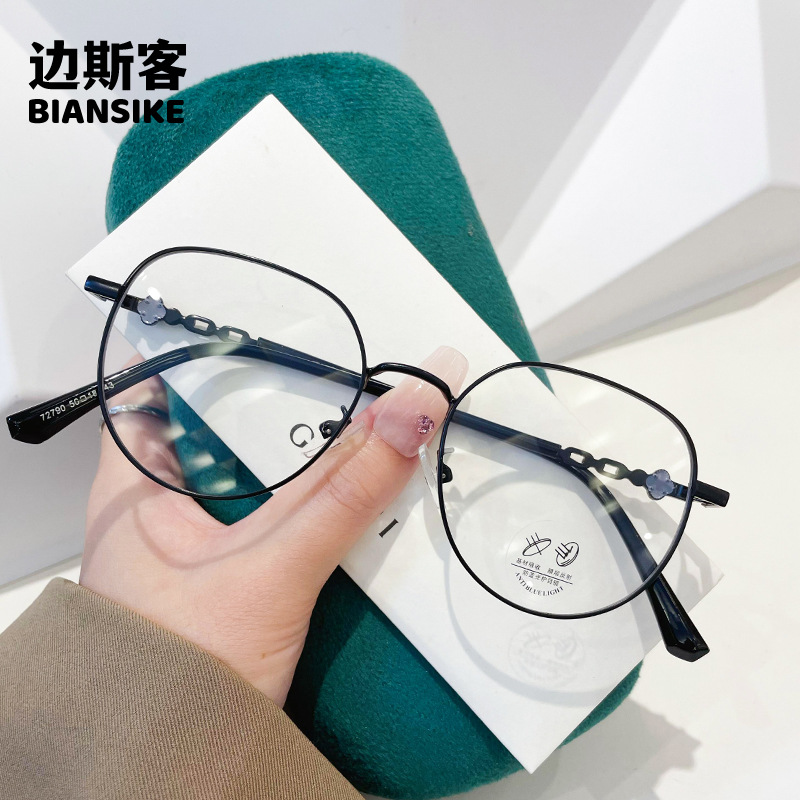 새로운 패션 트렌디 한 인터넷 연예인 금속 대형 프레임 안경 프레임 근시를위한 여성용 일반 제작 안티 블루 안경 72790스토어 가기