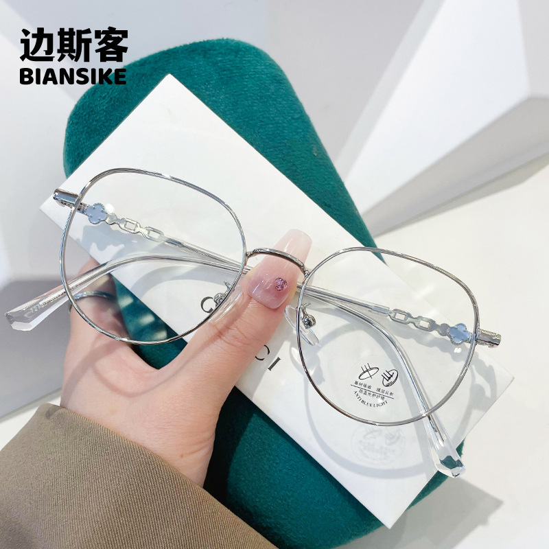 새로운 패션 트렌디 한 인터넷 연예인 금속 대형 프레임 안경 프레임 근시를위한 여성용 일반 제작 안티 블루 안경 72790