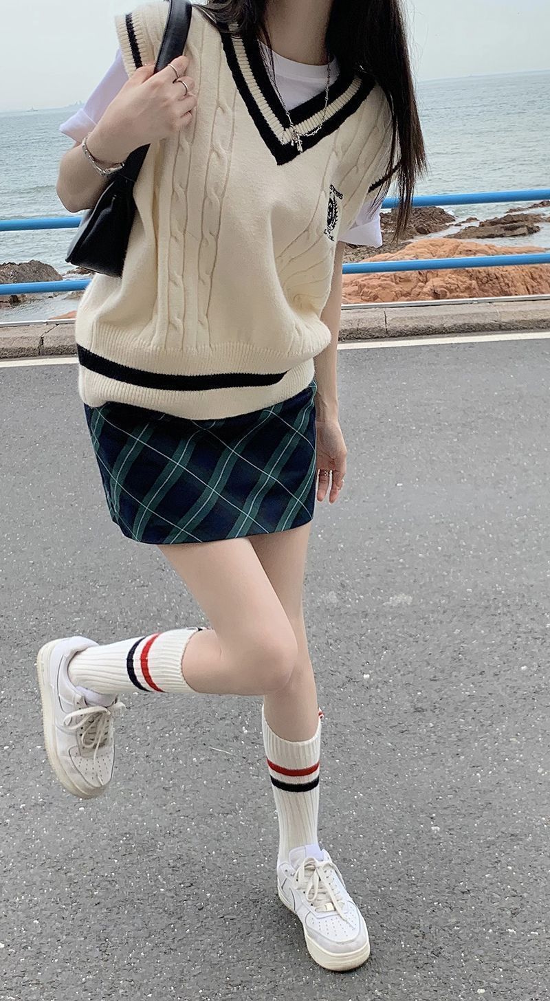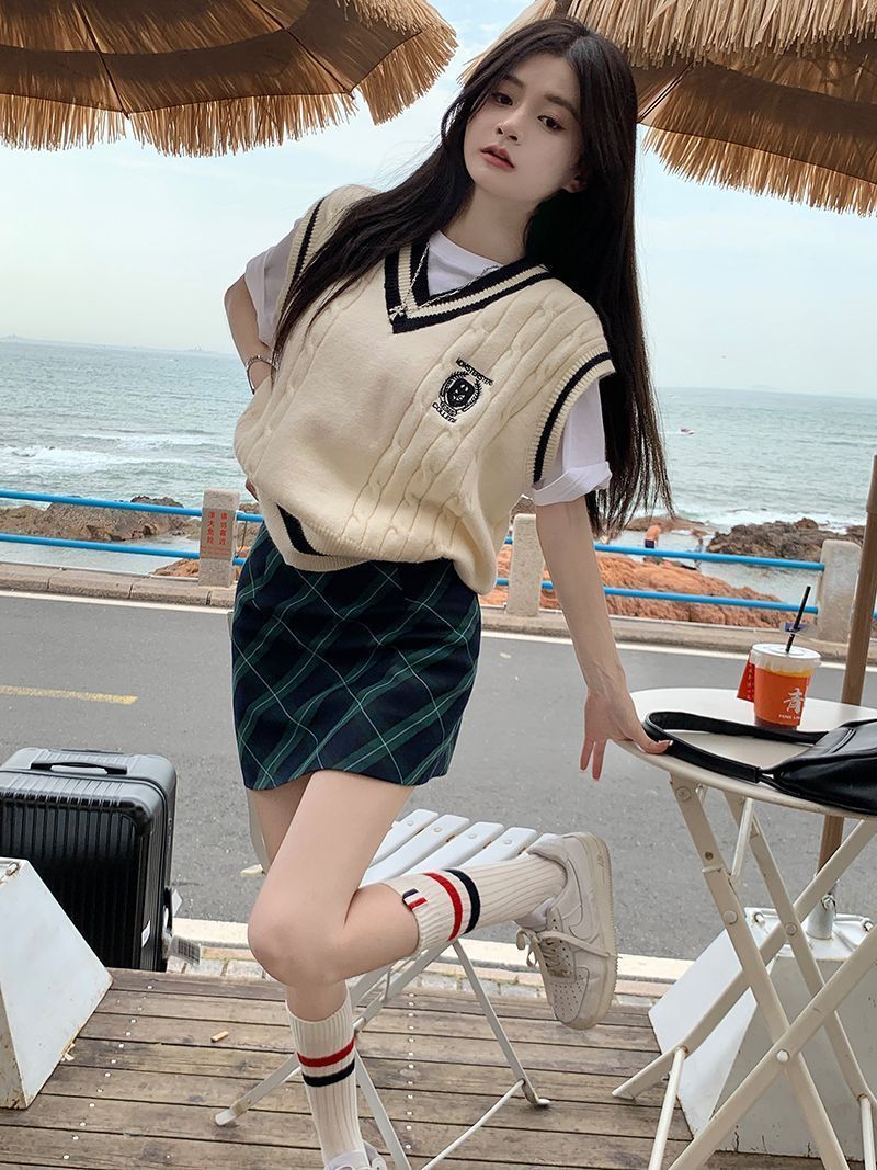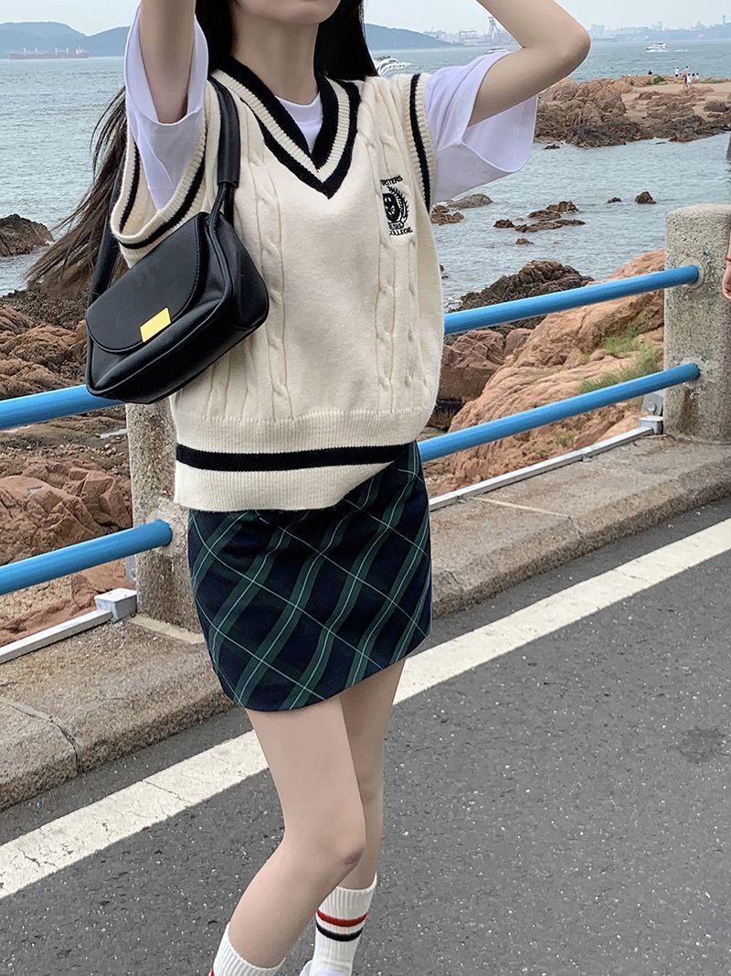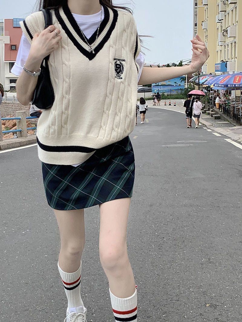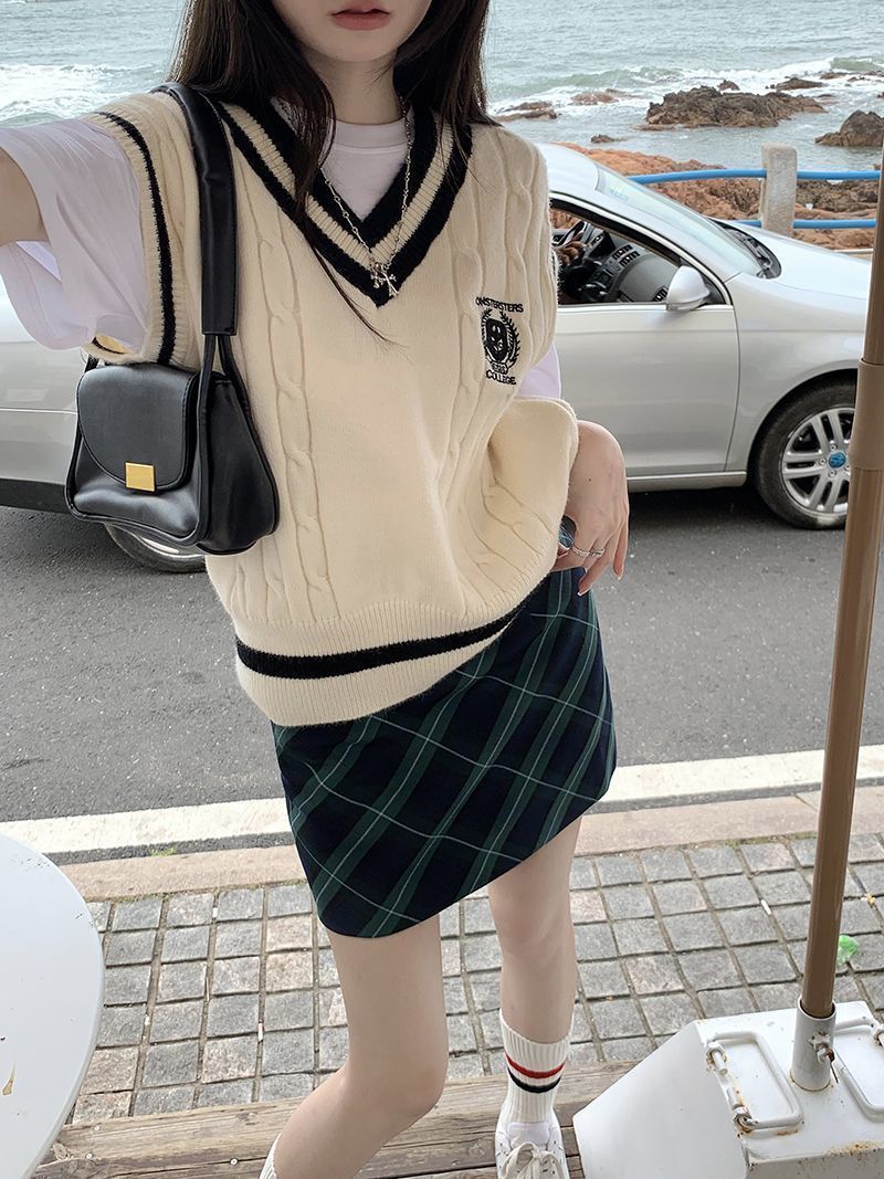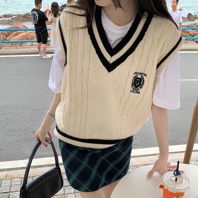 가을과 겨울 한국 스타일 프레피 V-넥 니트 조끼 여성용 느슨한 모든 매치 이너베이스 스택 스웨터 조끼