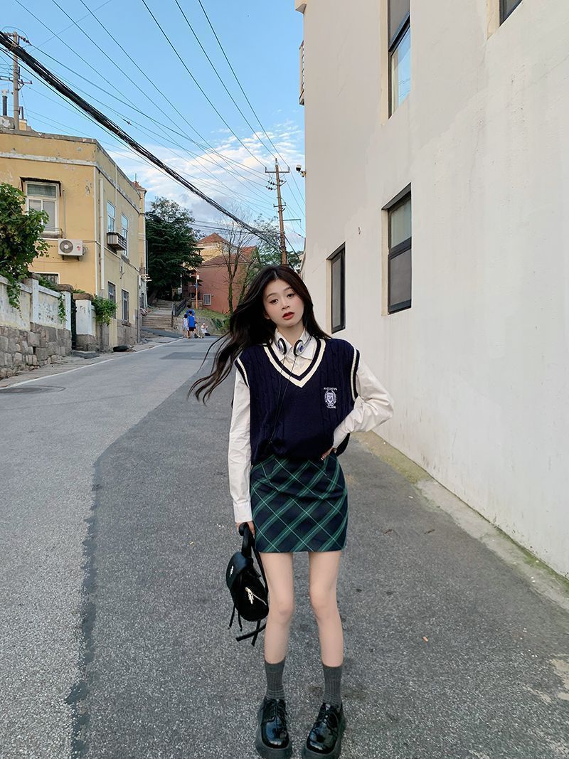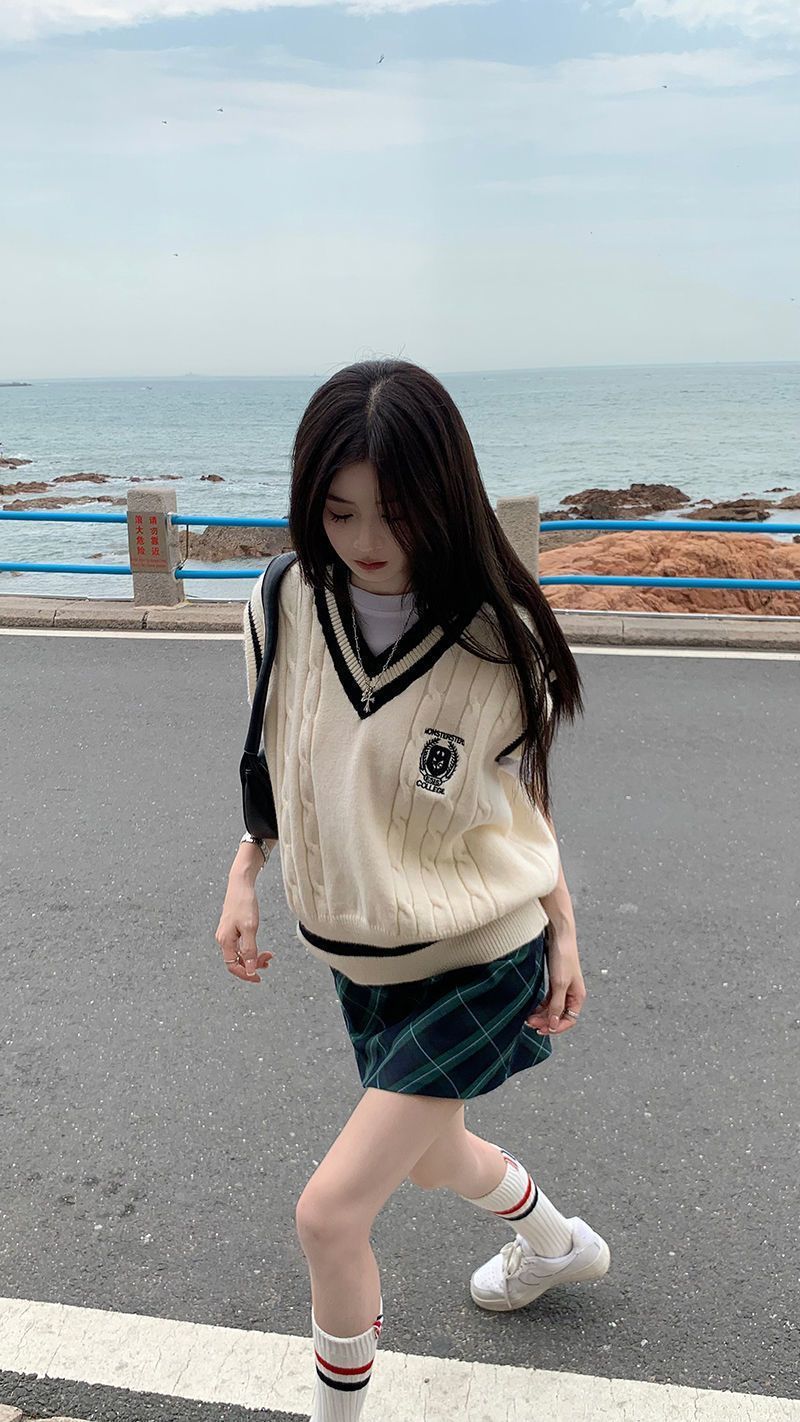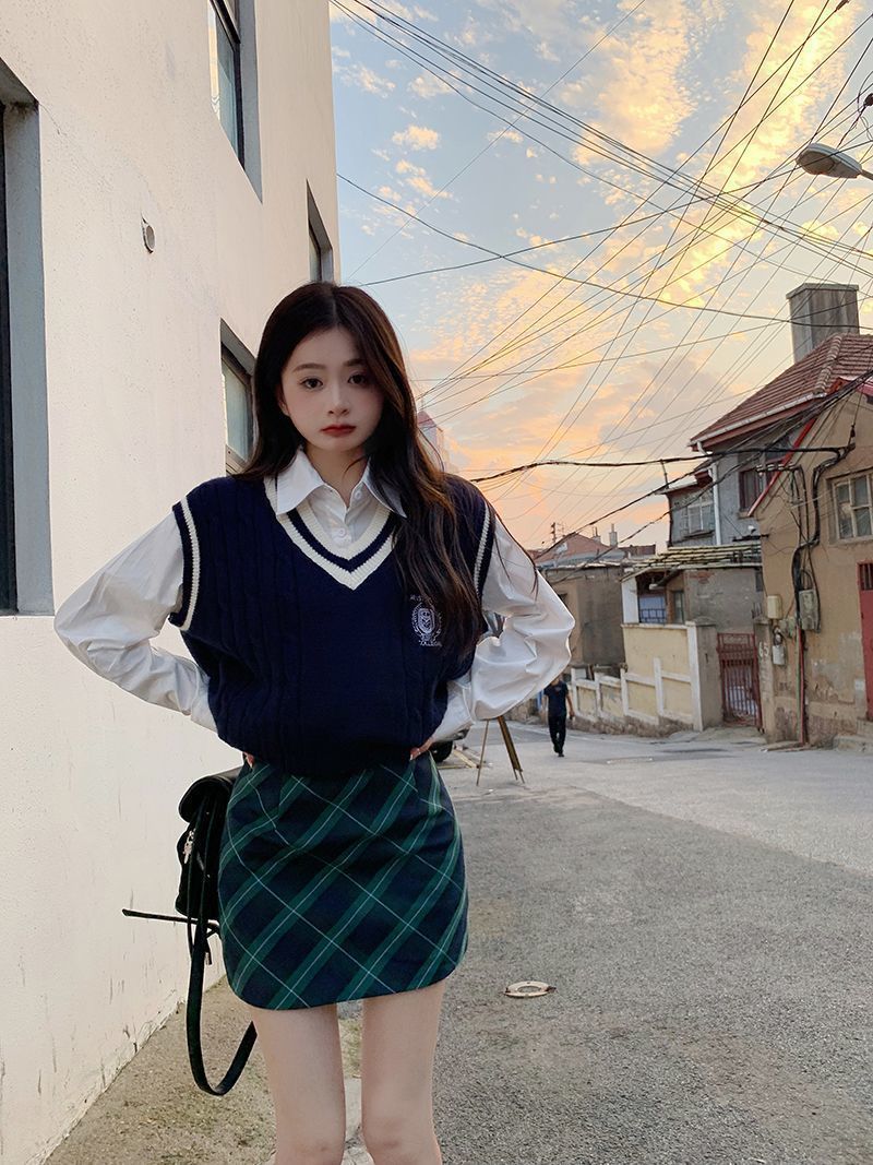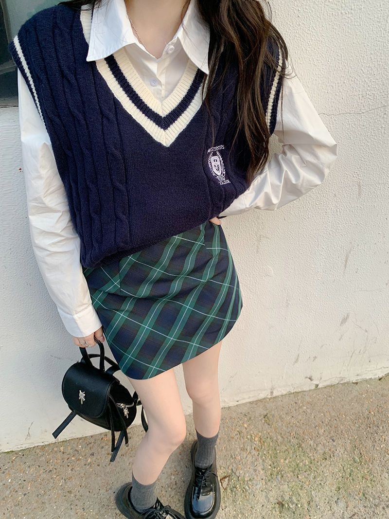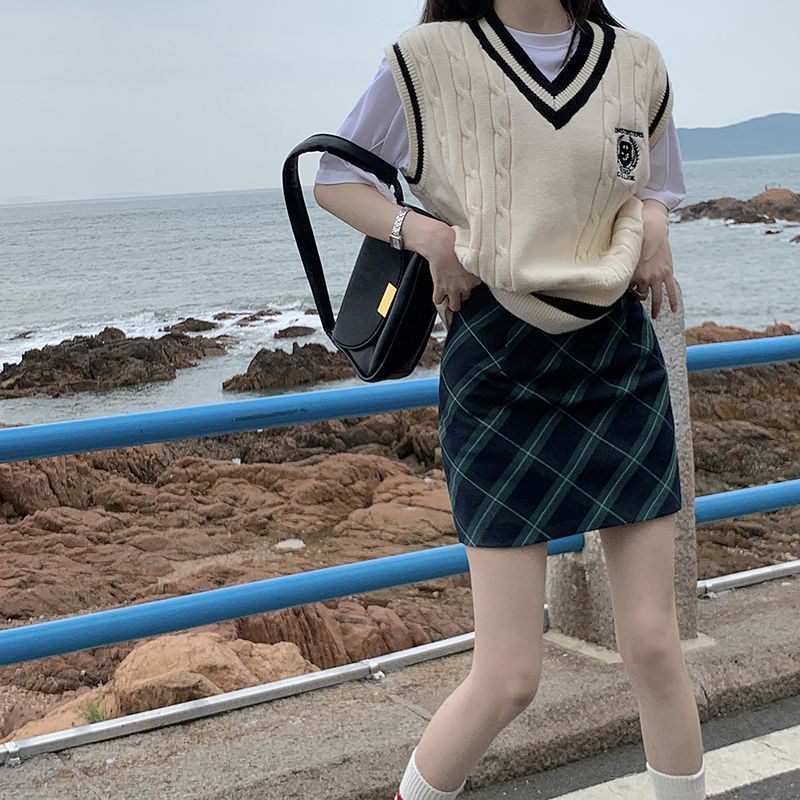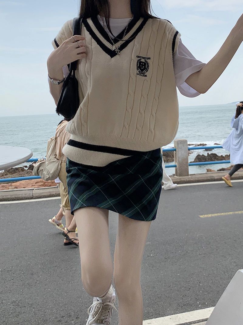 가을과 겨울 한국 스타일 프레피 V-넥 니트 조끼 여성용 느슨한 모든 매치 이너베이스 스택 스웨터 조끼스토어 가기