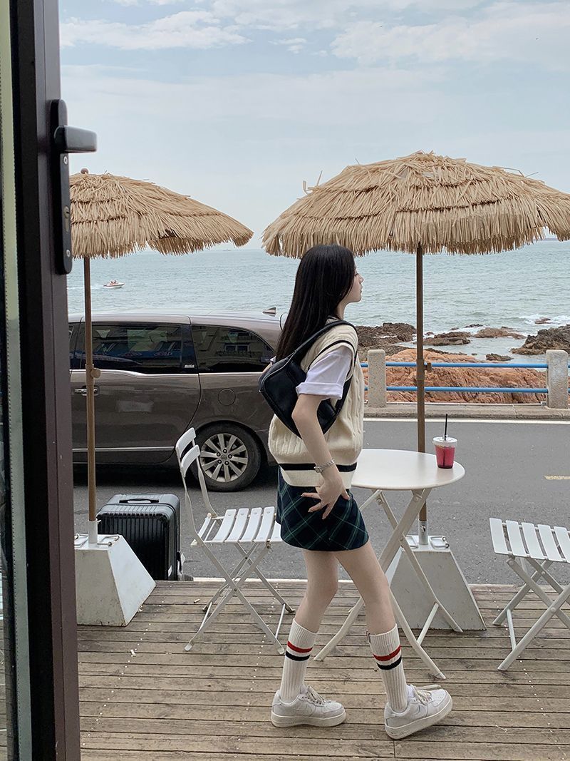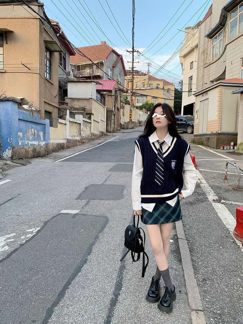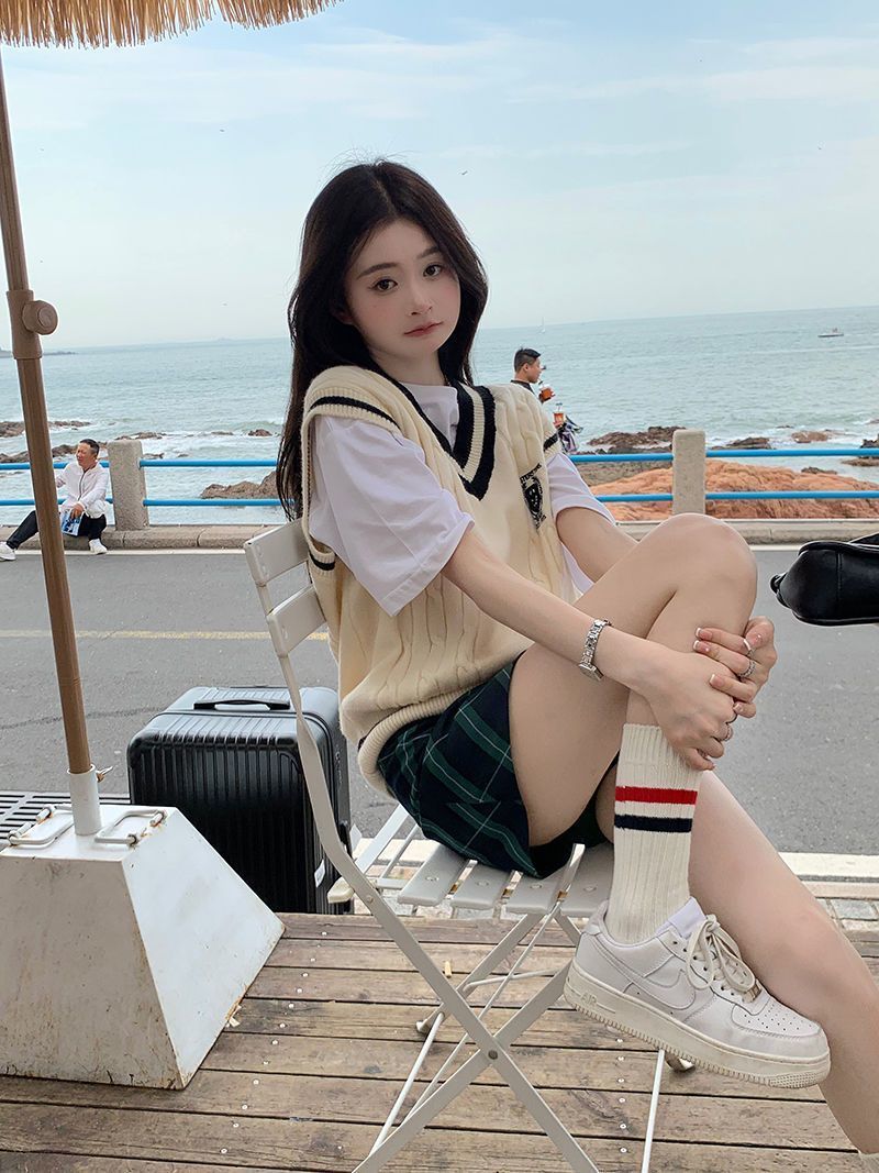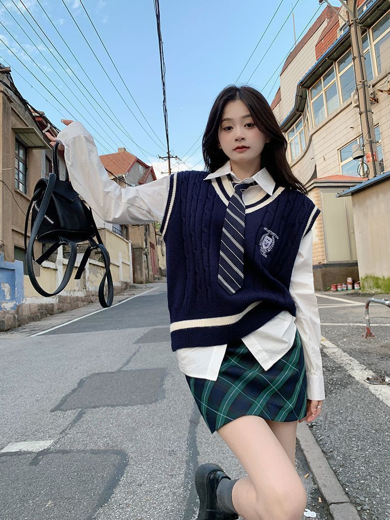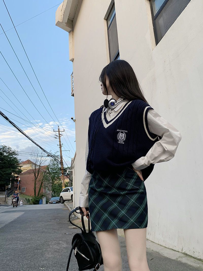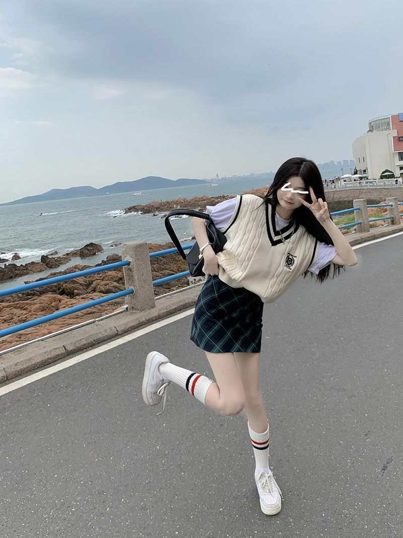 가을과 겨울 한국 스타일 프레피 V-넥 니트 조끼 여성용 느슨한 모든 매치 이너베이스 스택 스웨터 조끼스토어 가기