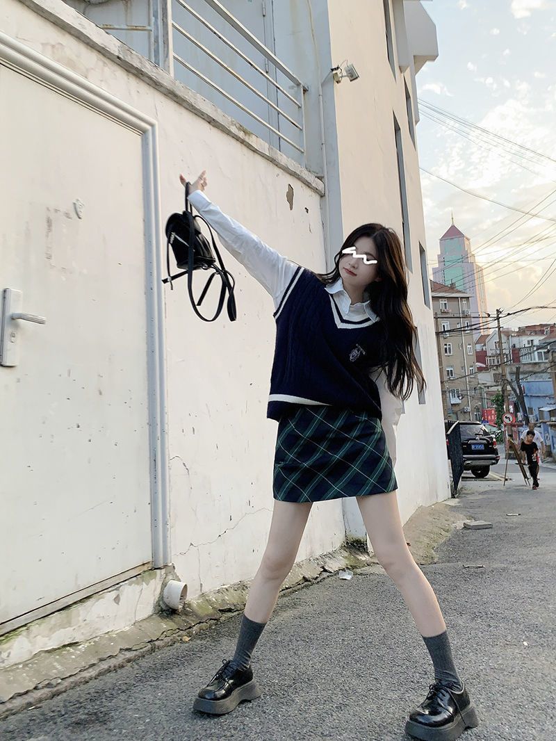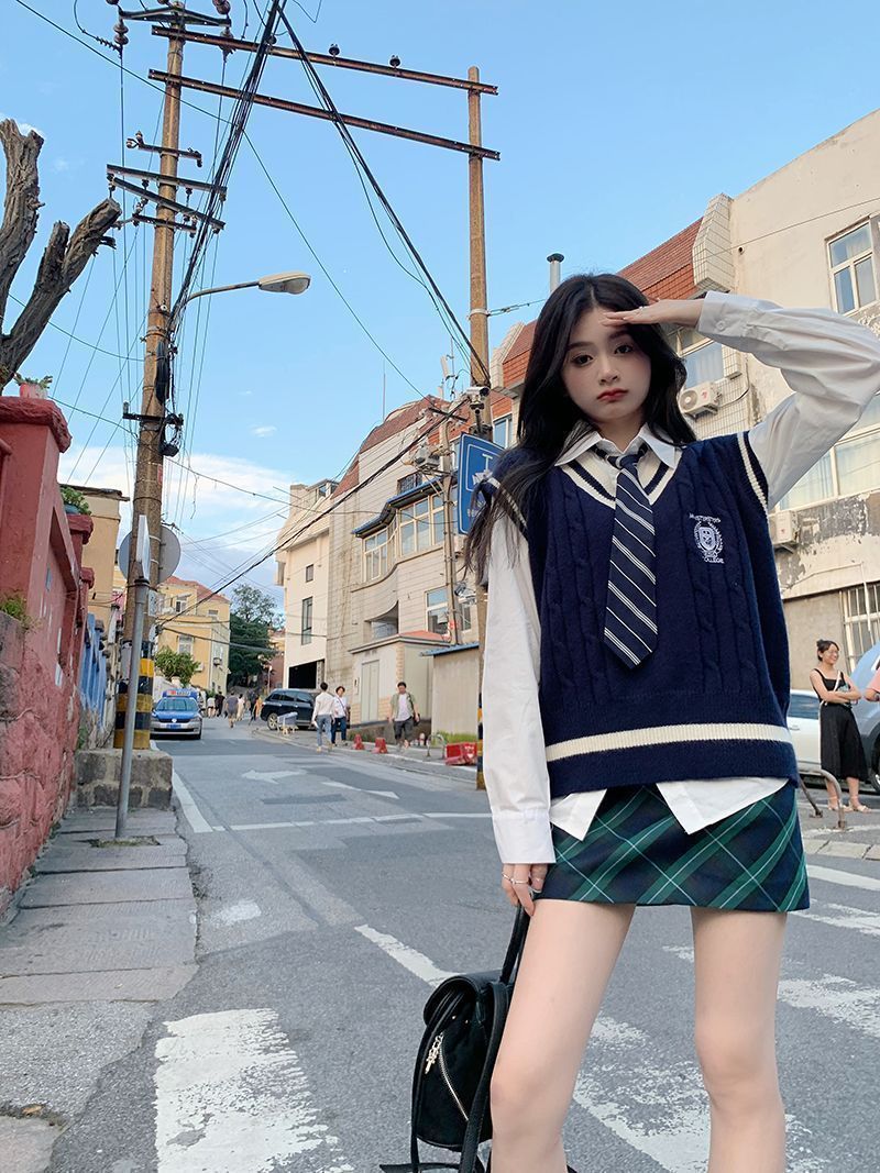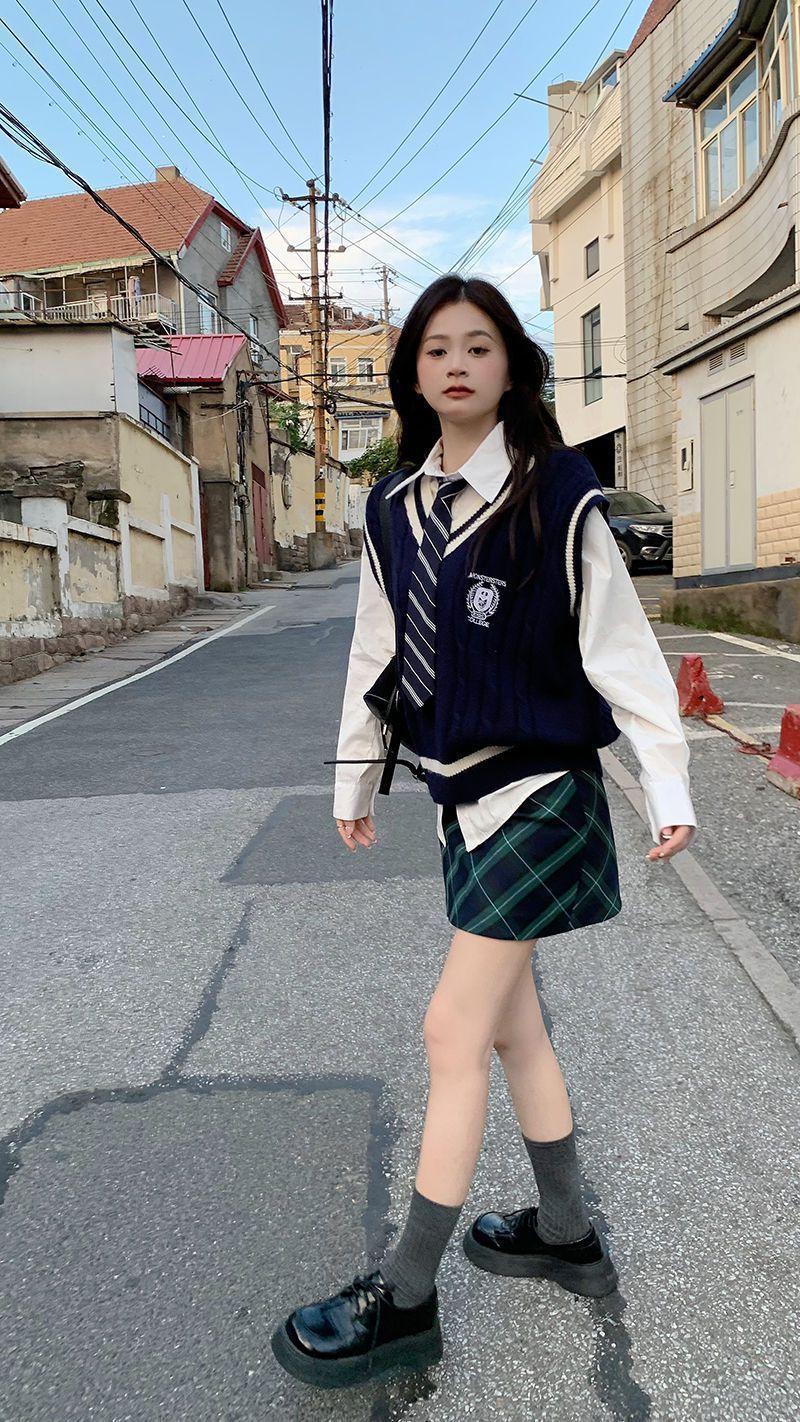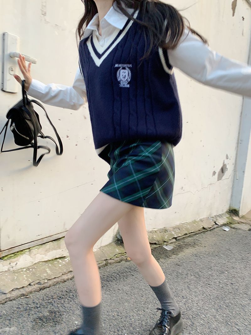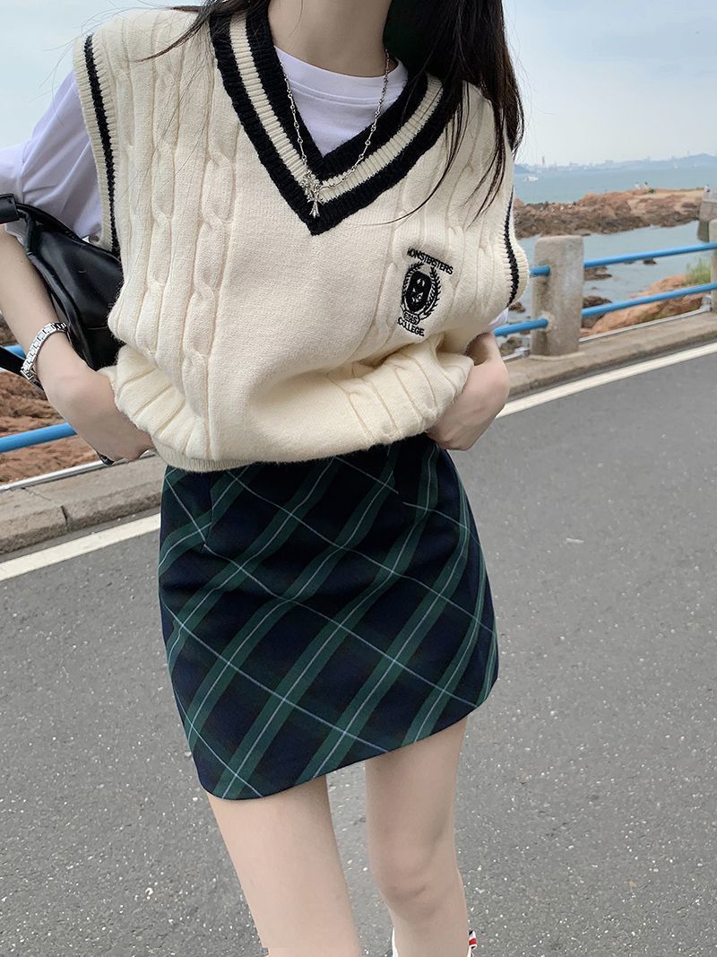 가을과 겨울 한국 스타일 프레피 V-넥 니트 조끼 여성용 느슨한 모든 매치 이너베이스 스택 스웨터 조끼스토어 가기
